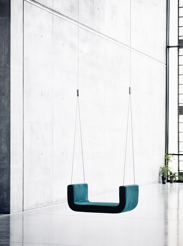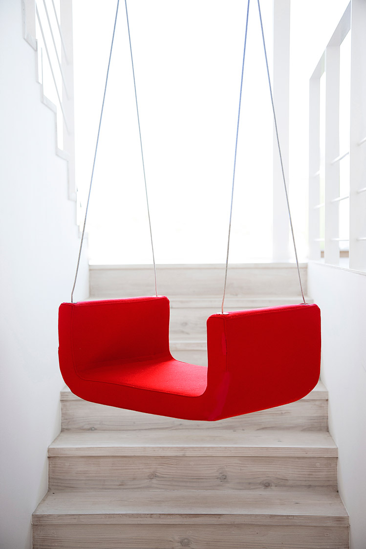ME & U er en polstret innendørs svinge som henger fra taket. Det er et morsomt og iøynefallende tilbehør.