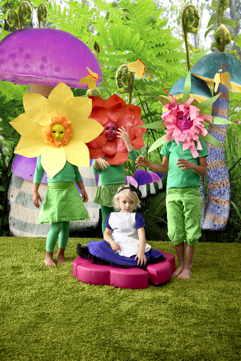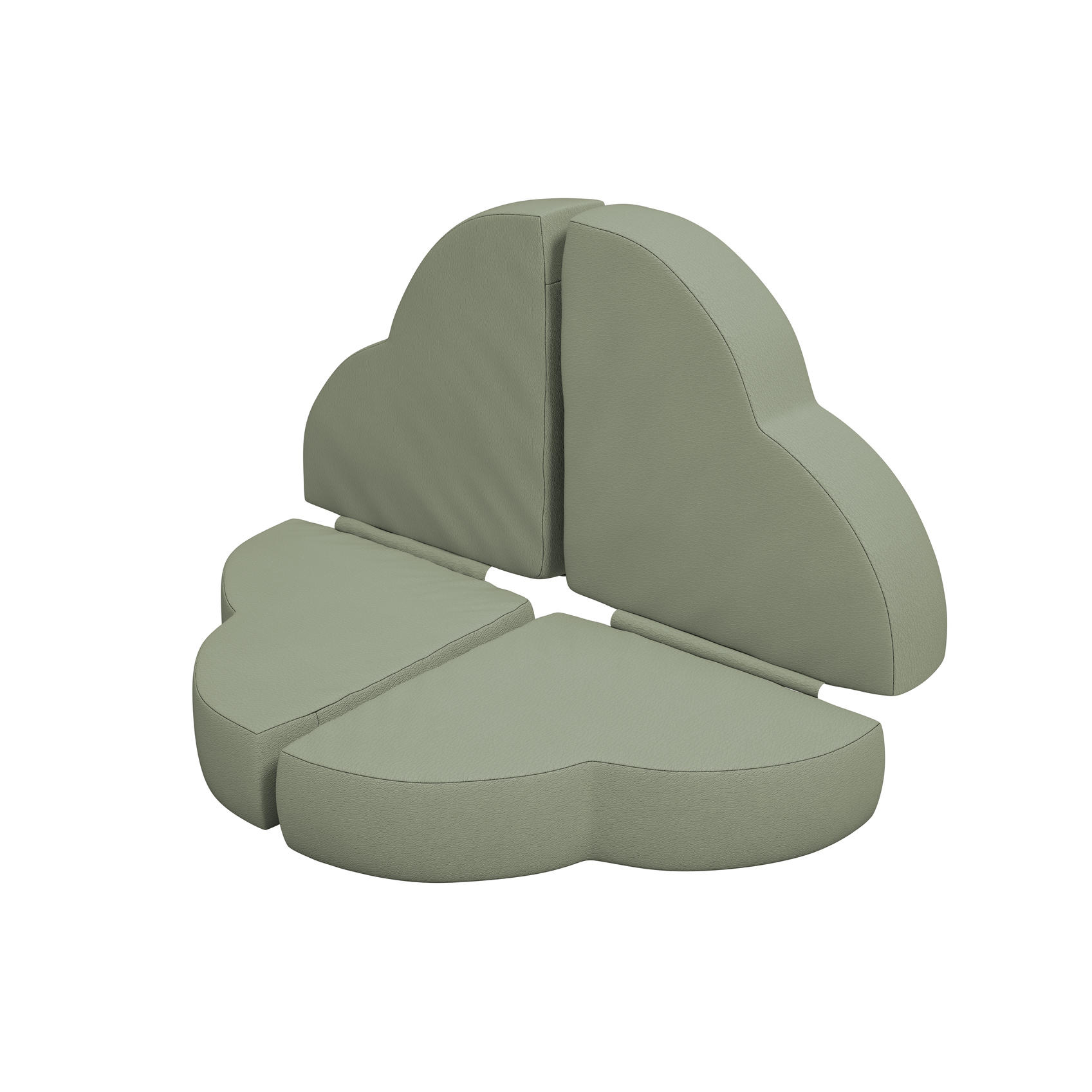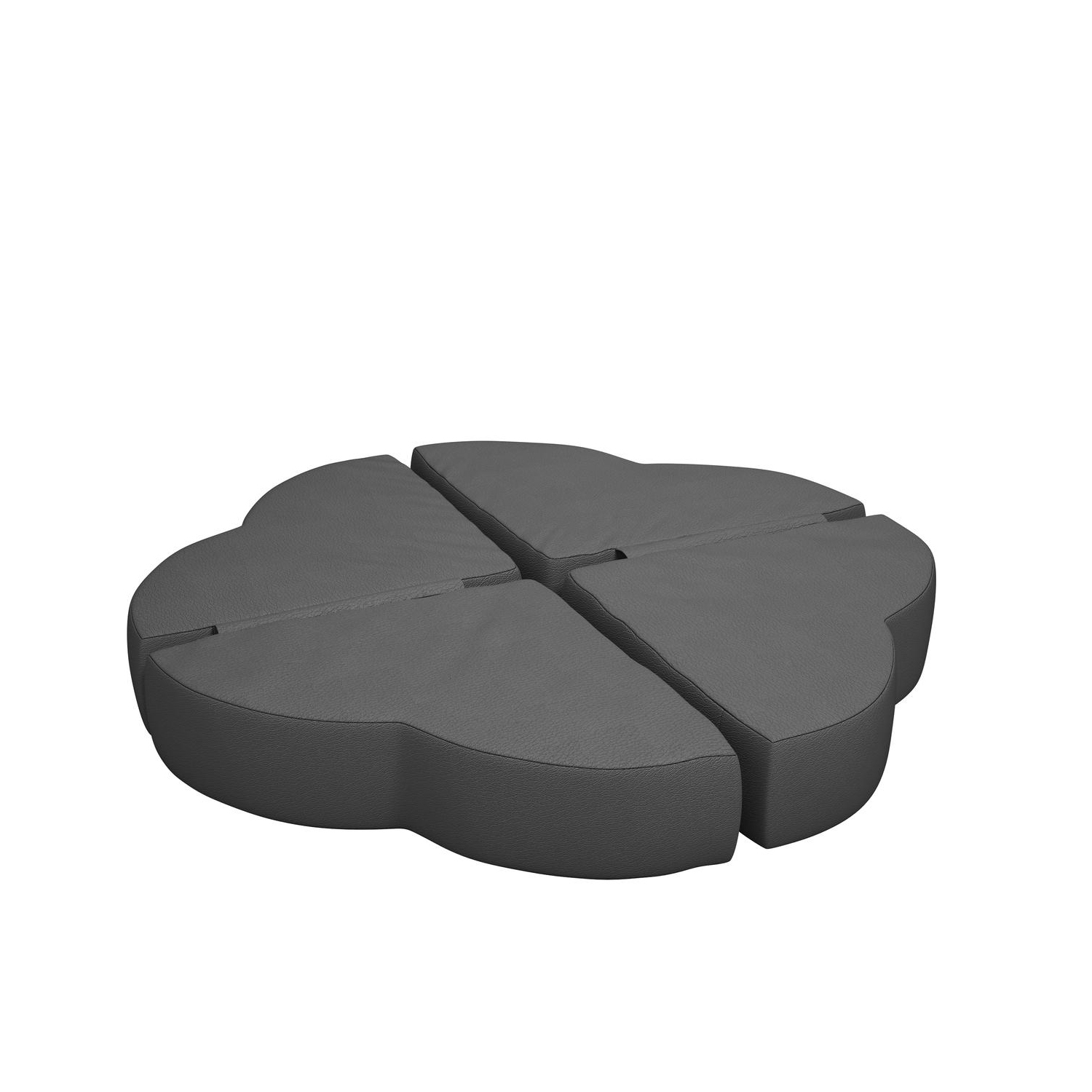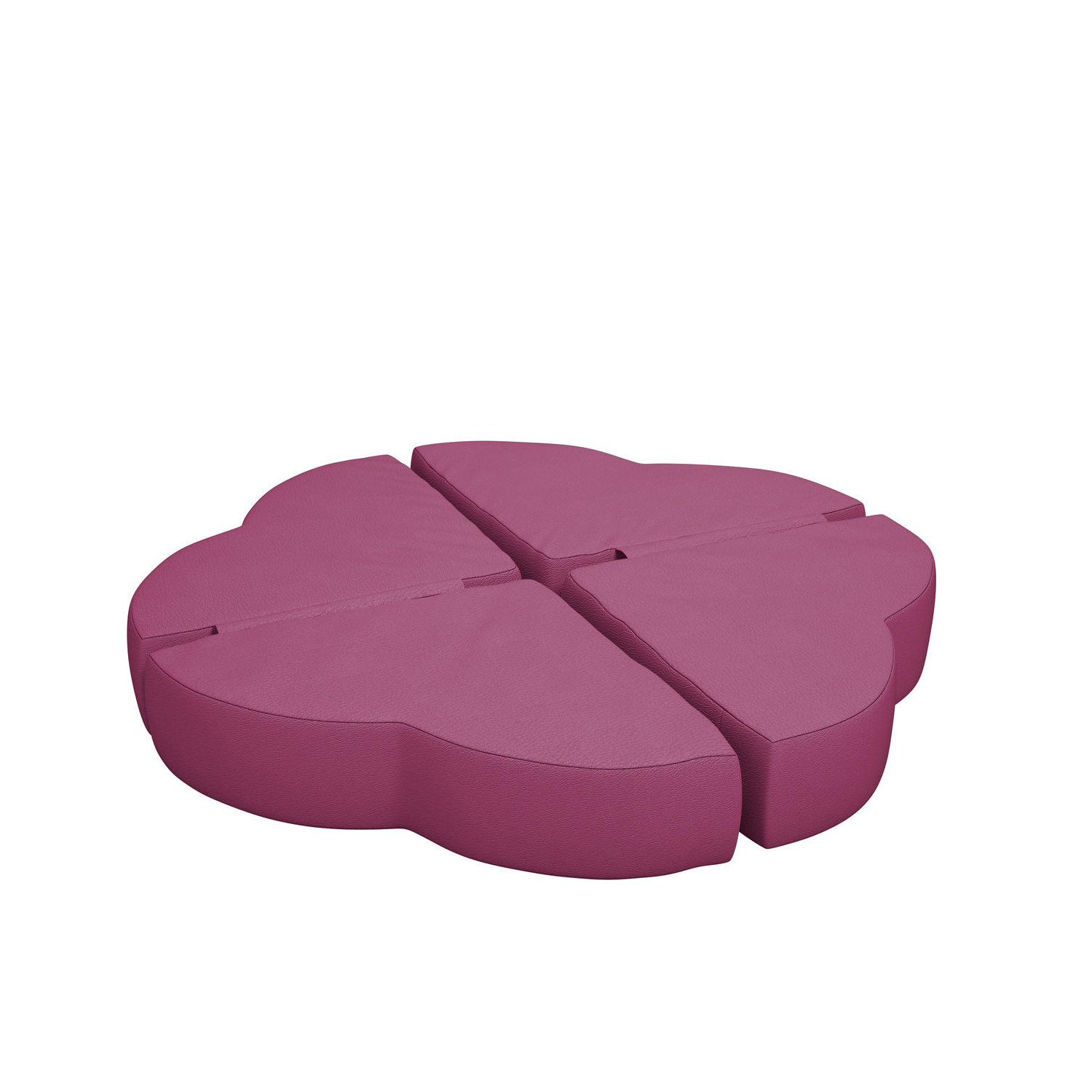 Lekepute i kaldskum med bomullstrekk belagt med polyuretan, som kan tørkes av. Ser ut som blomsterblad, 4 deler sitter sammen. Kan stables. Mål stablet 36x36x15 cm. Design Alessandro Cardinale.