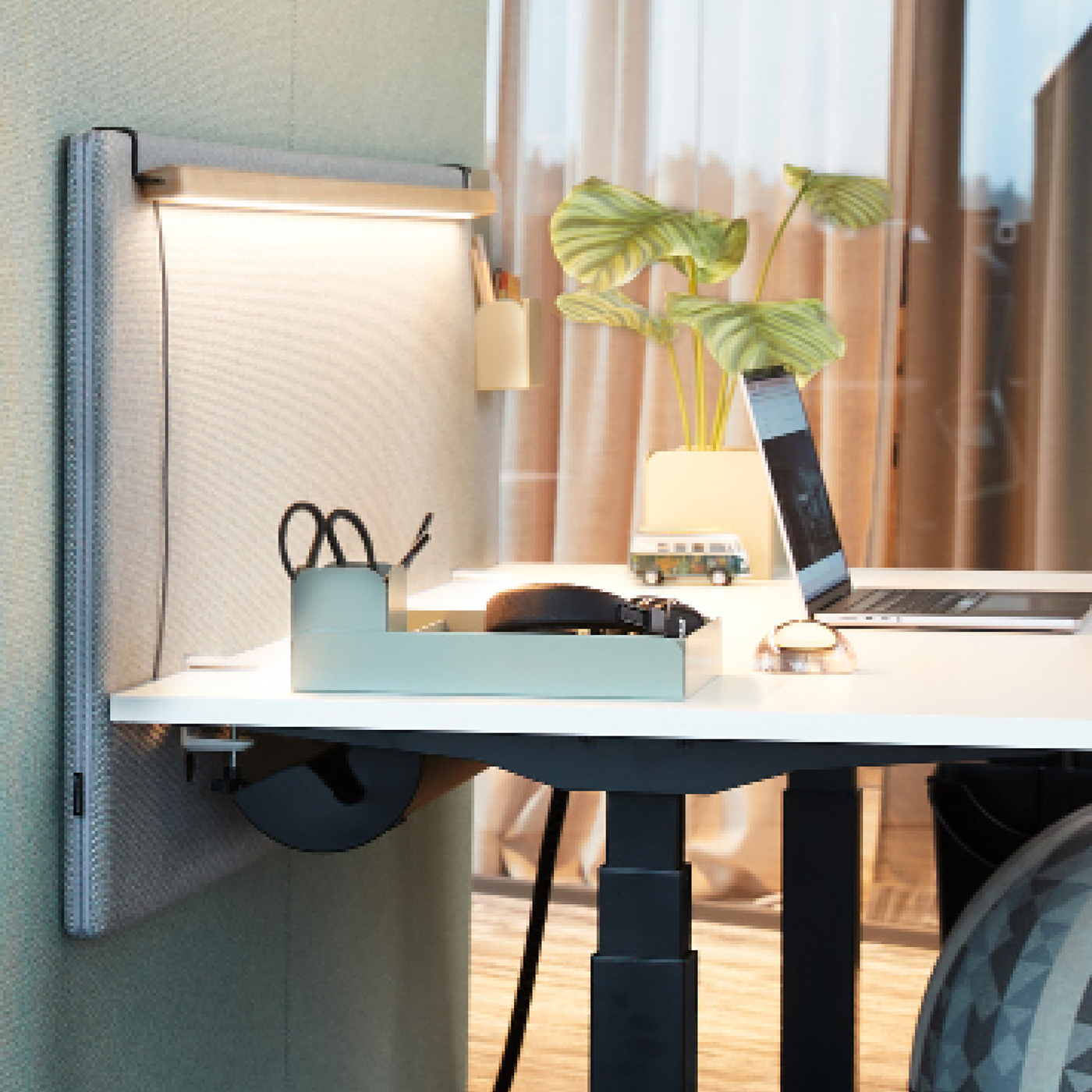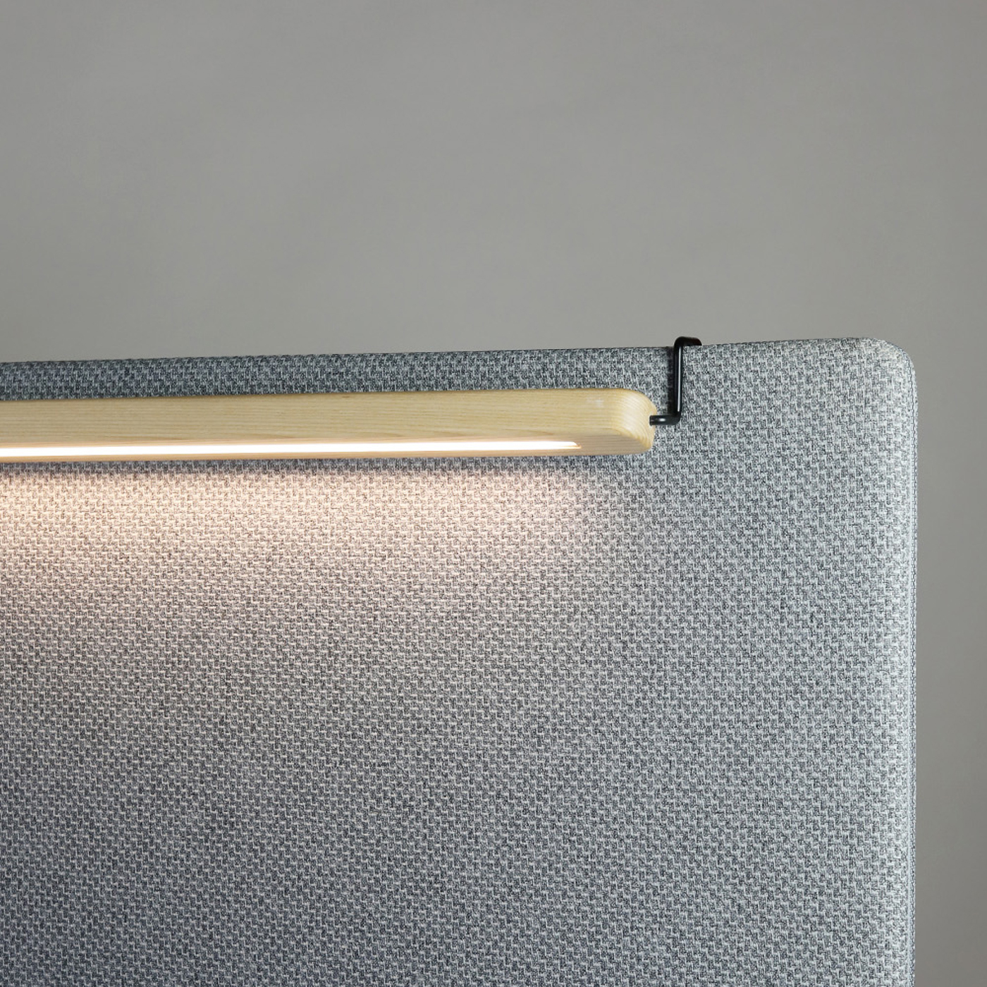 Woodlight er en effektfull og dekorativ belysning i hvitbeiset ask for A30-skjermer.