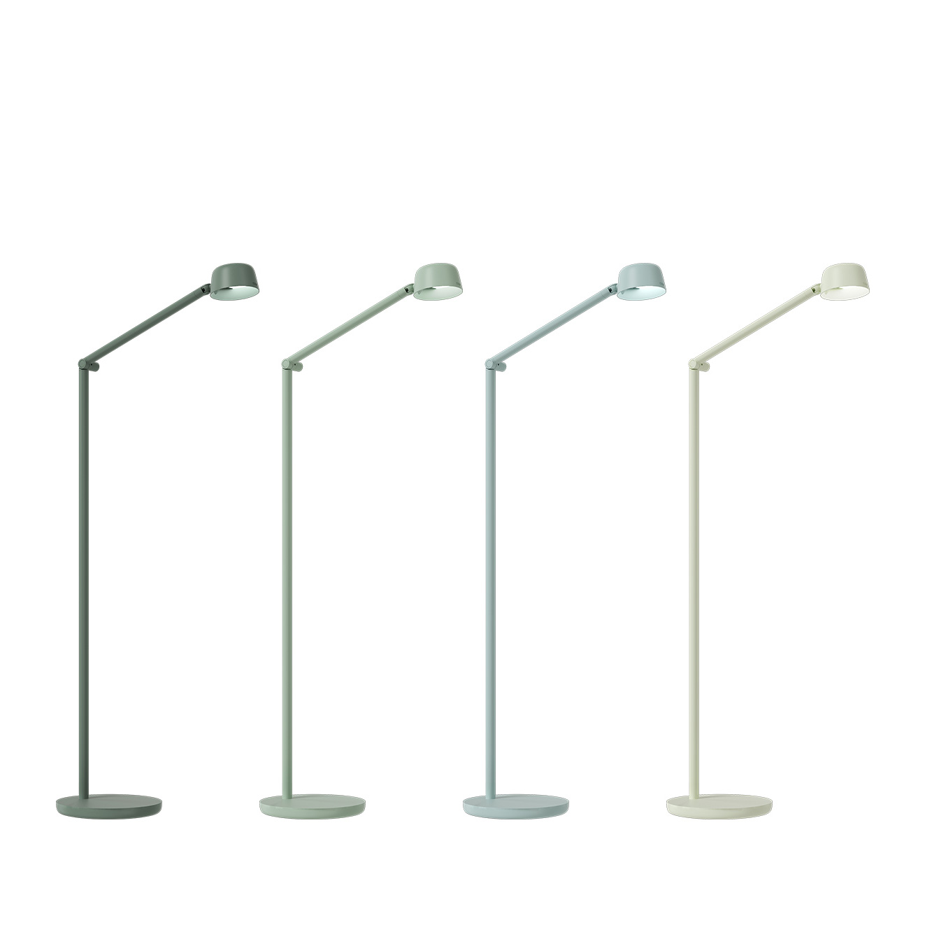 På gulvversjonen kan du velge mellom to armer. Den er tilgjengelig med et eller to ledd, noe som øker armaturens fleksibilitet. Begge versjonene har det karakteristiske koppformede lampehodet, med symmetrisk lysfordeling og det samme fleksible leddet mellom lampehode og arm. Frittstående armaturer er enkle å flytte på, og gir stor fleksibilitet når du planlegger belysningen i et rom.