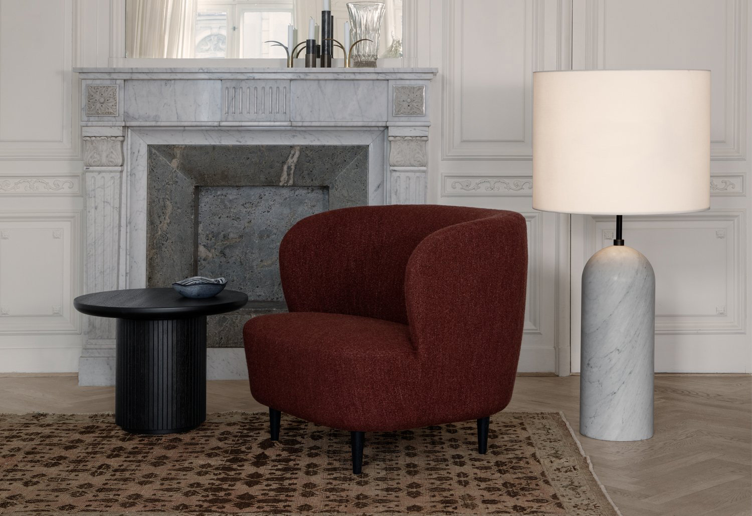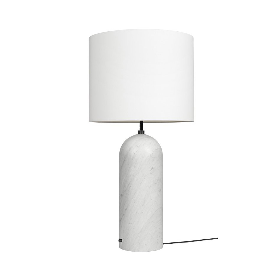 Gravity-kolleksjonen er designet av Space Copenhagen for det danske merket Gubi. Samlingen består av to størrelser bordlamper og tre størrelser gulvlamper, og har et design som formidler styrke og skjørhet. Lampens navn er hentet fra designet der den luftige lampeskjermen balanserer på den tunge sylinderformede foten, noe som gir lampen et elegant og skulpturelt utseende.