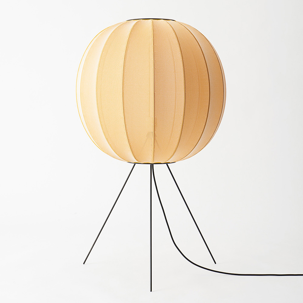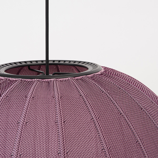 Den strikkede materialiteten til Knit-Wit-lampen distribuerer lys gjennom garnets mønster, noe som gjør hver lampe særegen og dekorativ.