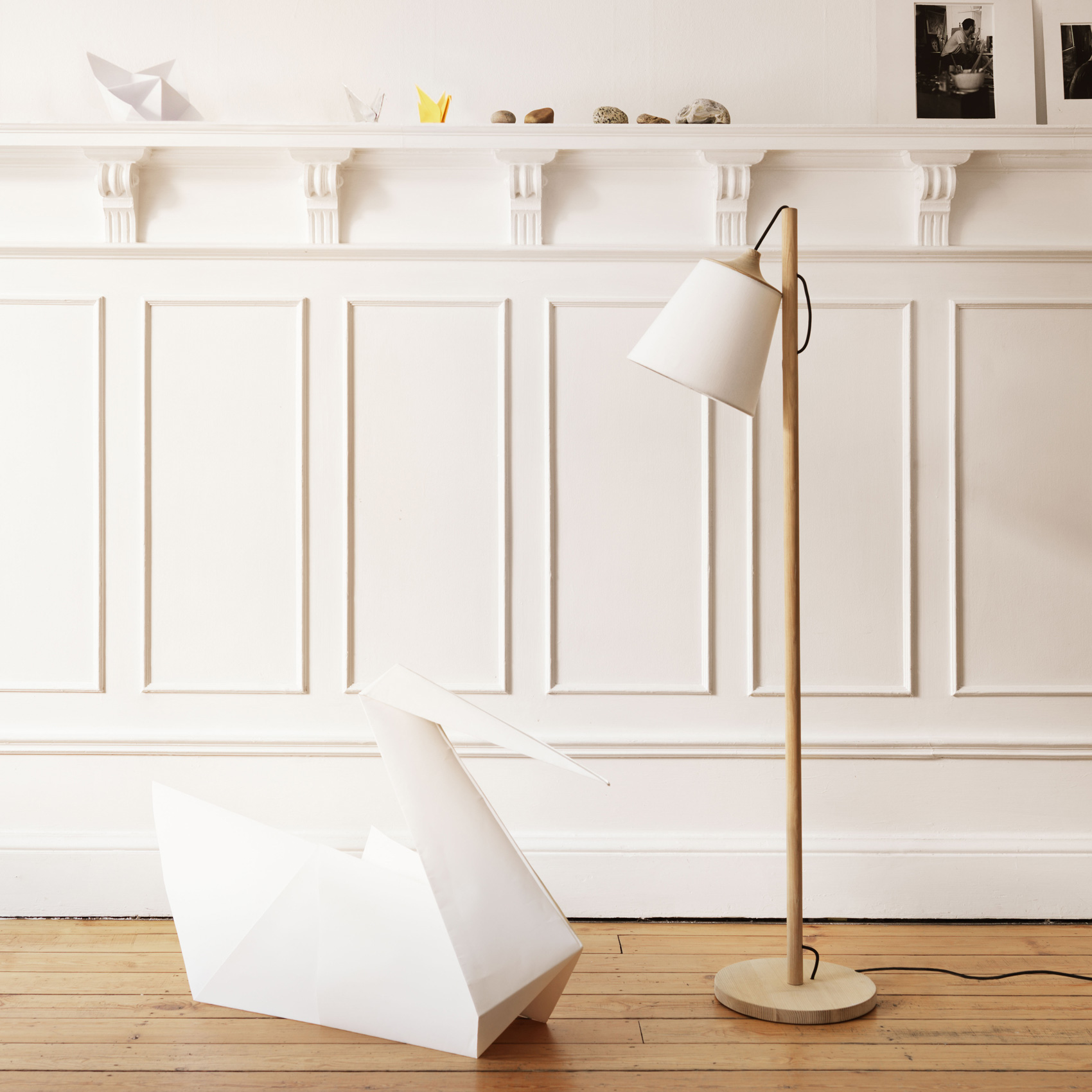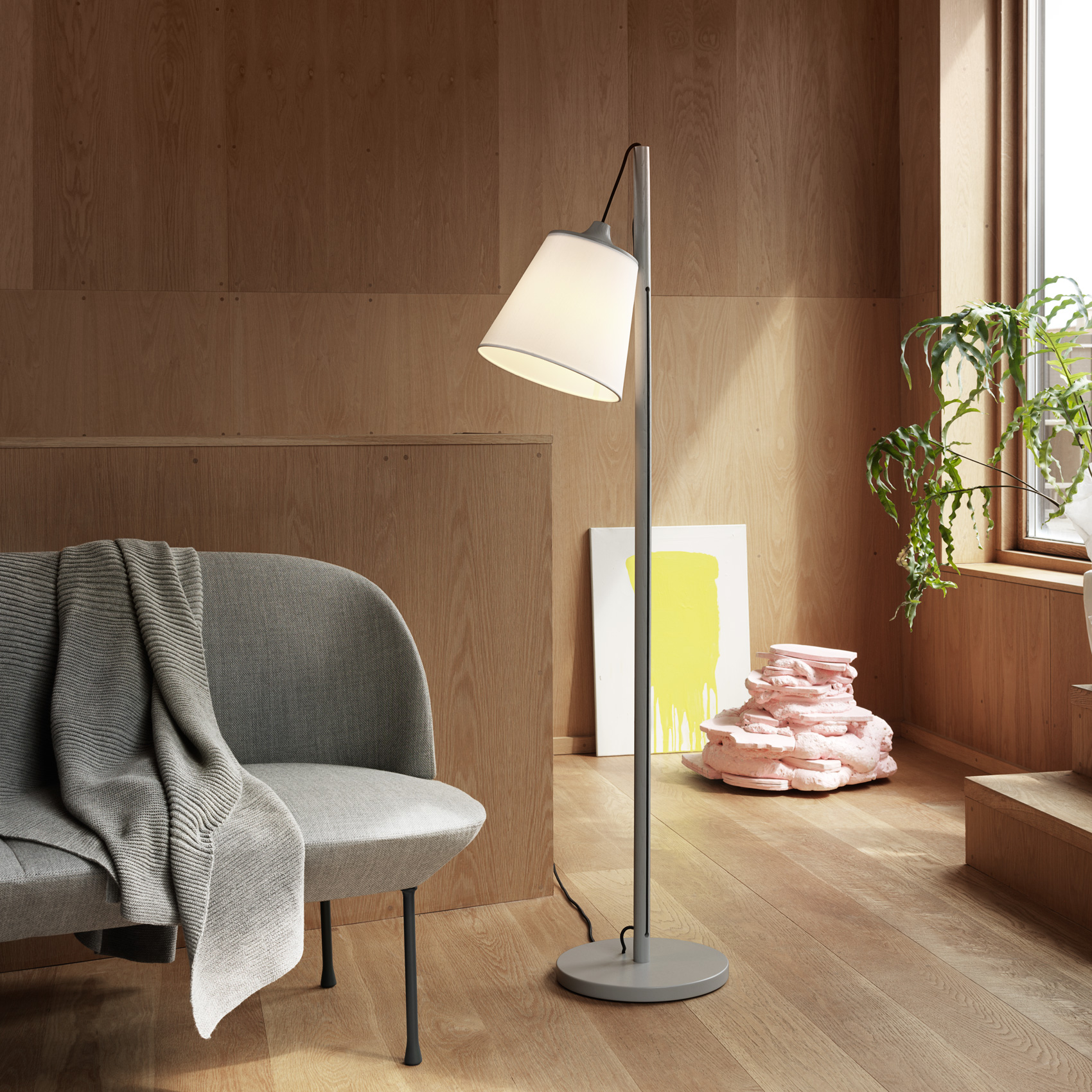 Pull gulvlampen fra Muuto er designet av svenske Whatswhat. Pull har et organisk og skandinavisk design. Lampen er laget i eik og lampeskjerm i lin.