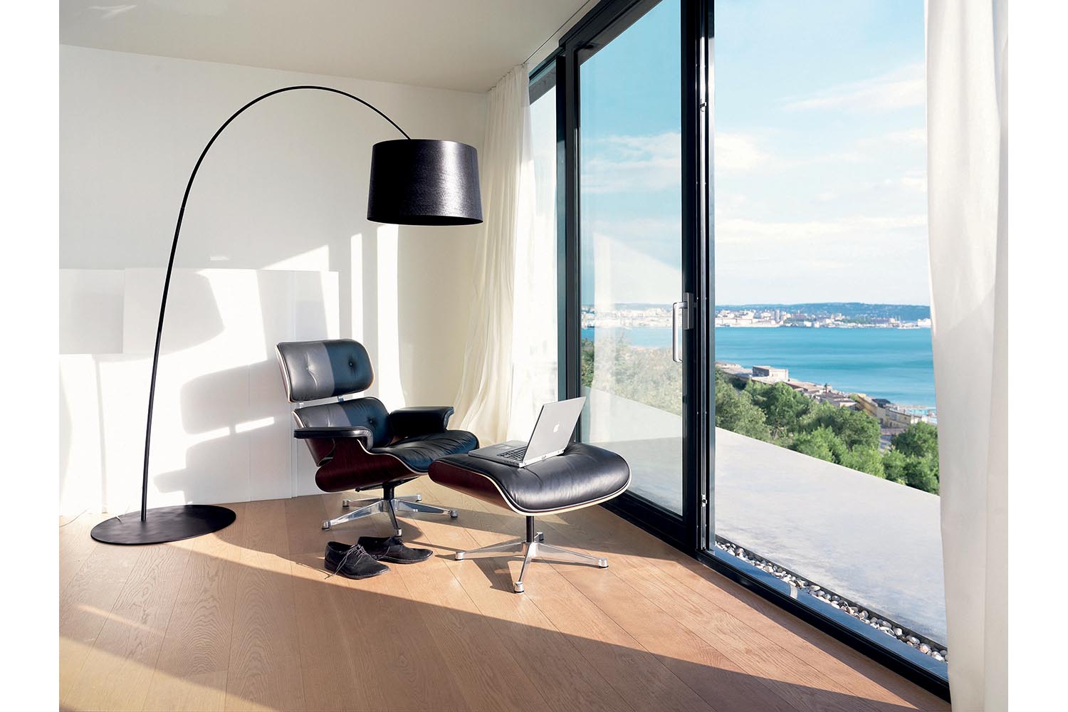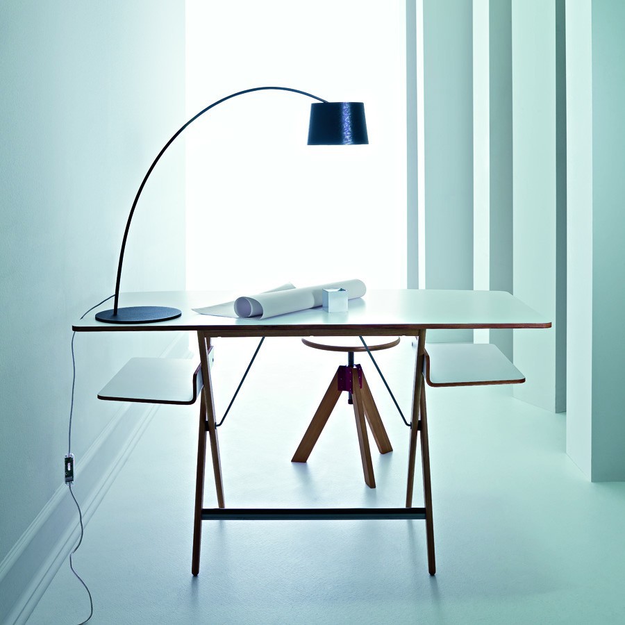 Designet av Marc Sadler, som står bak flere av Foscarini’s suksessdesigns. Lampen gir et mykt og behageligt lys. Gulvlampens høyde kan justeres ved hjelp av små vekter på lampeskjermen. Denne fås også i en LED versjon. Velg mellom rød, gul, hvit og sort.