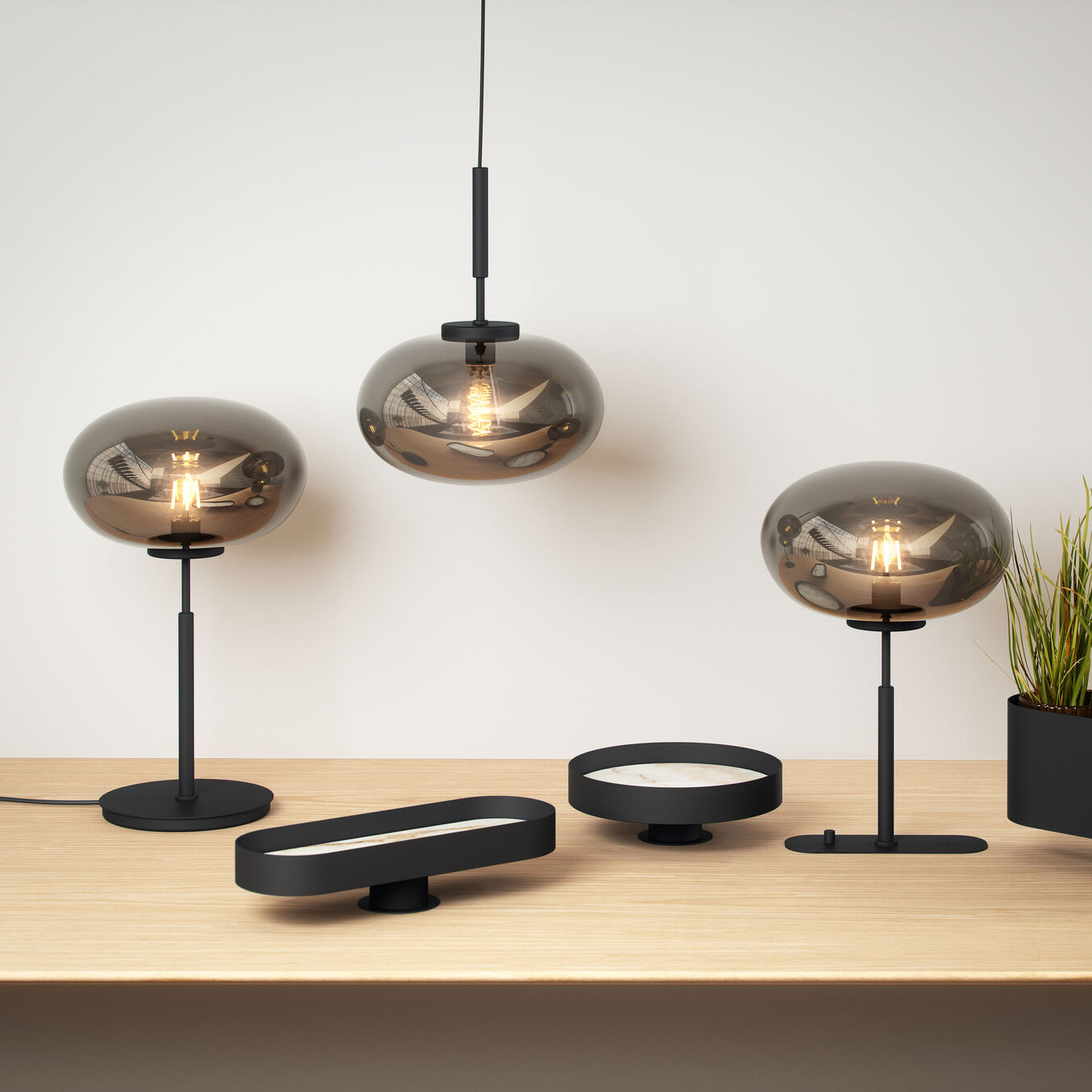 Lampe m/base har 2 meter vevd sort tekstilledning med Easy-lock connector. Mulighet for dimmer.