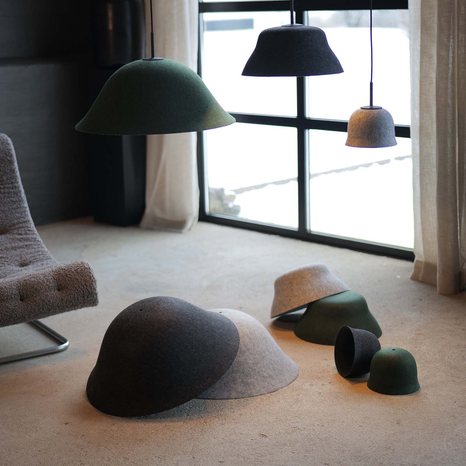 Inspirert av alle kjente hatter, brukt for å beskytte eller fremheve din personlighet. Hepburn er multifunksjonell. En pendel med behagelig lys, og samtidig en lydabsorbent og et kunstverk. Tre størrelser i myke former i støpt filt, med et elegant uttrykk. Vårt samarbeid med Claesson Koivisto Rune gir som alltid et ikonisk resultat.