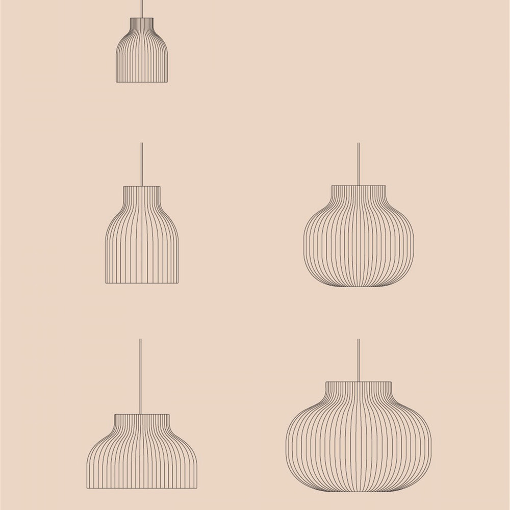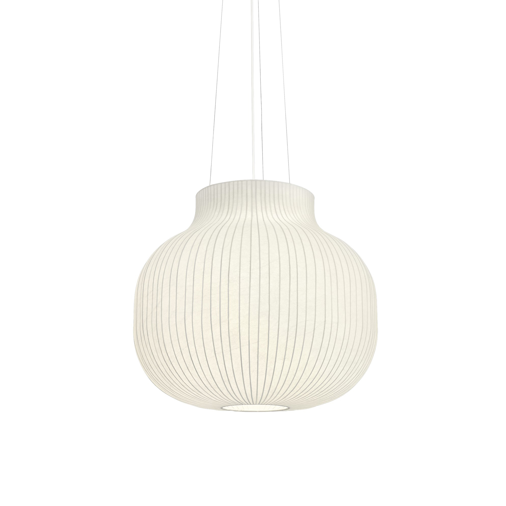Strand pendellampe er designet med myke, lekne former for et moderne uttrykk. Designet gir både diffus belysning og direkte belysning, sistnevnte gjennom topp- og bunnåpning. Designet er laget i et sprayet kokongmateriale som består av bittesmå tråder for en kompleks, inntrengende struktur som, sammen med sin moderne form, gir Strand pendellampe et nesten skyaktig utseende. Med sitt kokongmateriale som filtrerer lys gjennom for en varm og behagelig glød, henger Strand pendellampen lett i rommet, og gir komfort, harmoni og en raffinert følsomhet til ethvert rom.