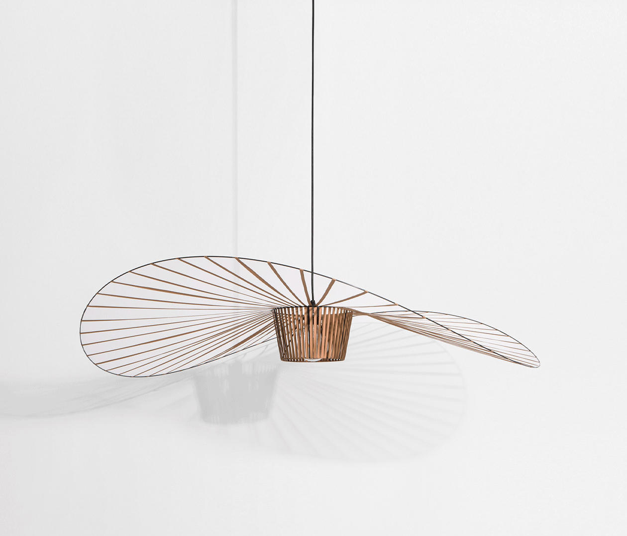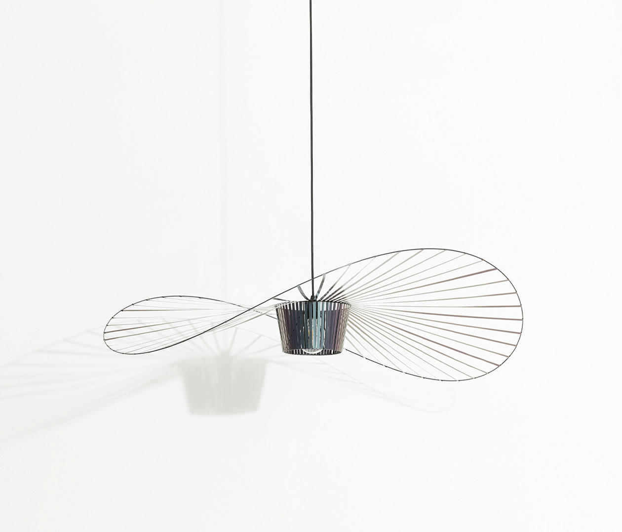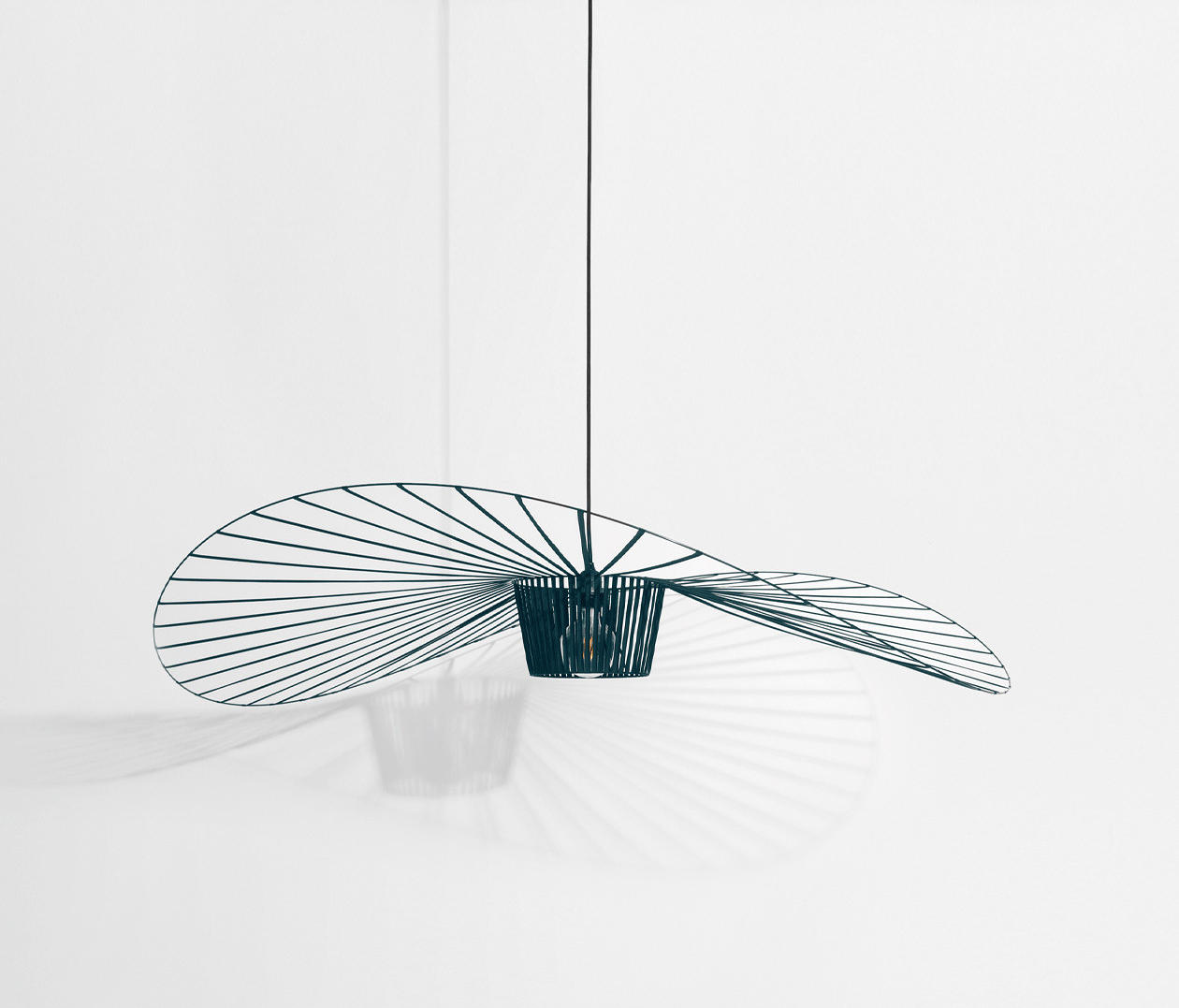 Vertigo taklampe fra Petite Friture er designet av Constance Guisset. Vertigo er en omsluttende og grafisk lampe som skaper et rom med intimitet og tilpasser seg alt fra store til små rom. Siden den er ekstrem lett, reagerer lampen på den minste trekk. Den lyser mykt og projiserer et grafisk skyggemønster på de omkringliggende flatene.