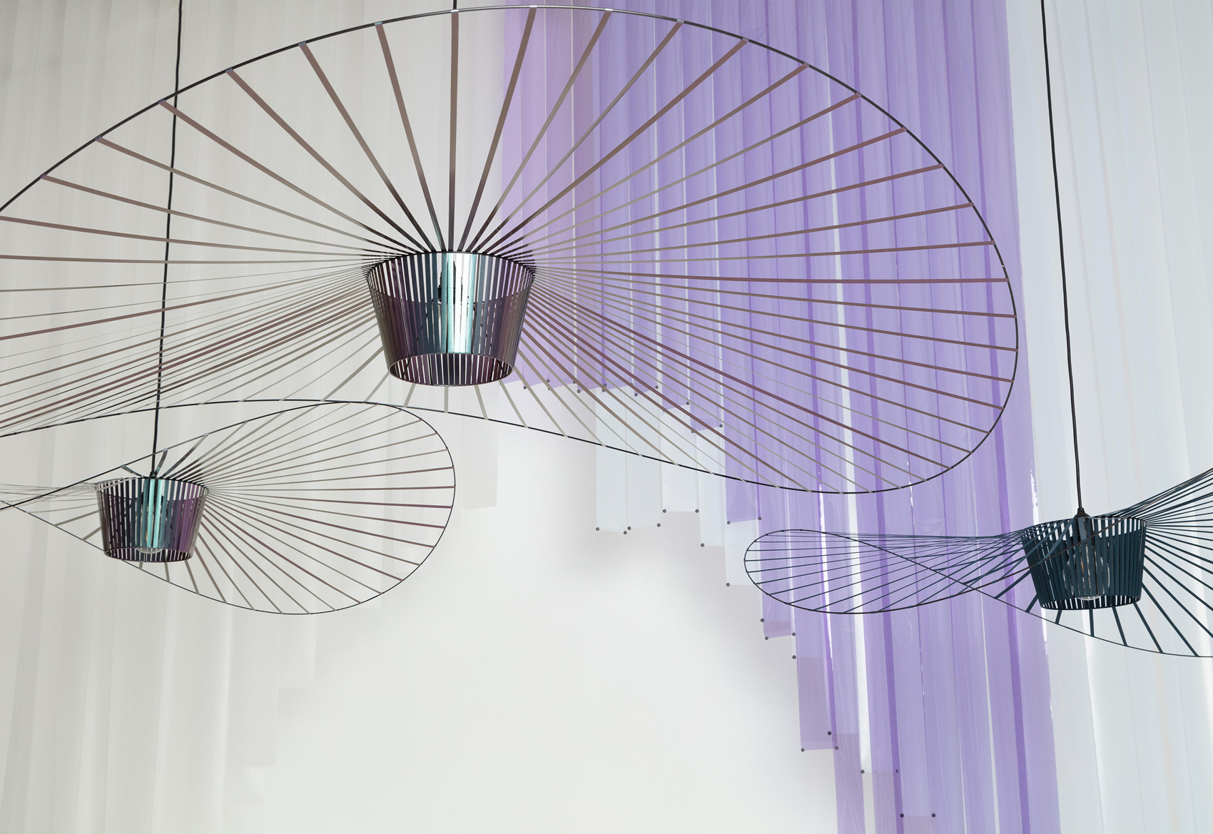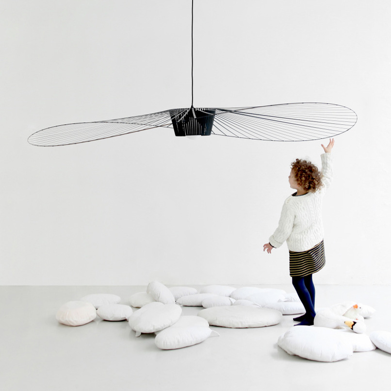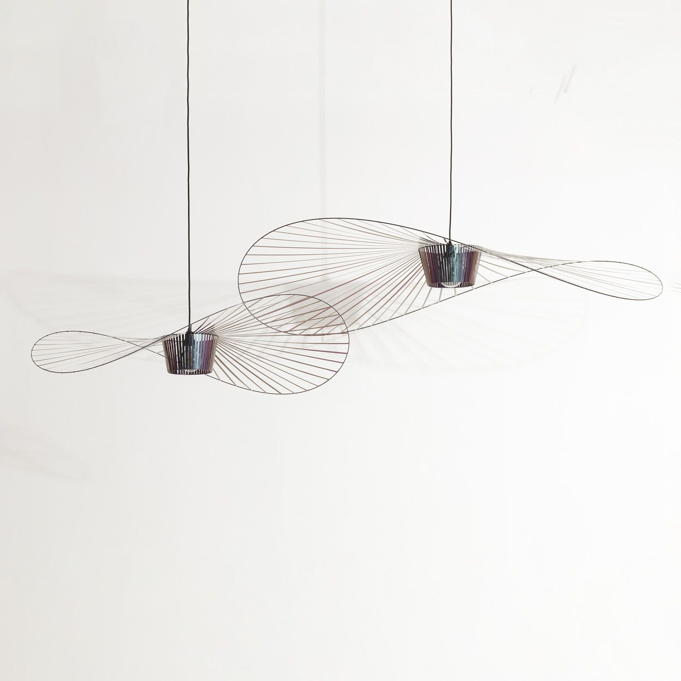 Vertigo taklampe fra Petite Friture er designet av Constance Guisset. Vertigo er en omsluttende og grafisk lampe som skaper et rom med intimitet og tilpasser seg alt fra store til små rom. Siden den er ekstrem lett, reagerer lampen på den minste trekk. Den lyser mykt og projiserer et grafisk skyggemønster på de omkringliggende flatene.