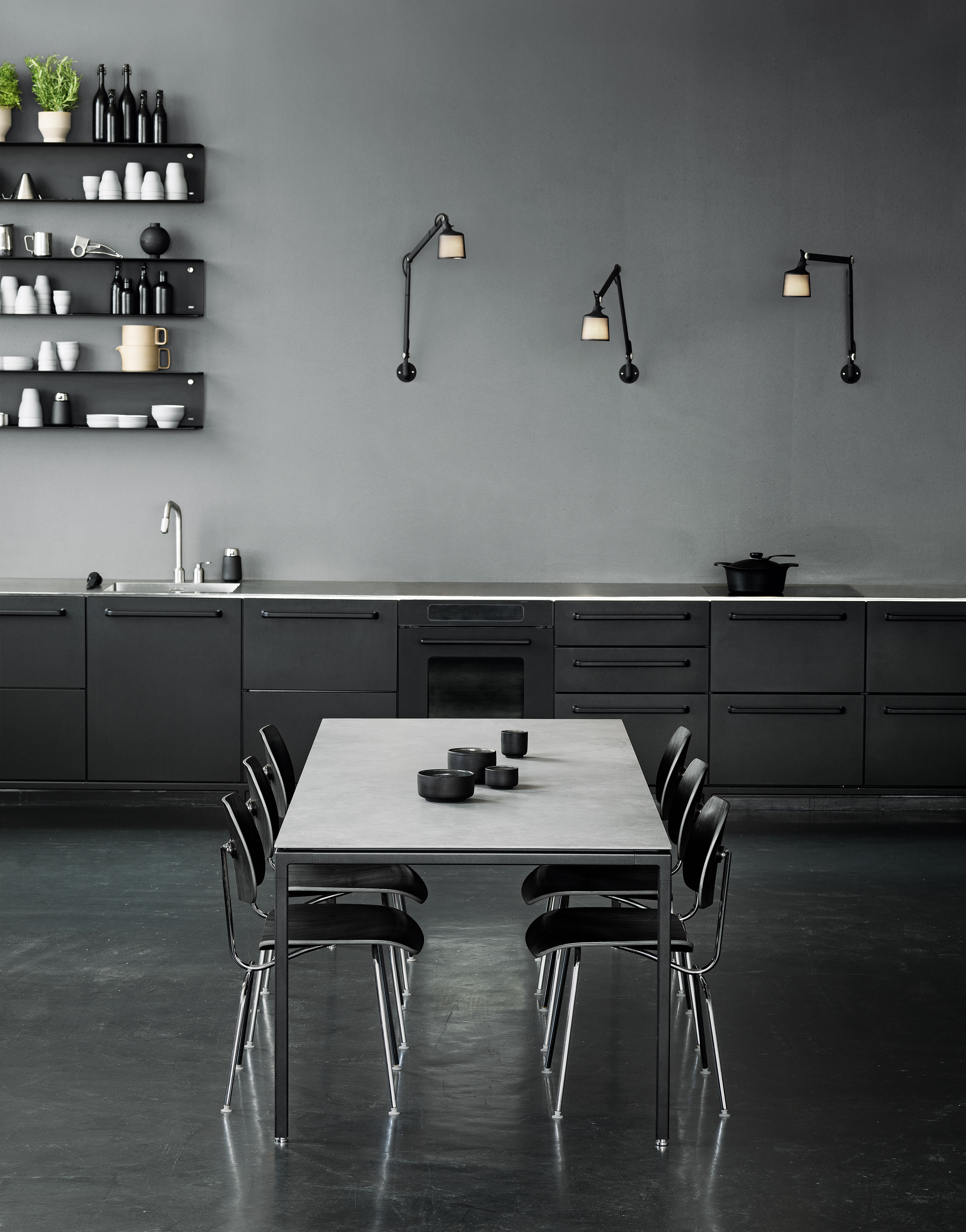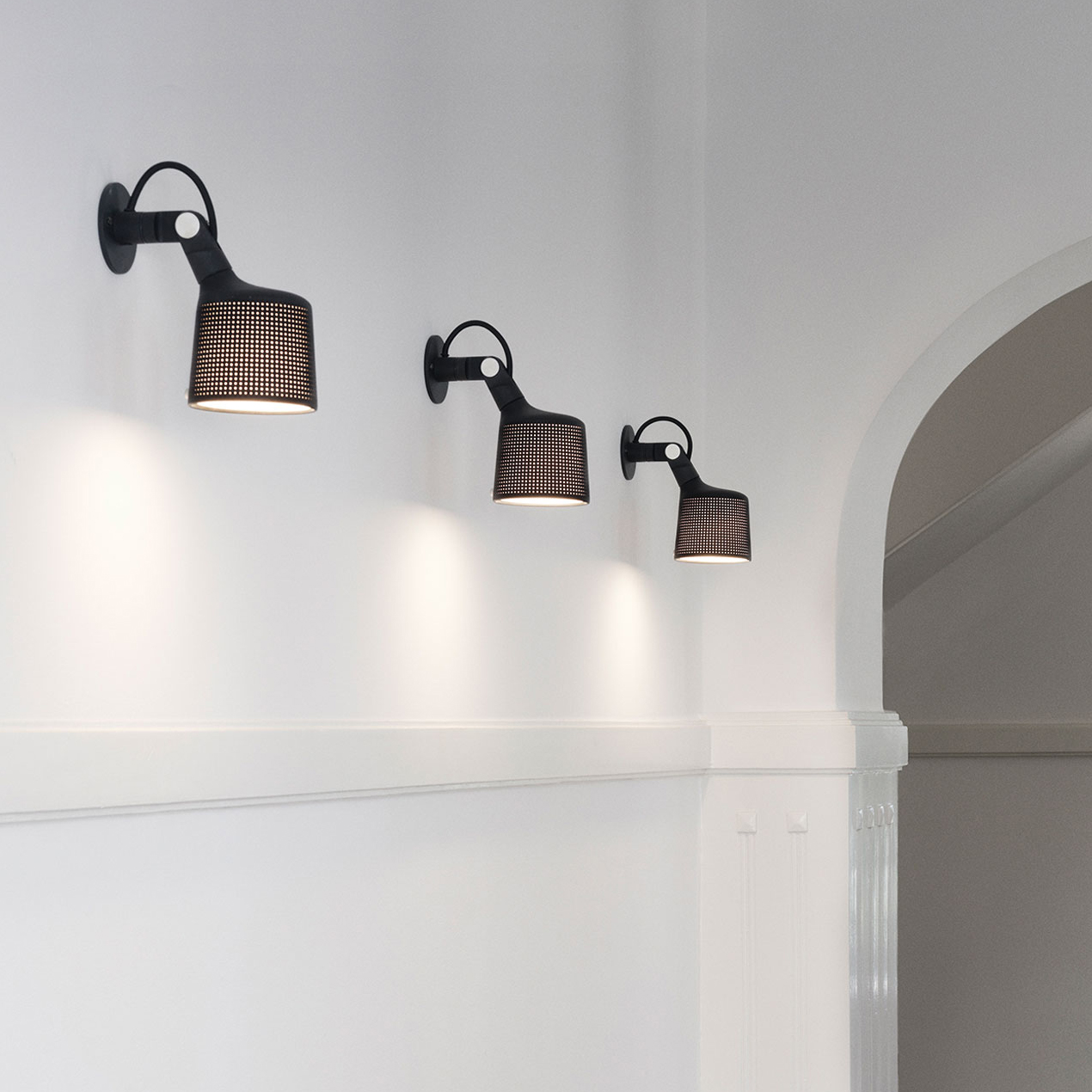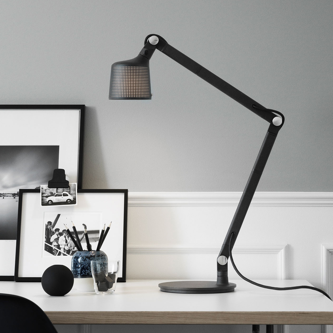 Lampene er nøysomt forarbeidet i pulverlakkert aluminium og stål, og har en perforert skjerm og glasslinse for en behagelig spredning av lyset. Lampen er utstyrt med detaljer, slik som en justerbar armer for fokusert lys og fingerskruer for å låse posisjonen. På grunn av den raske utviklingen i LED-teknologi, har alle Vipp-lamper en utskiftbar LED-lyskilde. Dette lar deg oppdatere Vipp-lampen din til den beste lyskvaliteten og gir deg en lampe som er tidløs i både design og funksjon. E14 maks 22 Watt. Kompatibel med lyspærer i energiklassene A++ til E. Lampene fås i sort, foruten veggspot som også fås i hvit.