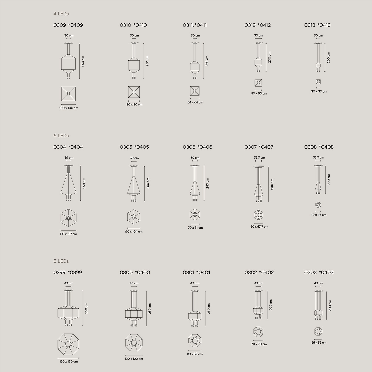 Wireflow Chandelier, Wireflow Pendant, Wireflow Lineal og Wireflow Freeform