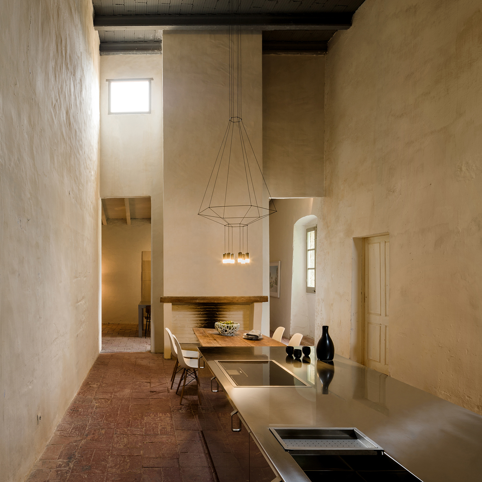 LED-pendellampen Wireflow har en imponerende fremtoning, og designet minner om en klassisk lysekrone. Formen til stativet gir inntrykk av en viss gjennomsiktighet og gir en helt spesiell karakter til ethvert rom. Den består av et filigrant metallstativ med kabler hengende nedover som alle har en diffusor av presset glass. Lyset fra de integrerte LED-pærene avgis diffust fra lampeskjermene som befinner seg på ulike høyder.