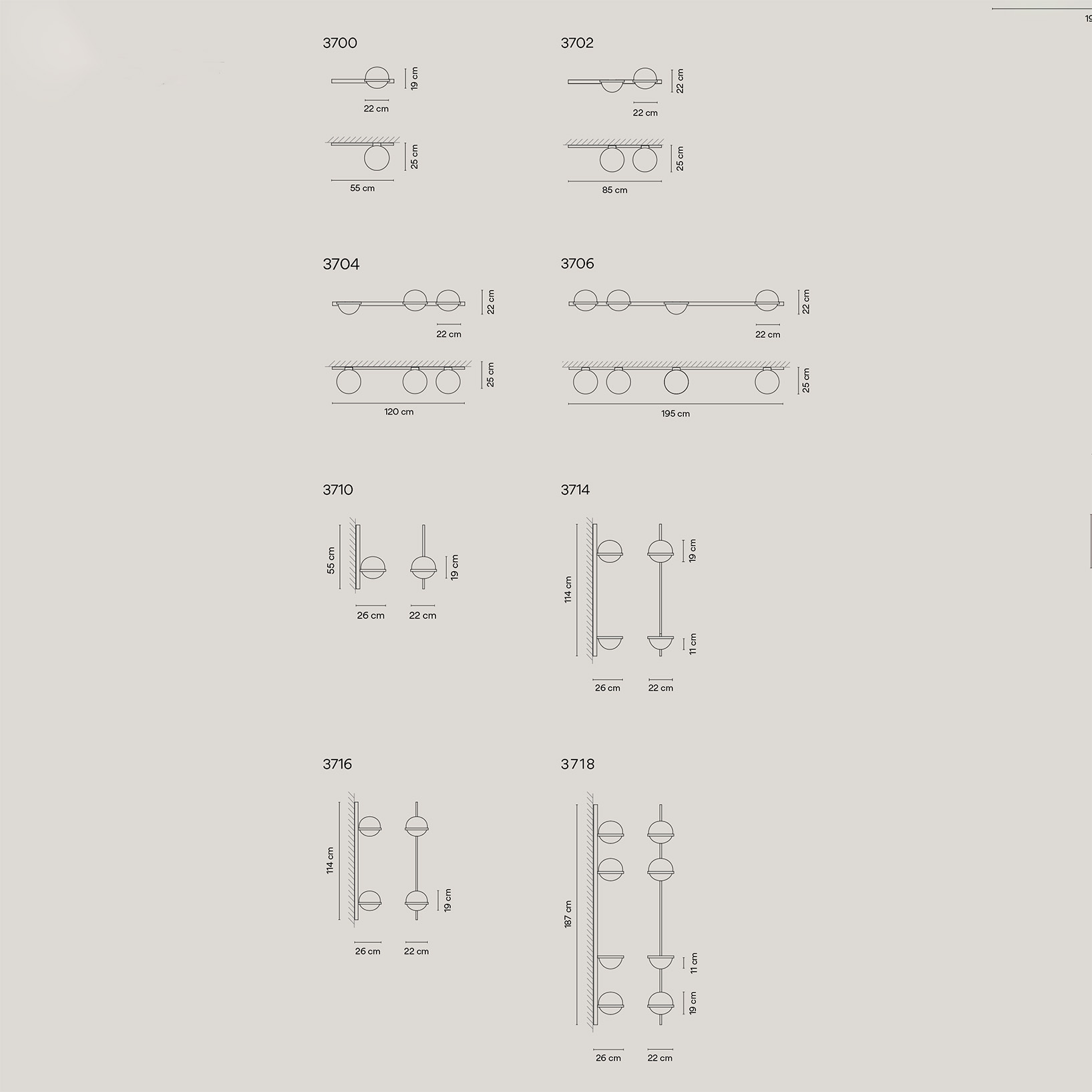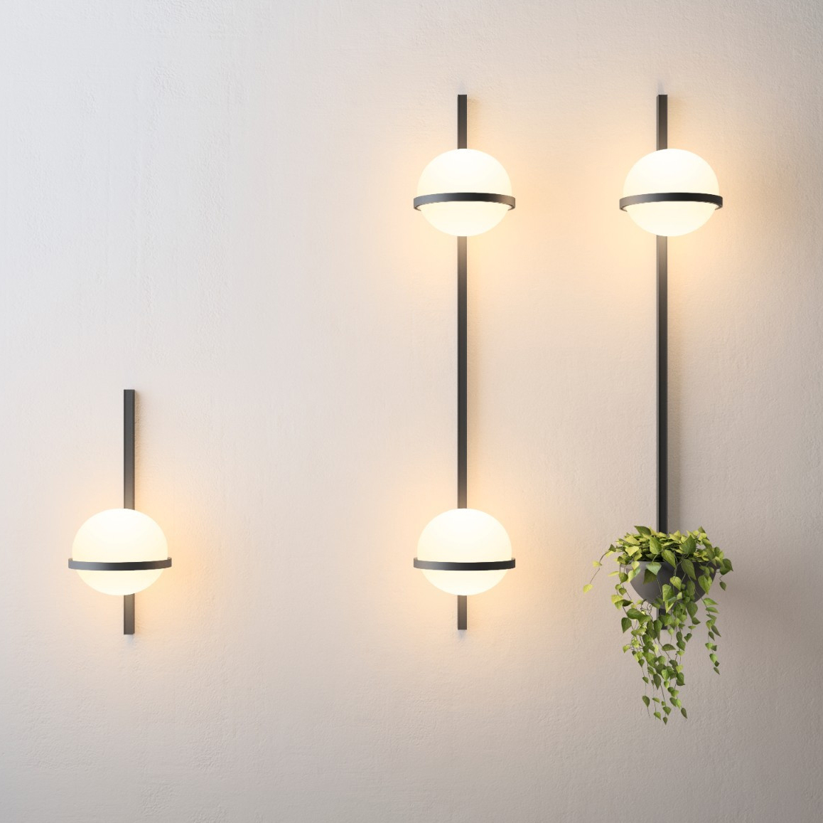 Palma finnes både som LED vegglampe, taklampe og bordlampe.