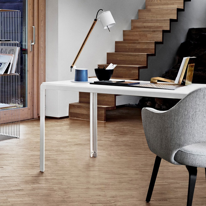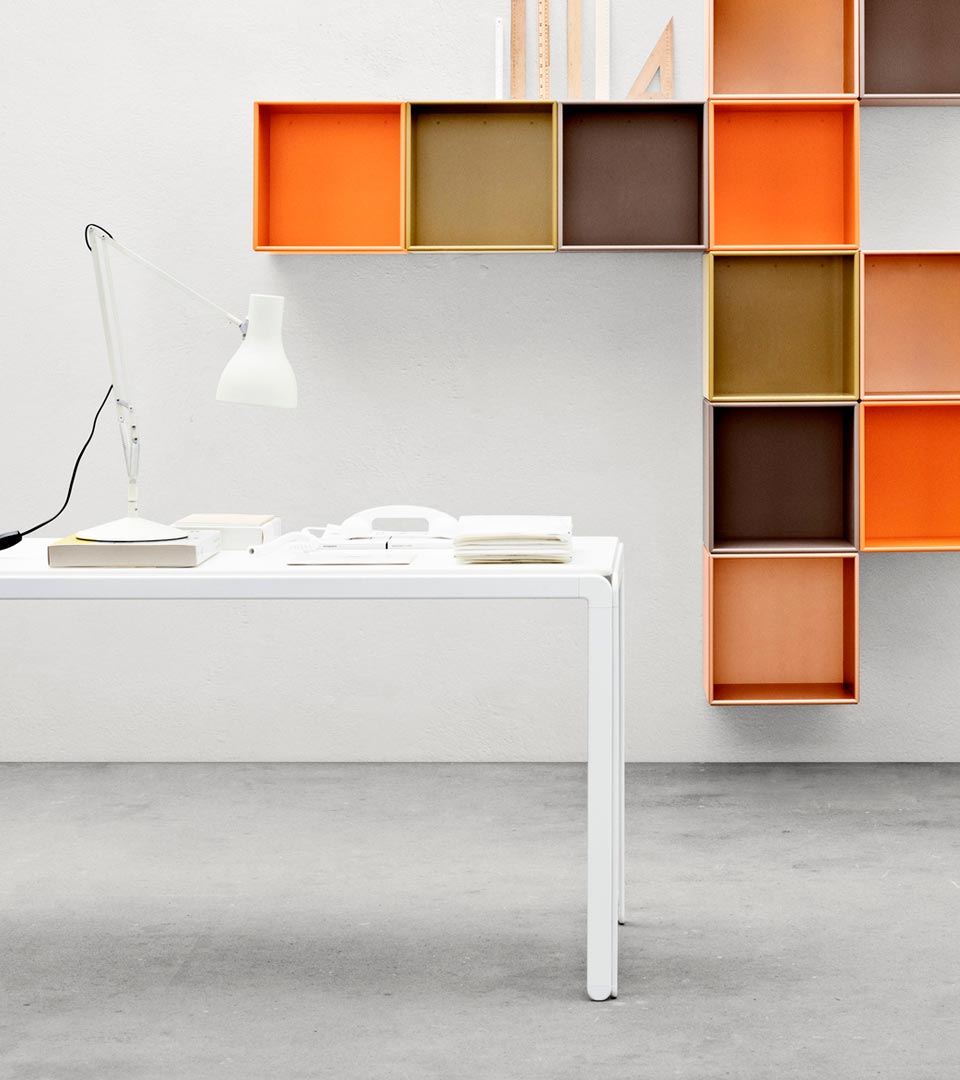 Arne Jacobsen tegnet Djob Table i 1971 til kontorer og møtelokaler i Danmarks Nationalbank. Med sitt stilrene og enkle design passer Djob Table inn i de fleste interiør. Bordet fås i 2 høyder og mange bordstørrelser i et stort utvalg av overflater og farger.  Understell i eloksert aluminium med hjørner og føtter i zink m/alu legering og deretter matt forkrommet. Kan fås i 6 forskjellige farger. Bordplate leveres i laminat, silk laminat, kompaktlaminat med sort kjerne, linoleum, finér og nano laminat. Bordpladene fås som standard med lakkerte kanter, som matcher overflaten. Bord i finér har kant beiset i matchende farge. Alle beina er utstyrt med stillskruer som kan justeres 2 cm. Kan fås med tilbehør som hjul, kabelrenne og frontpanel.
