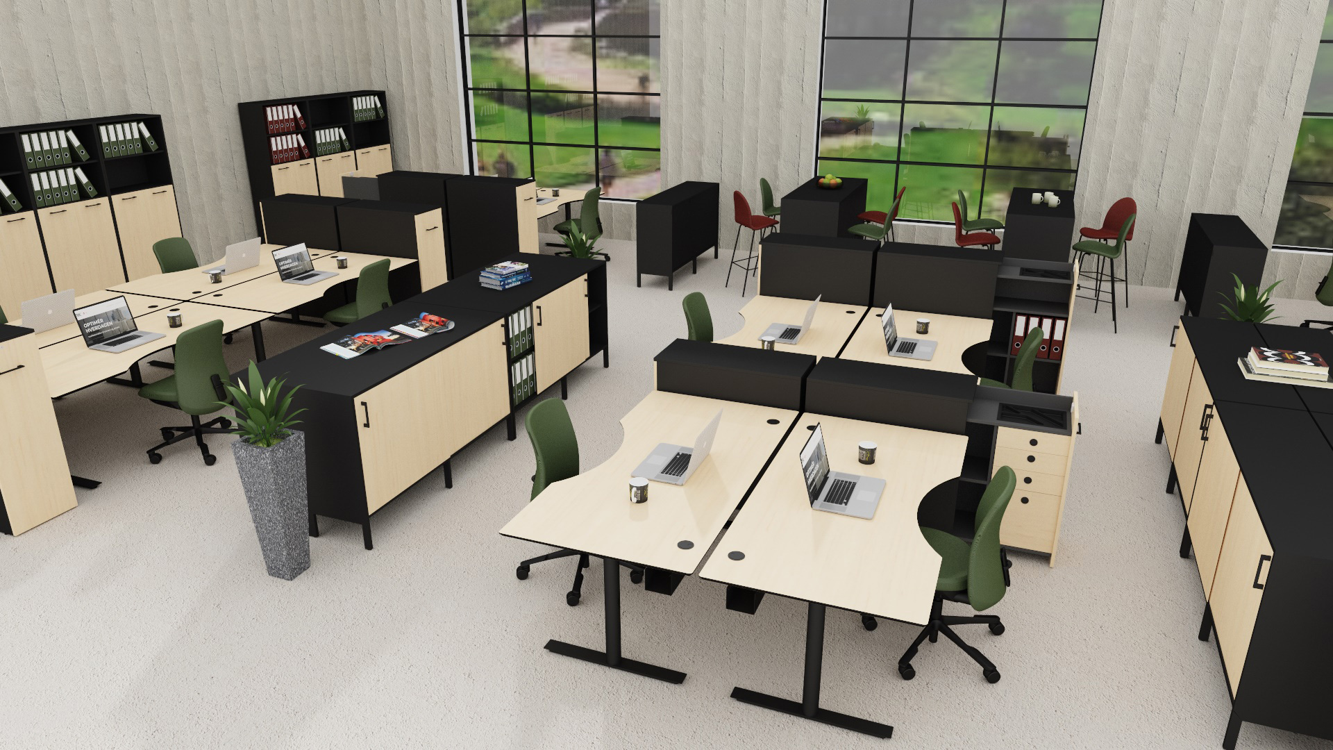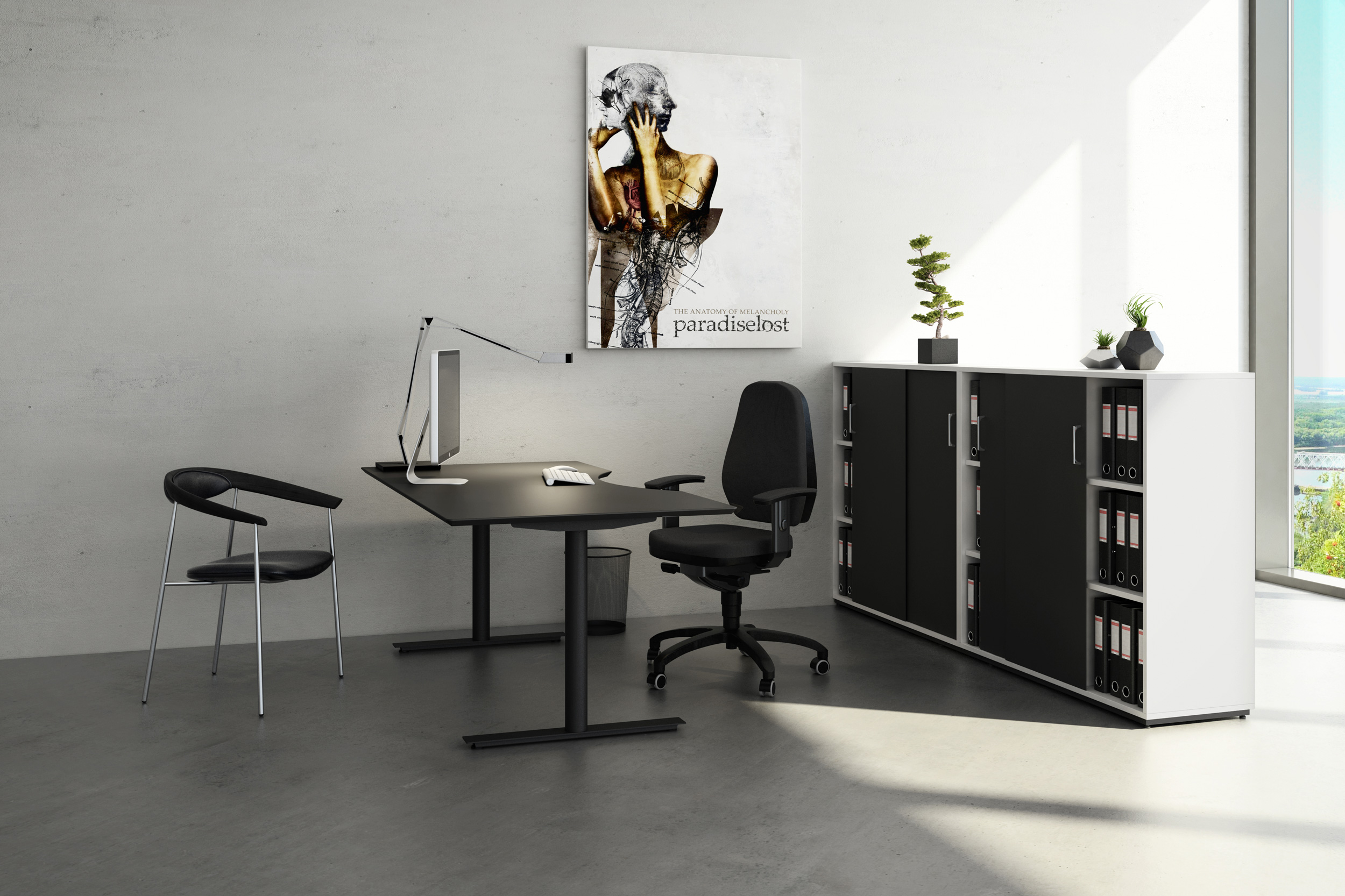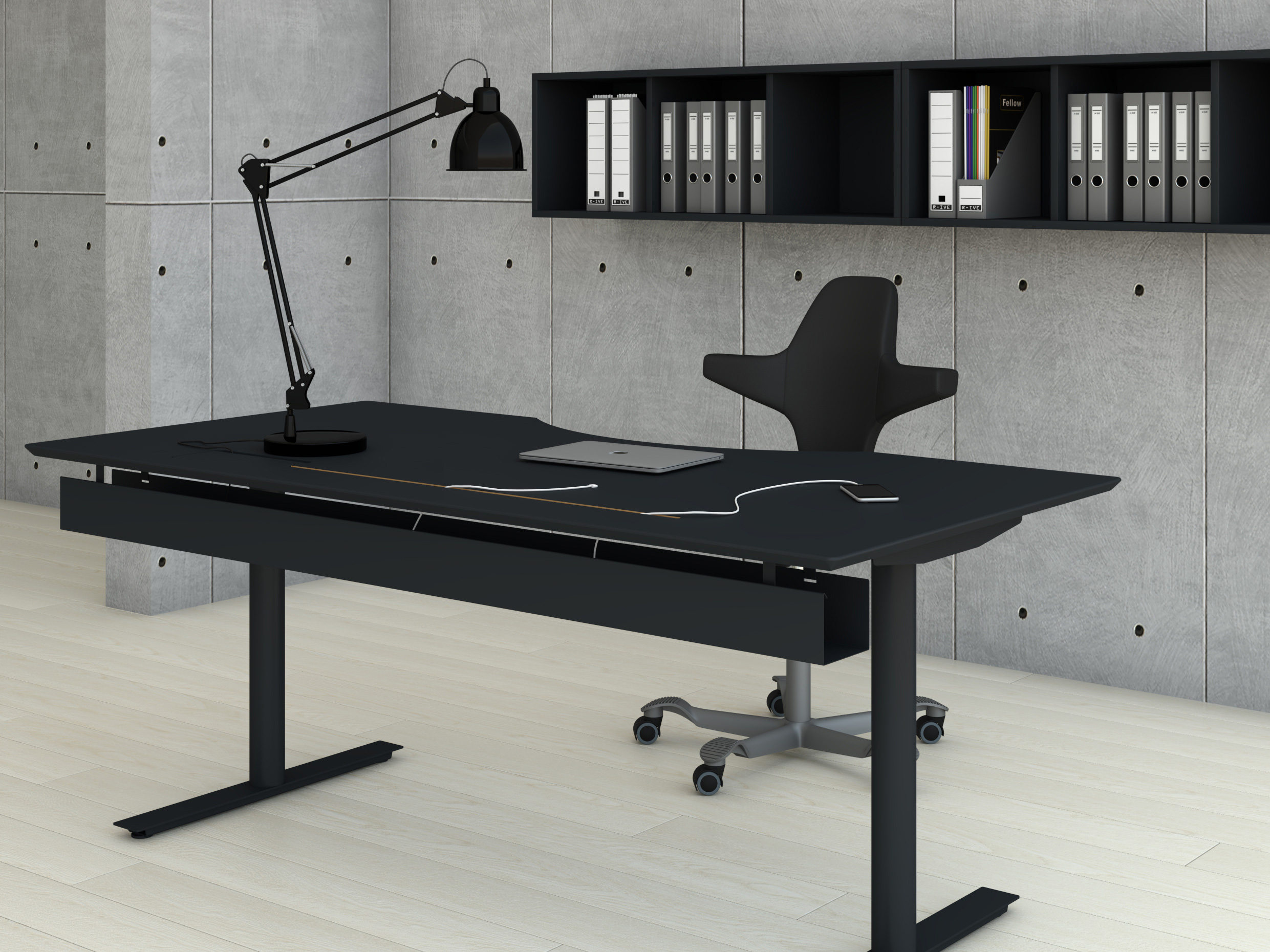 InLine arbeidsbord fra Fumac finnes i en rekke bordstørrelser og former som standard. Bordet kjennetegnes av runde søyler og en slank, rektangulær fot som kompletterer et stilrene og elegante designet. Velg mellom fast høyde 72 cm, 2-leddet elektrisk hev/senk understell, høydeintervall 72 – 122 cm, og 3-leddet elektrisk hev/senk understell, høydeintervall 66 – 132 cm inkludert bordplate. Justerbar flexiramme som passer bordbredde fra 120 til 200 cm. Velg mellom bordplater i 22 mm finér, direktelaminat, laminat, linoleum og nanolaminat. Kan fås med tilbehør som kabelluke med eller uten slisse, kabelgjennomføring, kabelrenne, uttrekksskuff, frontpanel, pennebakker osv.