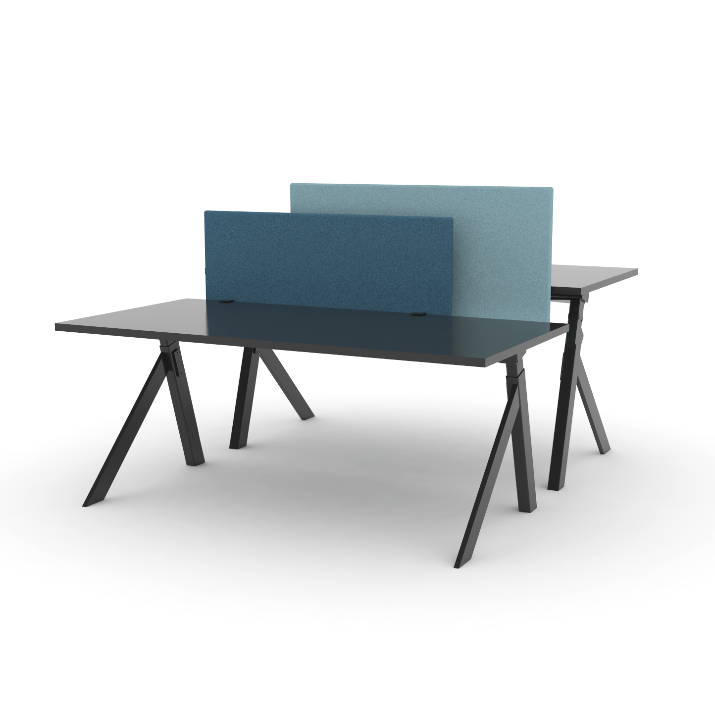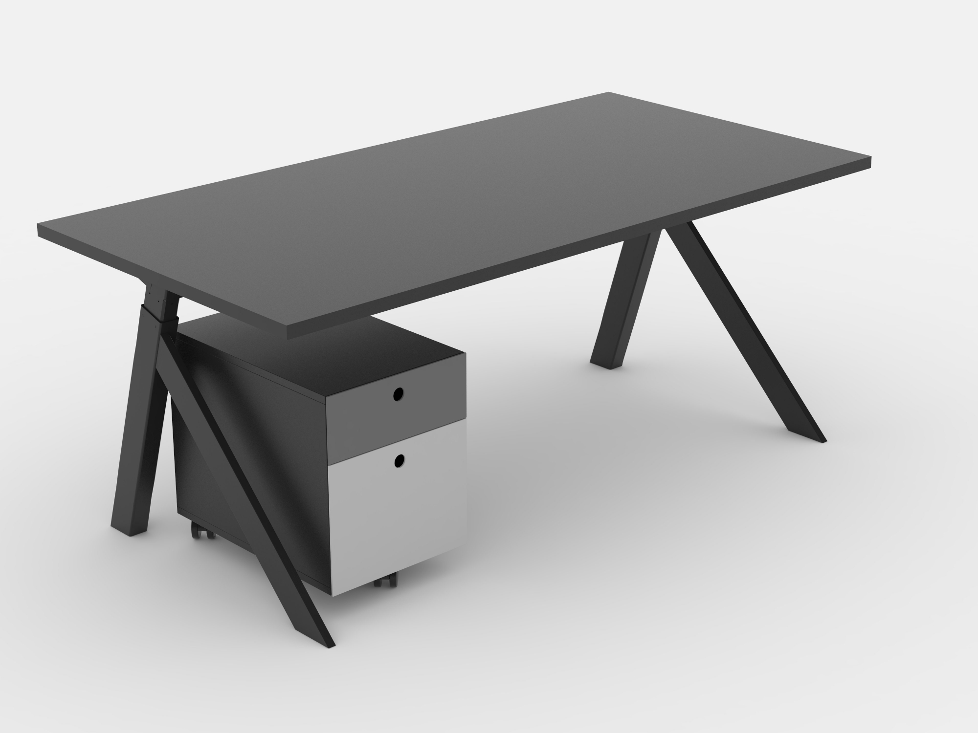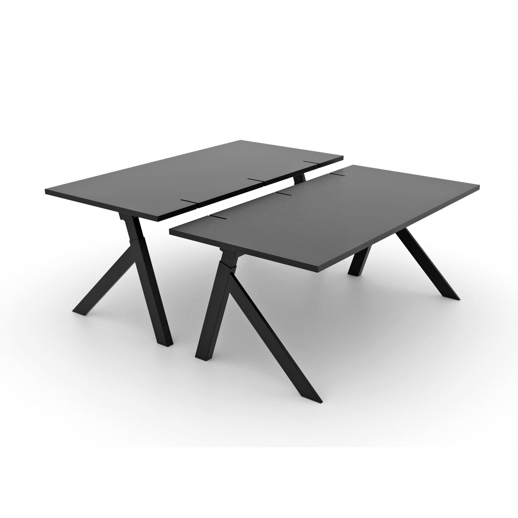 Nå er det endelig et alternativ til standard heve/senkebord, som alle likner hverandre. Det unike og flotte K2-Table kan ikke sammenlignes med noen av de tradisjonelle T-bens hev/senke bordene på markedet. Konstruksjonen i K2 Table er bygget opp rundt sargen, som på elegant vis samtidig fungerer som kabelbrønn. Bordet er også et av markedets absolutt mest stabile heve/senkebord. K2 Table sine ben er skråstilte, noe som gir en horisontal forskyvning på 12 cm fra topp til bunn.