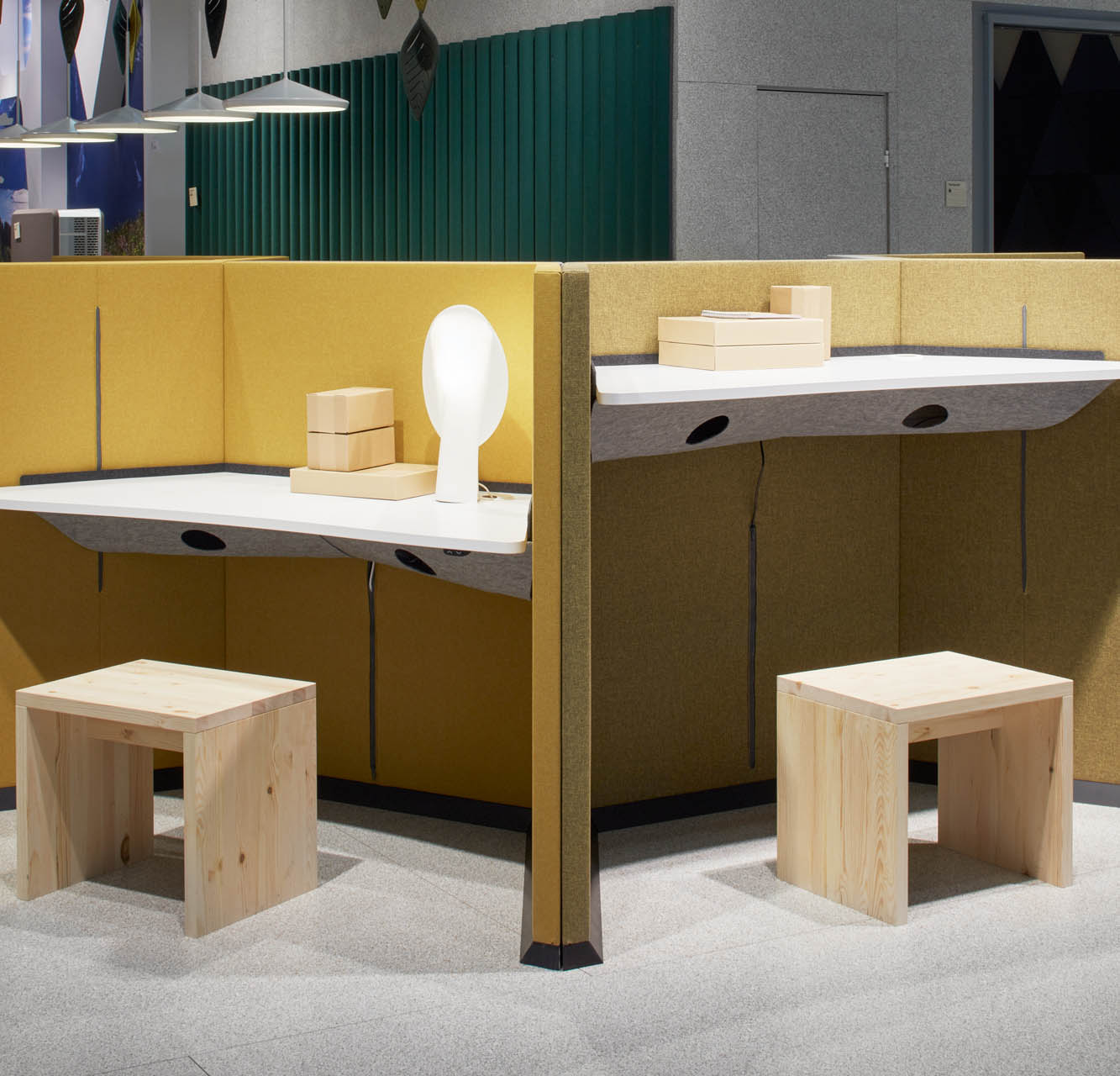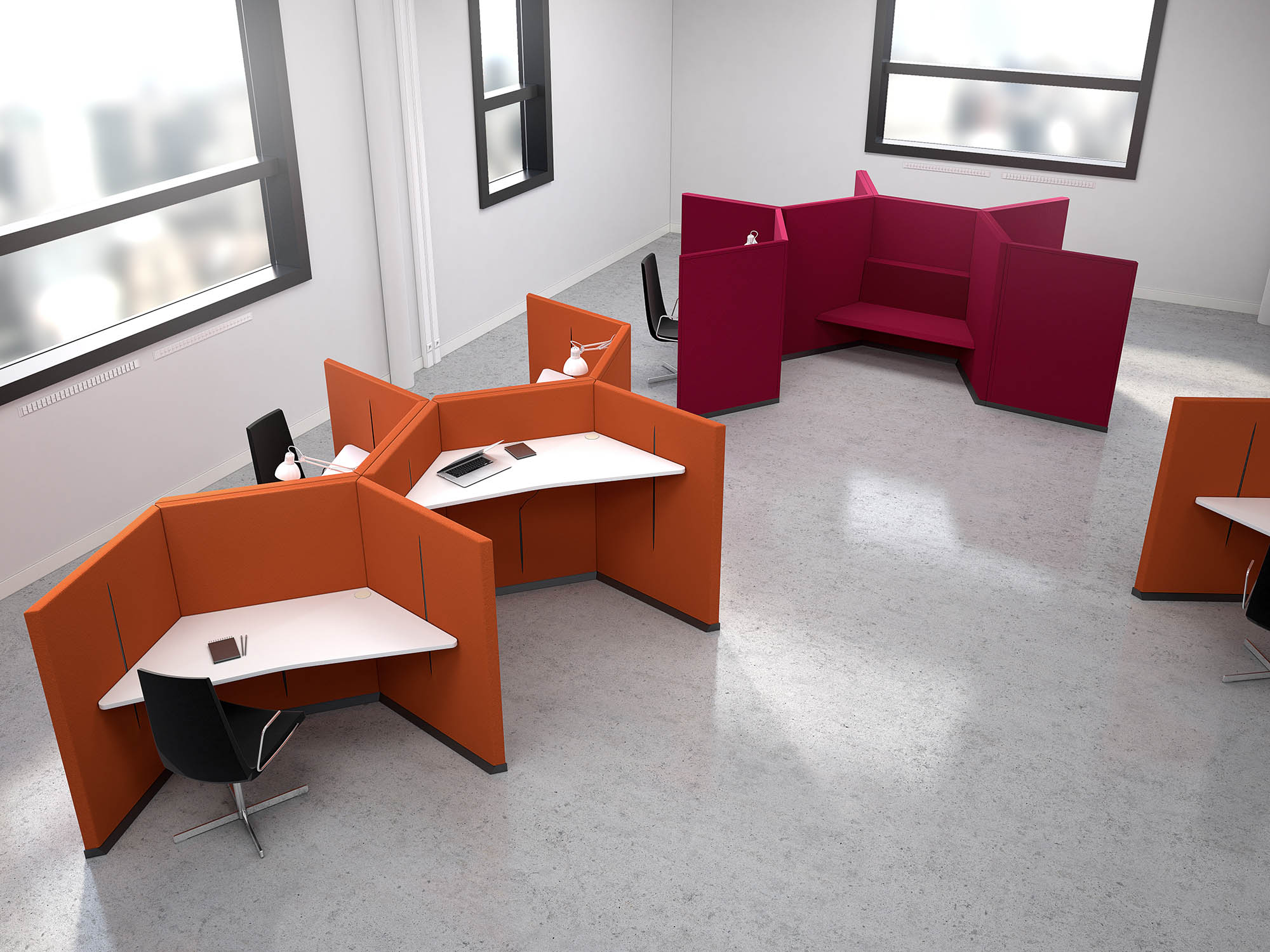 Naturen er inspirasjonskilde for Poul Christiansen «My Hive» : en elegant og forenklet arbeidsstasjon med et høydejusterbar skrivebord . Med «My Hive» , bruker Poul Christiansen sekskanten – en form som er til stede i bikuben, så vel som på skilpaddeskjell. Man kan slik forme dynamiske og overflate-effektive skrivebordskonfigurasjoner. I stedet for å bruk bordben, er bordplaten integrert inn i lydabsorberende skjermer, og dermed frigjøres plass. Både kabler og mekanismen for justering av høyden er skjult inne i skjermen. Skjermvegg fås i stoff: Synergy, Blazer og Salsa. Andre stoffer på forespørsel.