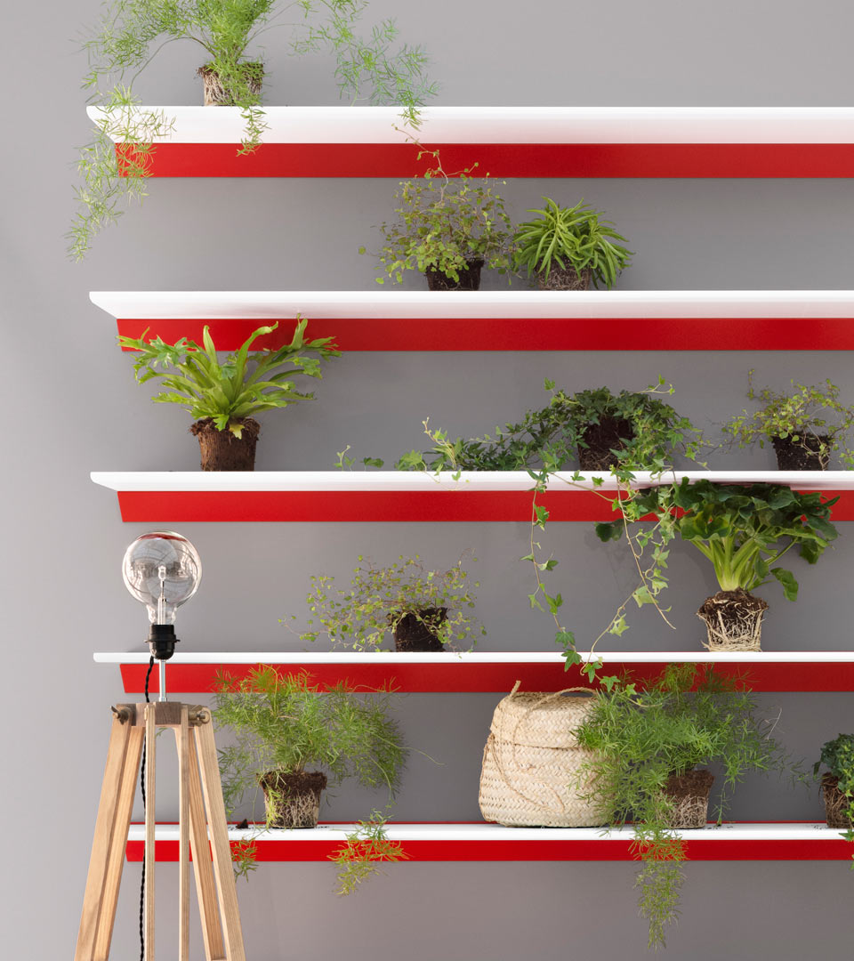 Skyline hylle, i 16 mm MDF plate, leveres i alle Montanas 42 lakkfarger, 7 Compo lakker og i 12 mm klart eller satinert glass. Skyline hyller i klart glass leveres dessuten lakkert i Montanas 42 lakkfarger. Veggskinnen er utført i eloxeret aluminium og kan fås pulverlakkert i fargene Snow, China Red, Black, Anthracite, Royale og Green Tea.