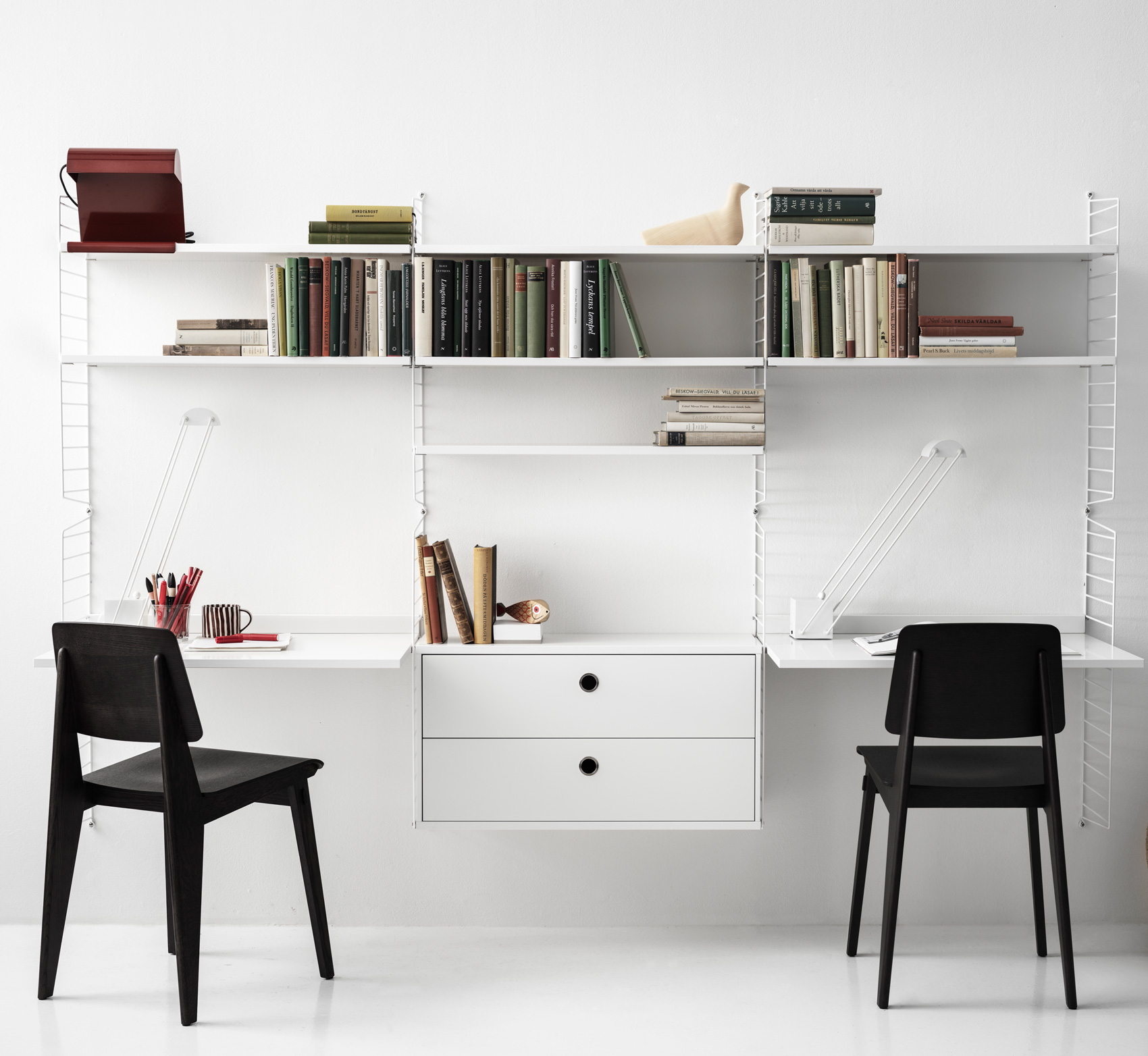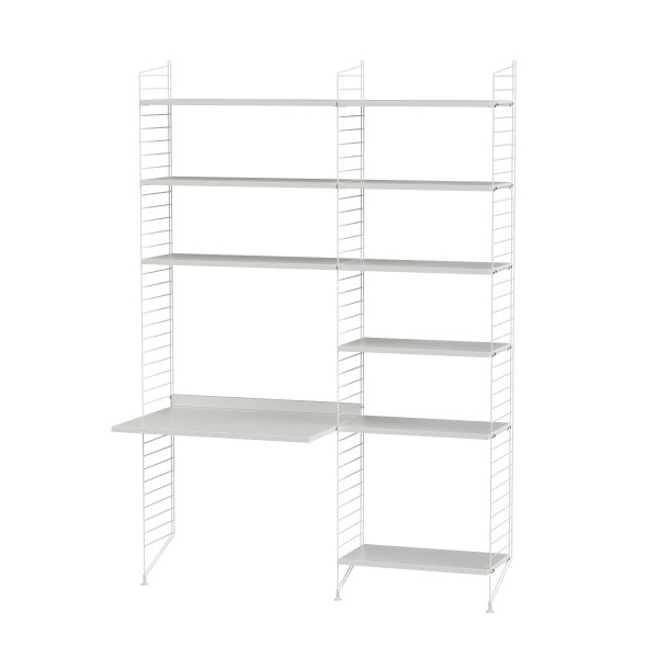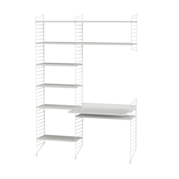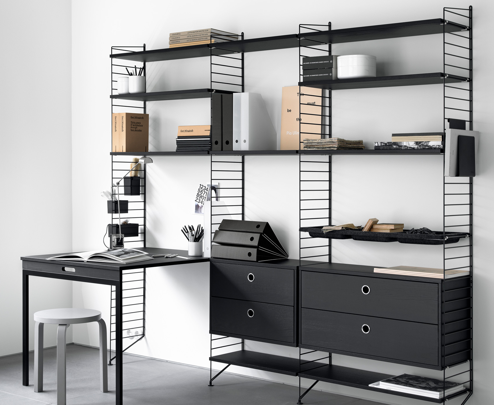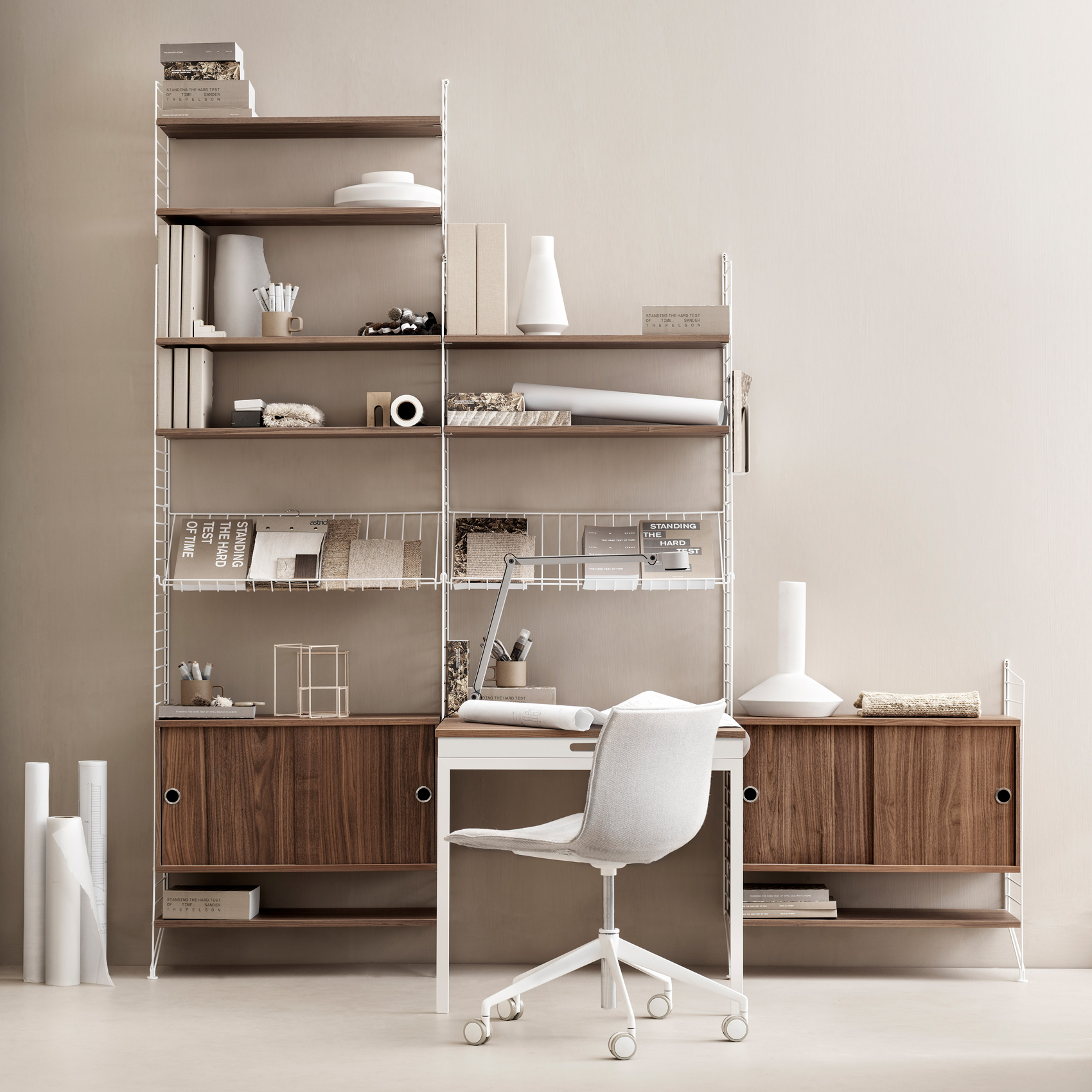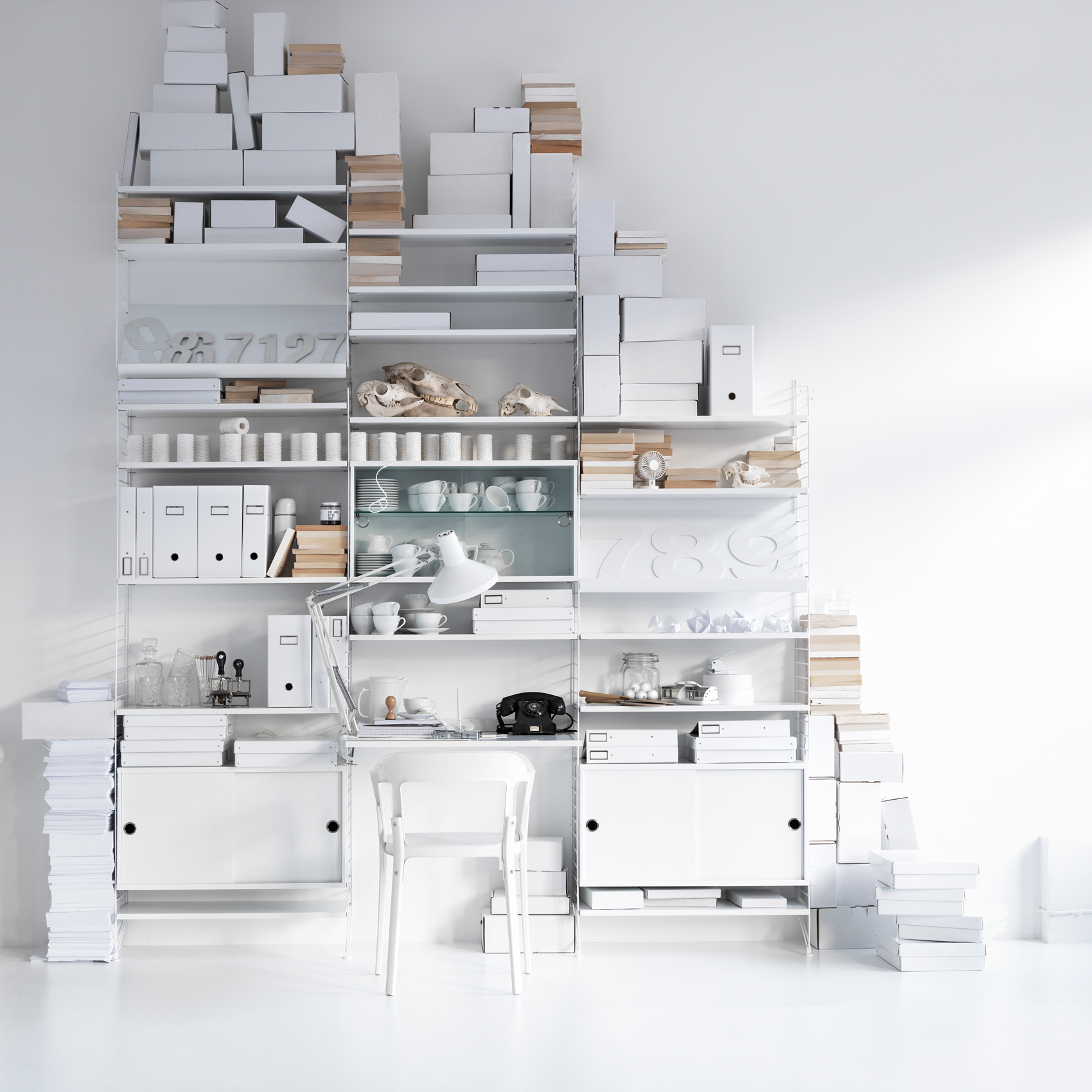 String® System er en serie komponenter med de klassiske trådpanelene som gir nesten ubegrensede kombinasjoner. Du kan velge mellom et stort utvalg av farger og materialer for å bygge ditt eget personlige hyllesystem, basert på standardbredder på 60 cm og 80 cm og to dybder, 20 cm og 30 cm.
