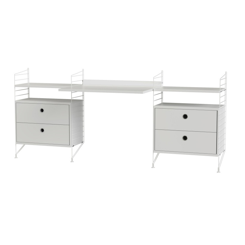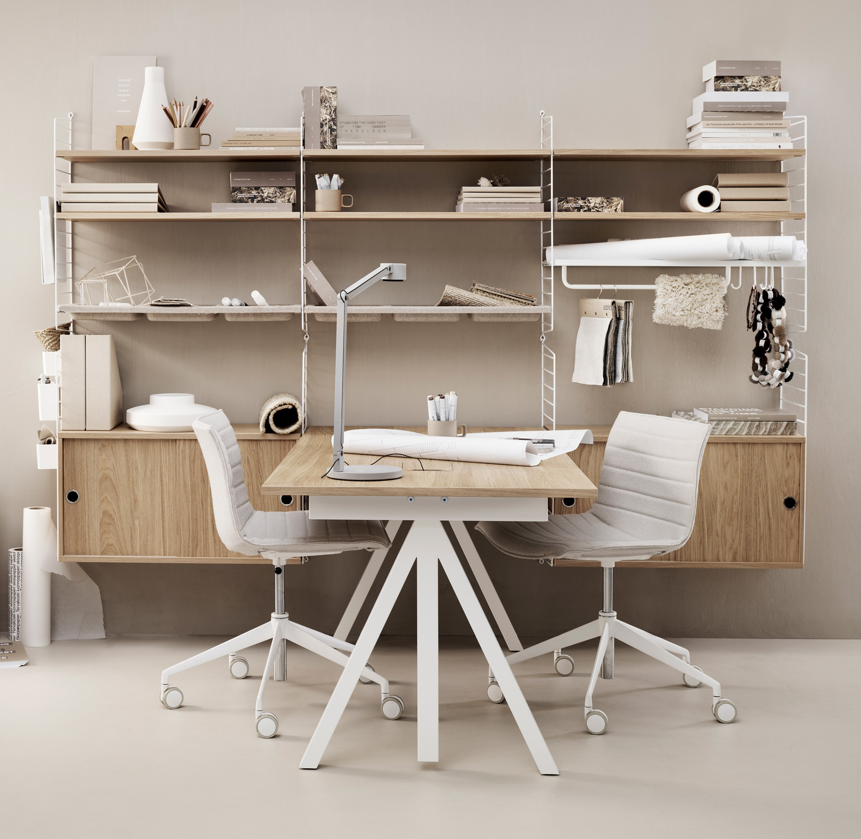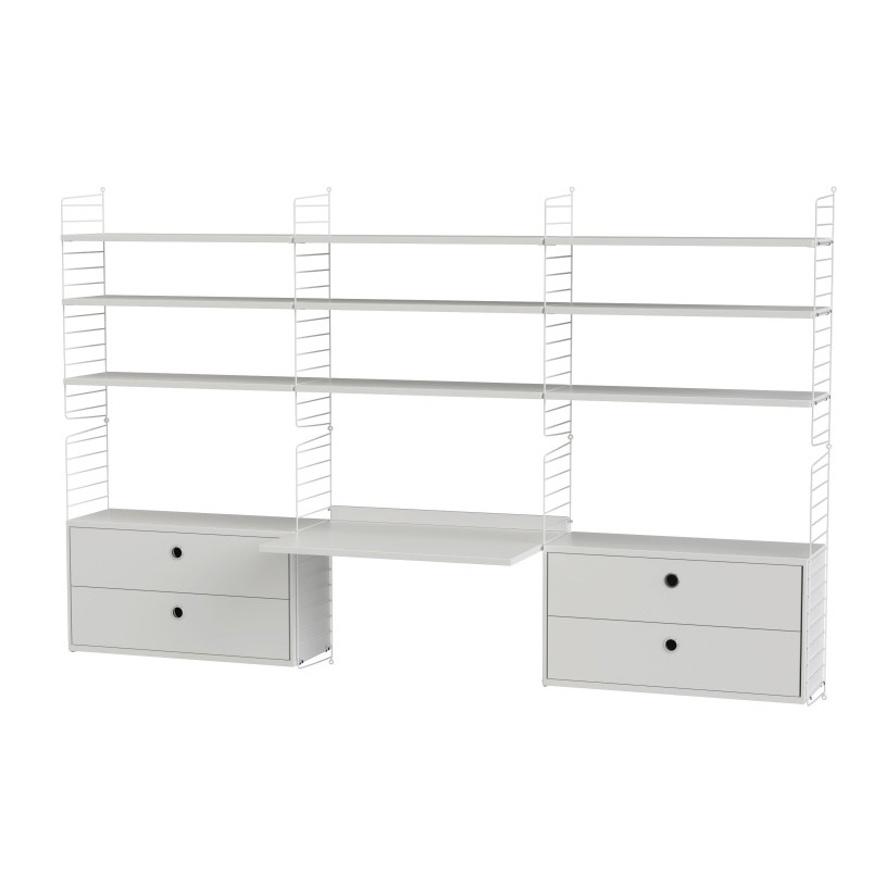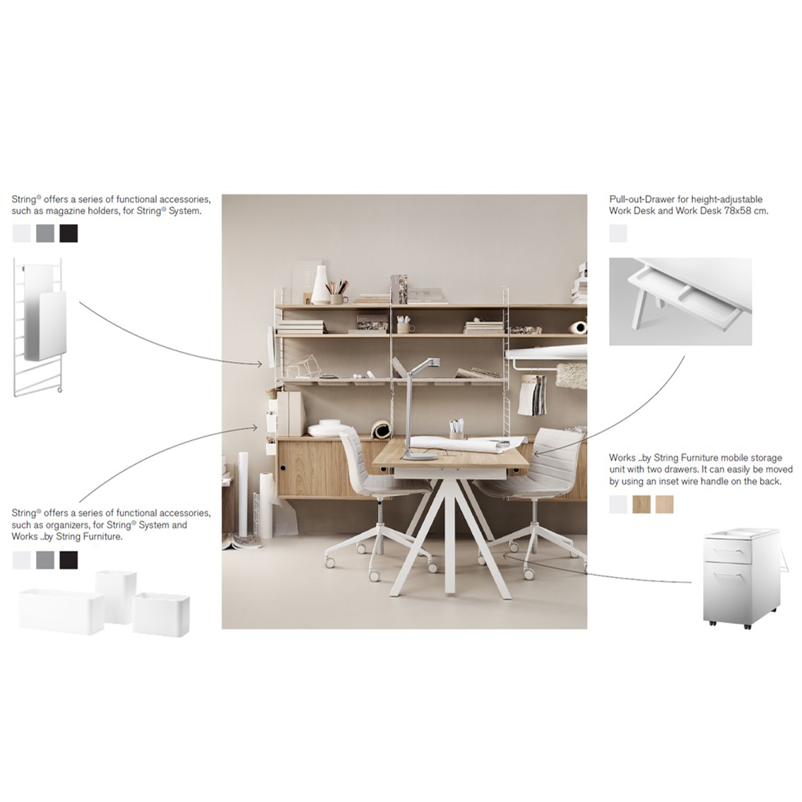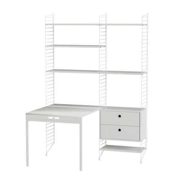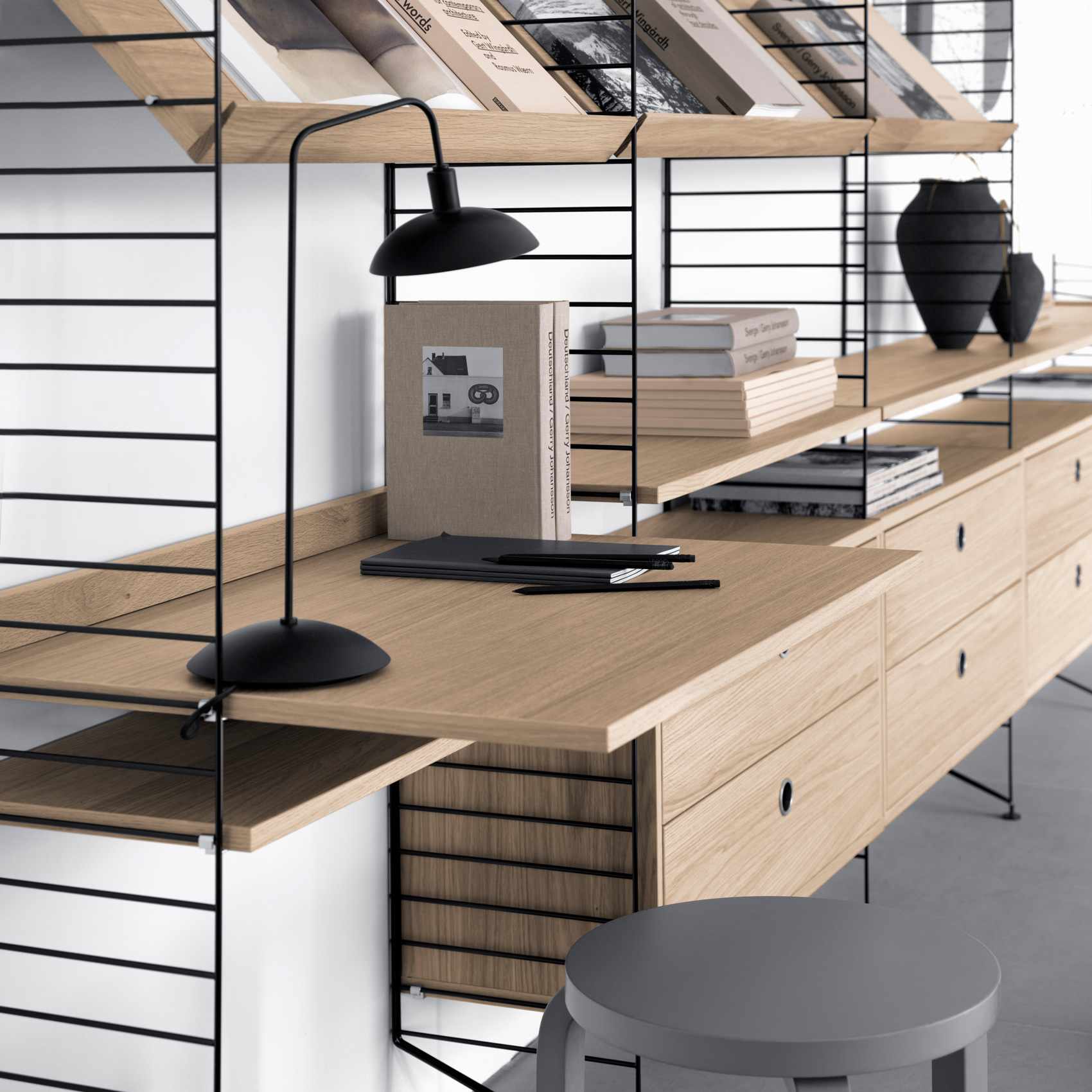 String® System er en serie komponenter med de klassiske trådpanelene som gir nesten ubegrensede kombinasjoner. Du kan velge mellom et stort utvalg av farger og materialer for å bygge ditt eget personlige hyllesystem, basert på standardbredder på 60 cm og 80 cm og to dybder, 20 cm og 30 cm.