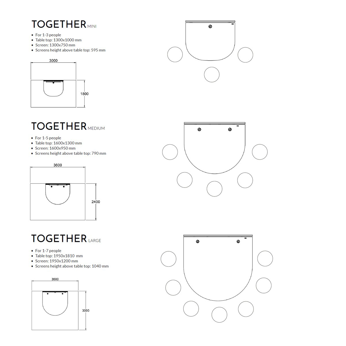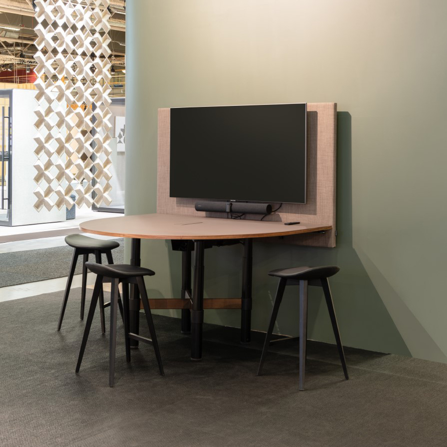Together er produsert i samarbeid med Spectrum Architects. En unik og innovativ multifunksjonell løsning for individuelt arbeid med mulighet for raskt å gå over til møter; fysisk, digitalt og hybrid, eller rett og slett for gruppearbeid.