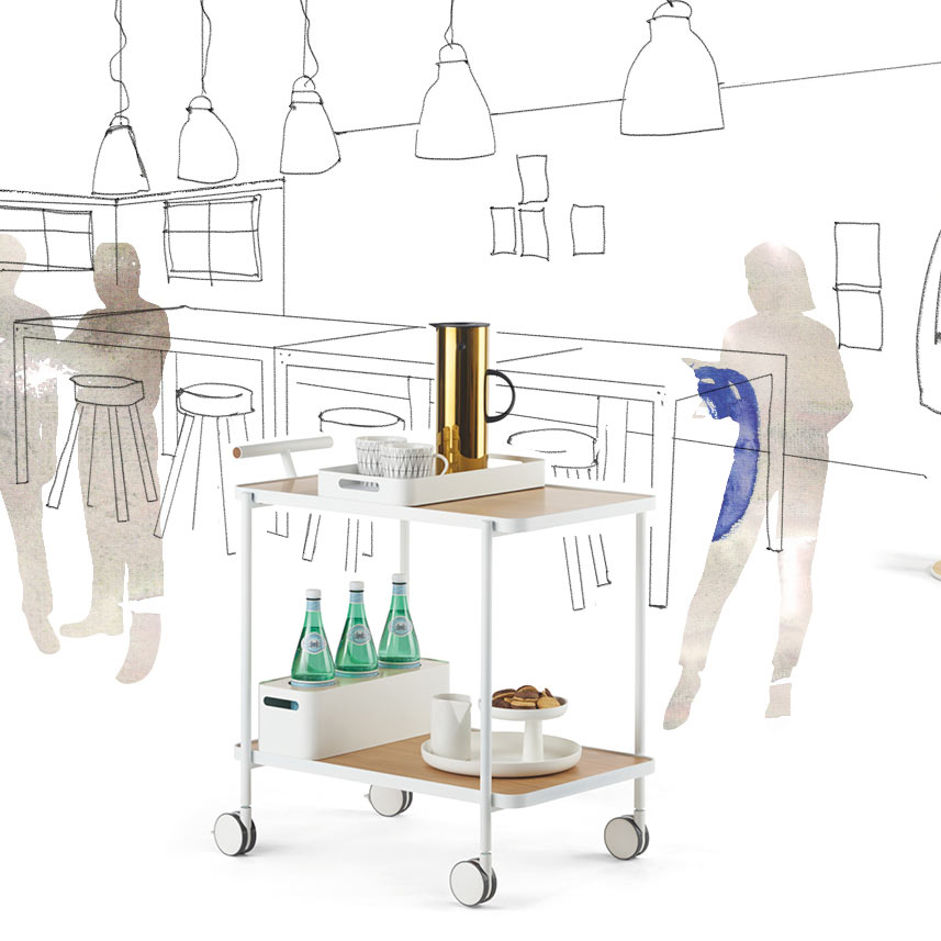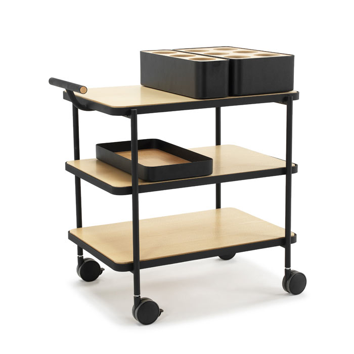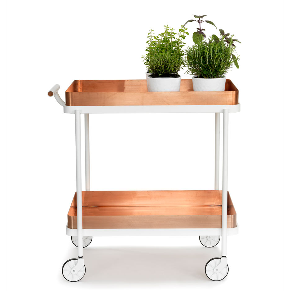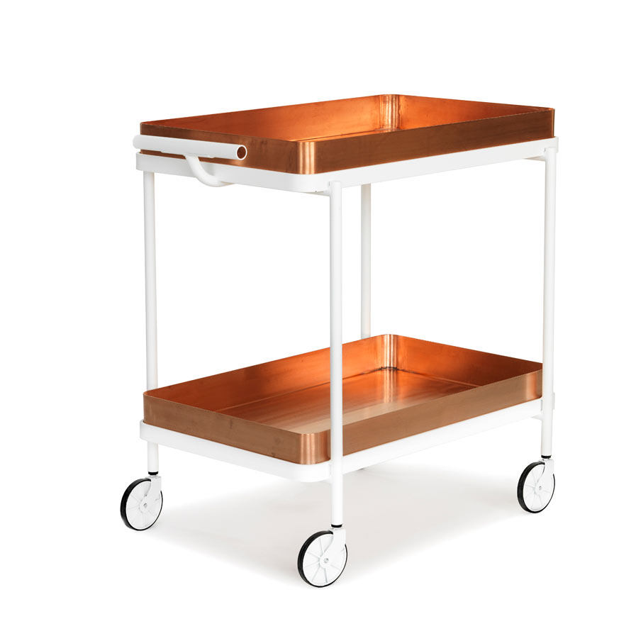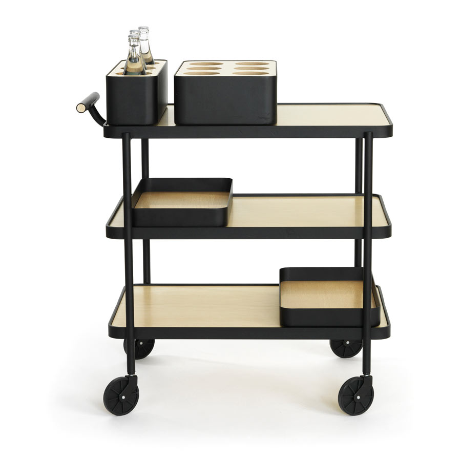 Exo-Trolley er en representativ serveringsvogn som enkelt kan bytte karakter gjennom ulike komponenter. Fra den enkel naturnære vognen med tredetaljer til en mer eksklusiv variant i kobber. Til vognen finnes utbyttbare brikker i ulike materialer, tilbehør for mat og drikke m.m.