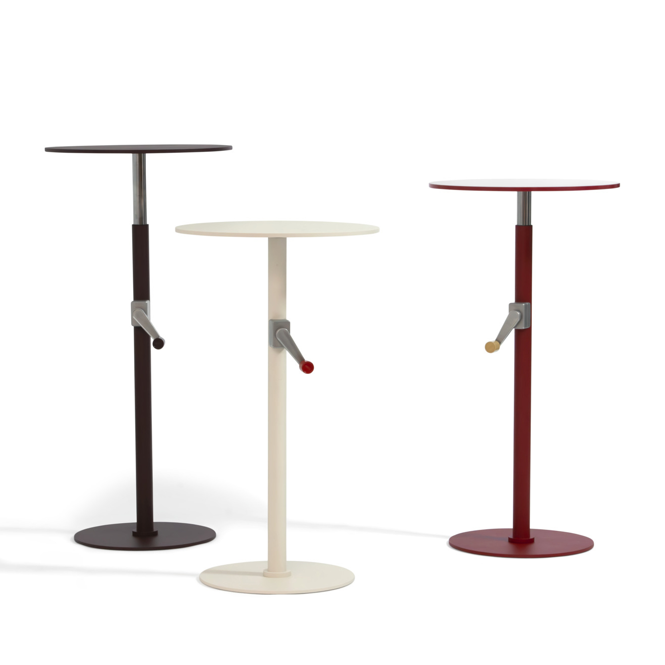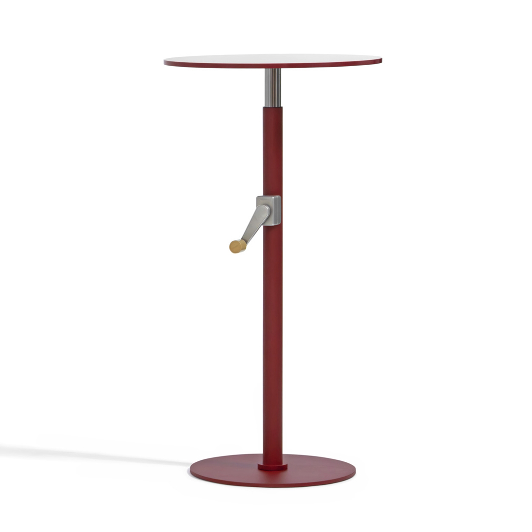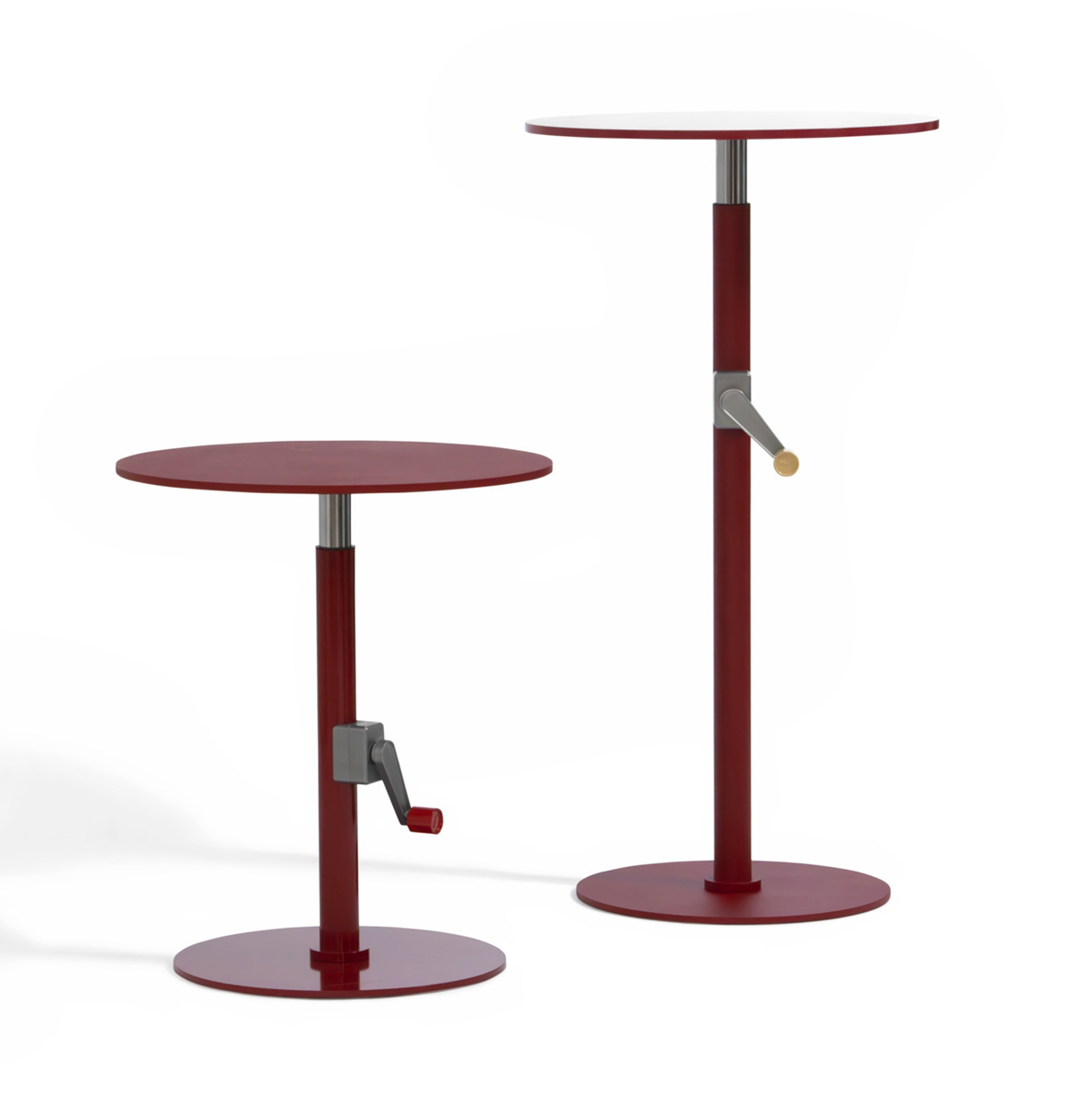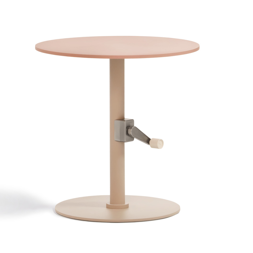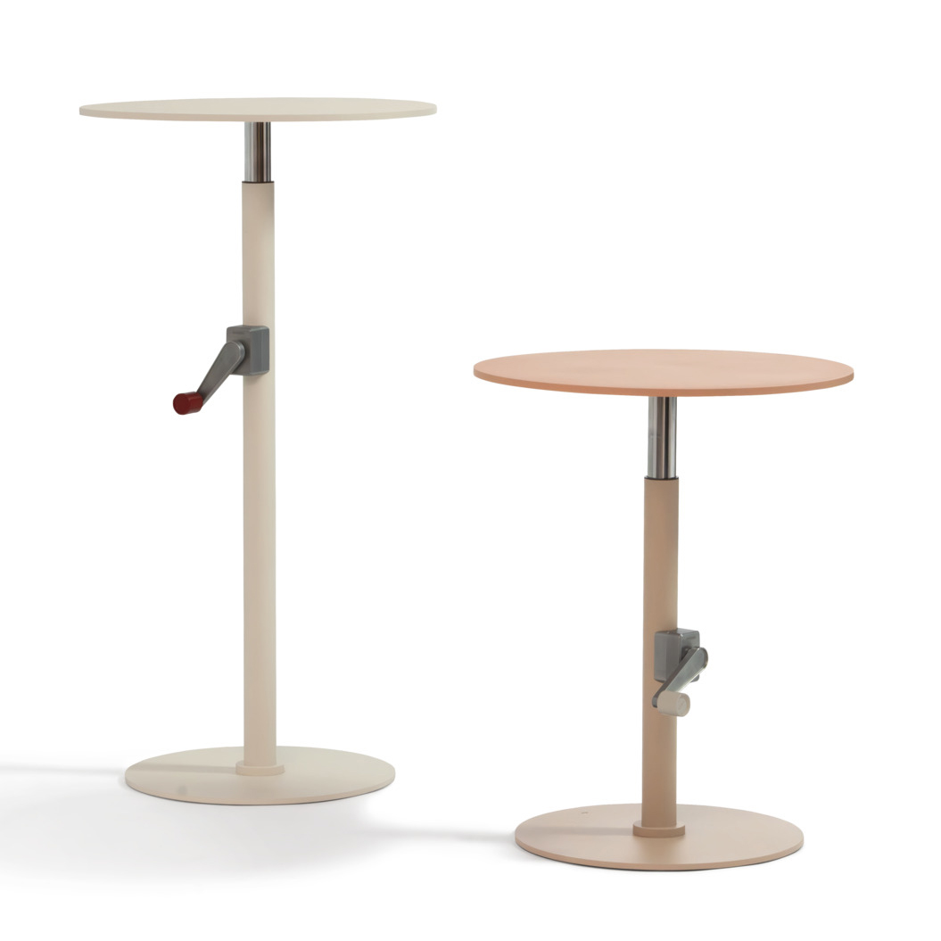 Det svenske møbelmerket Blå Station har laget et bord i samarbeid med designerne Stefan Borselius og Thomas Bernstrand, som har en justerbar høyde som kan endres ved å sveive håndtaket manuelt.