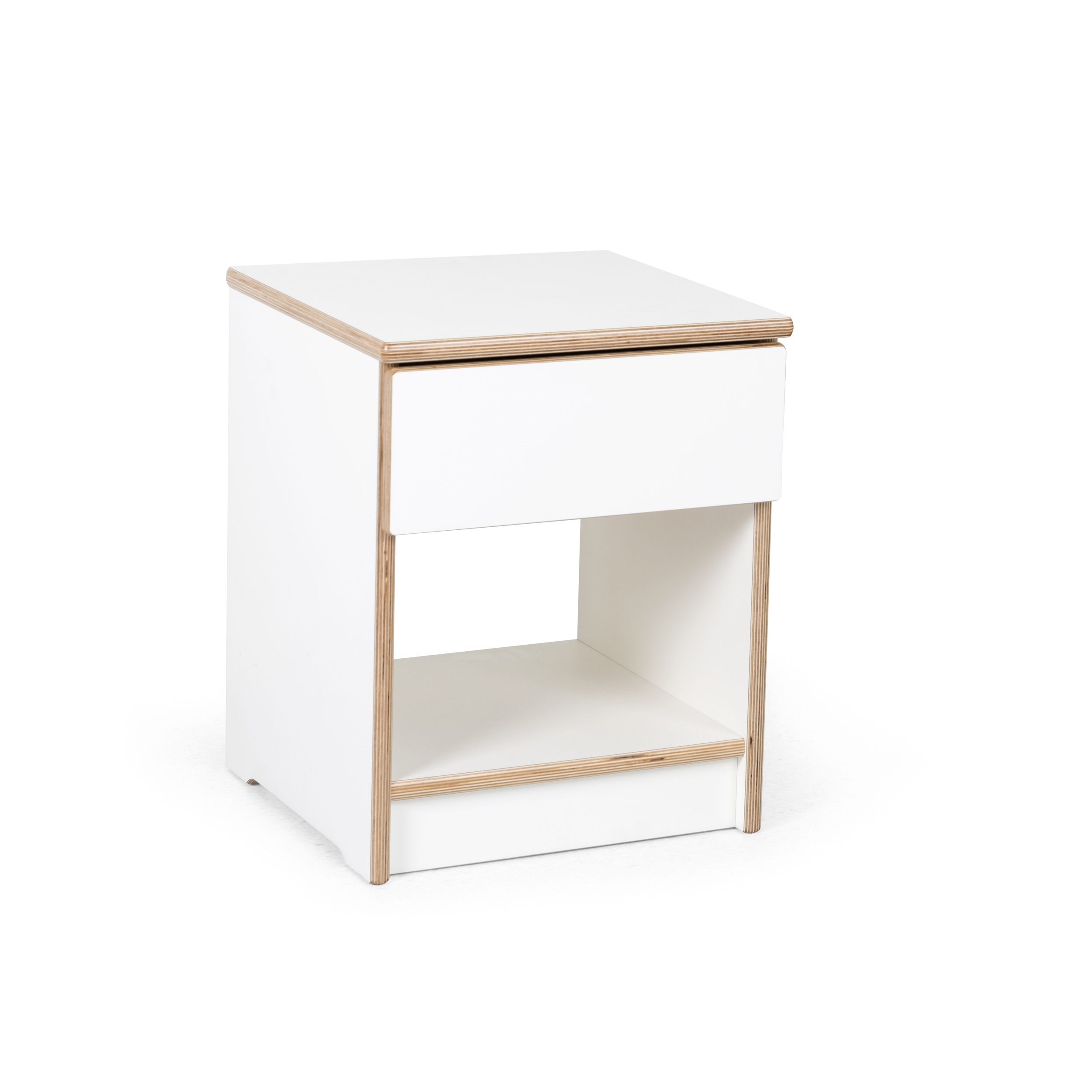 HM265 nattbord leveres med høytrykkslaminat på kryssfinér. Standard laminatfarger er hvit Fibo 111, eik Fibo 417ST, bjørk K7024UN, lys grå Fibo 4063 og nocturne wood (F5373). Andre laminatfarger fås på forespørsel.