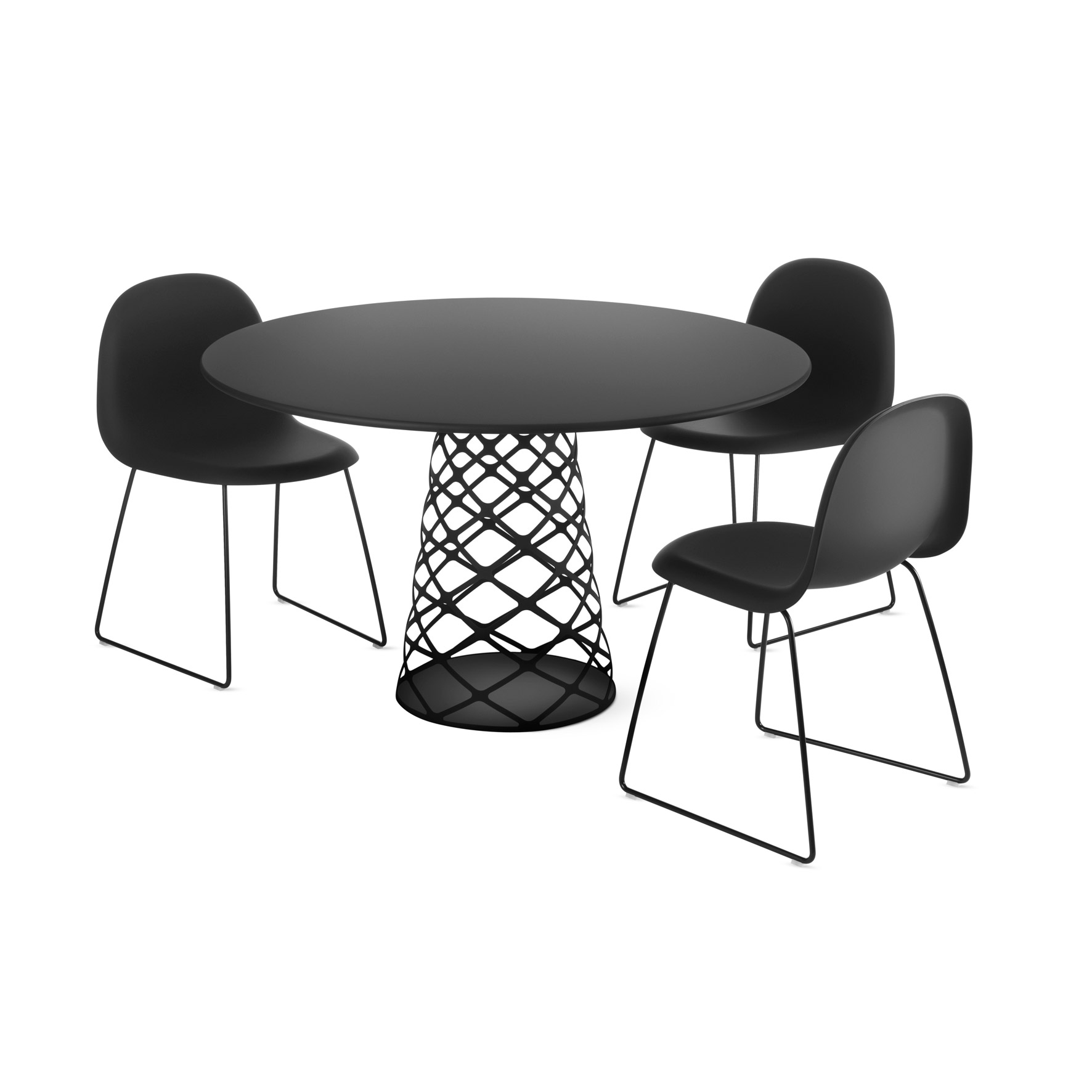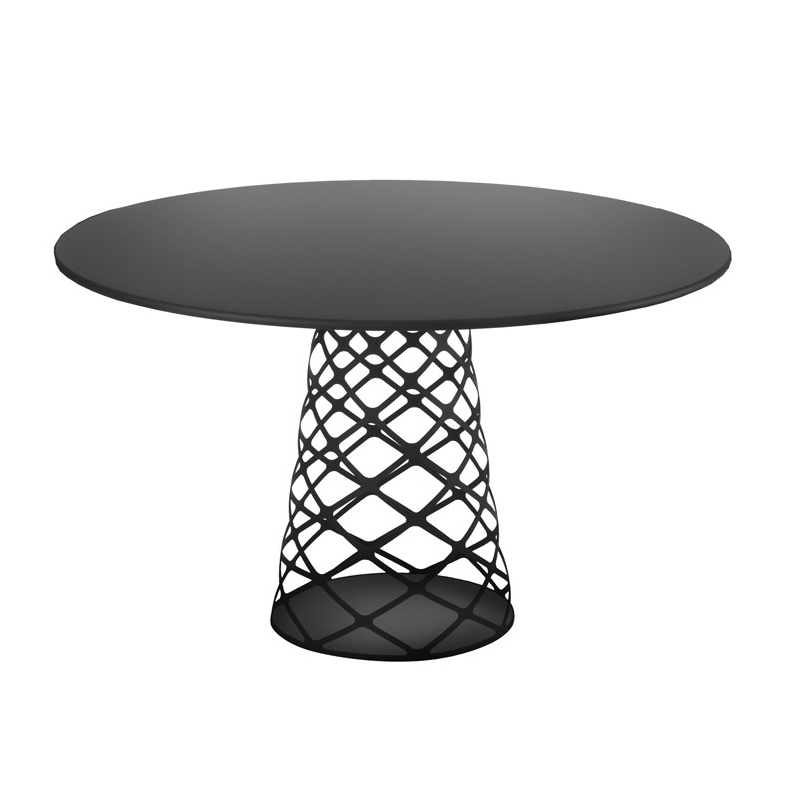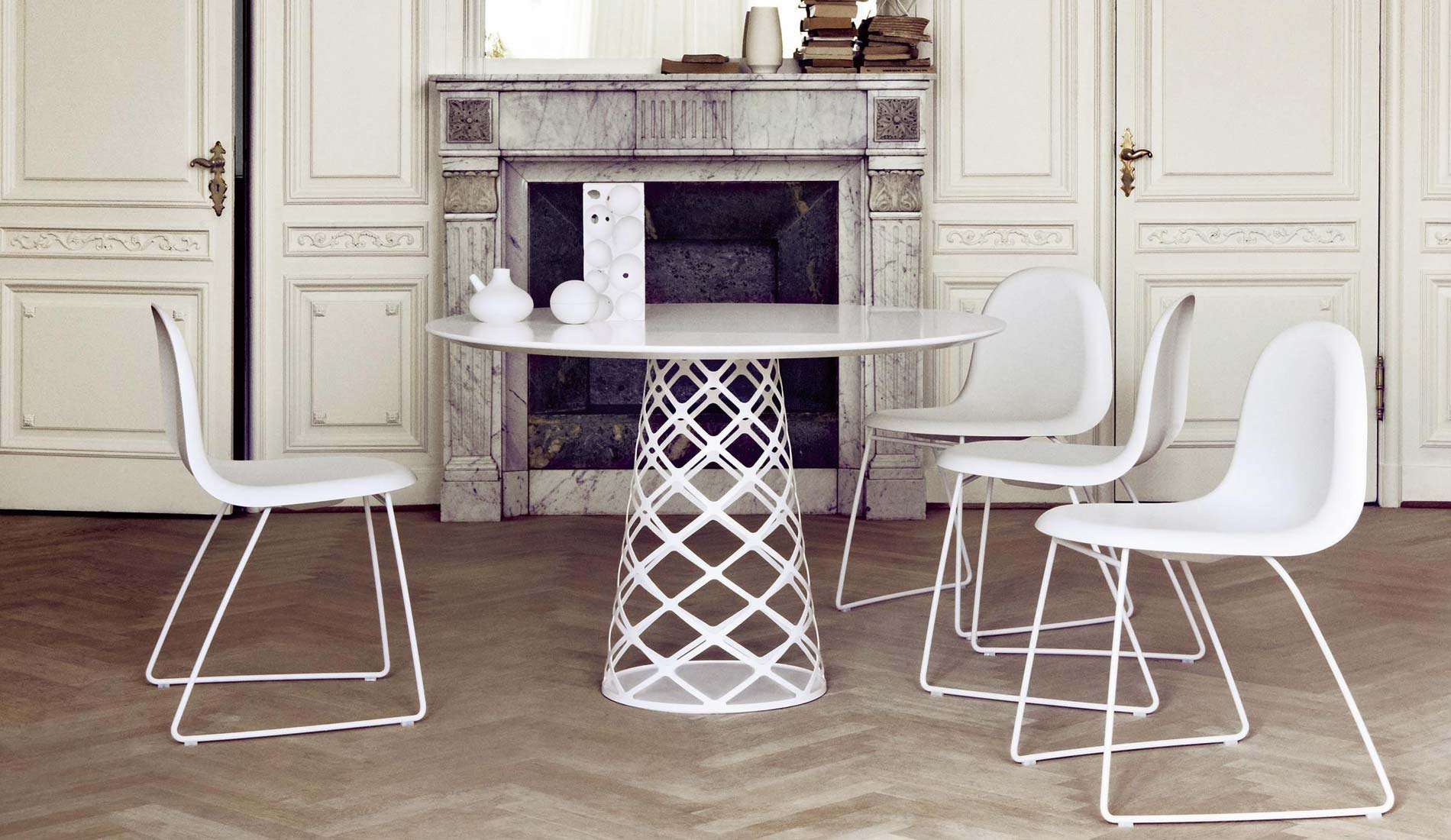 Aoyama bordet er inspireret er et kvarter i Tokyo, som er kjent for sine motehus, restauranter- Aoyama bordet bestårnesten transparante søyler i laserskåret stål, som gir bordet en visuell letthet.