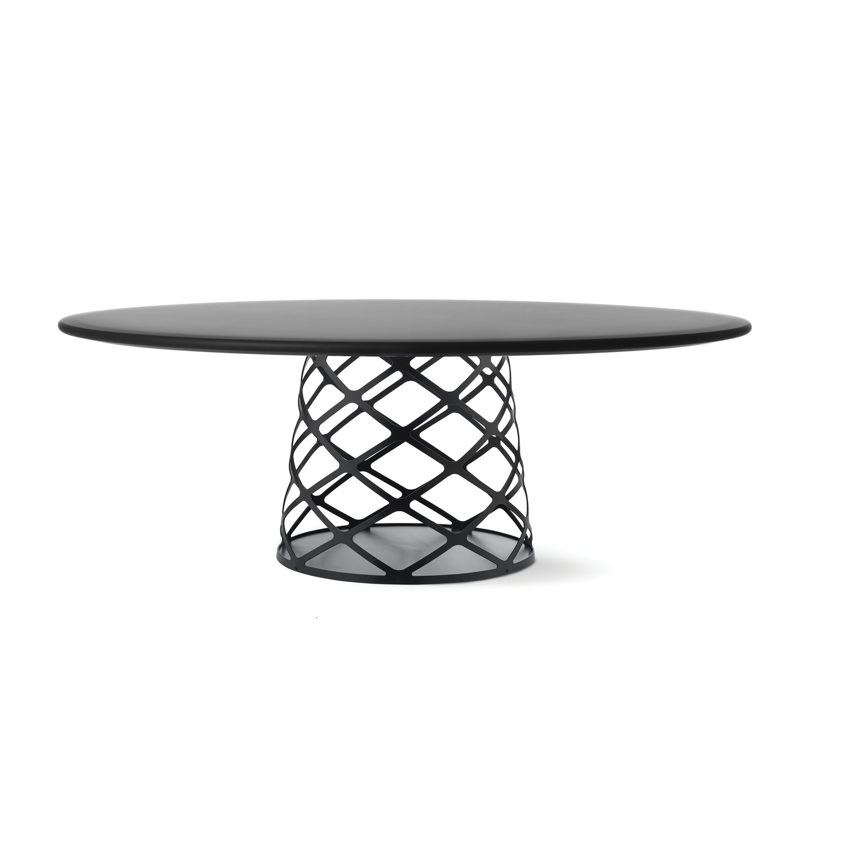 Aoyama bordet er inspireret er et kvarter i Tokyo, som er kjent for sine motehus, restauranter- Aoyama bordet bestårnesten transparante søyler i laserskåret stål, som gir bordet en visuell letthet.