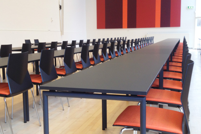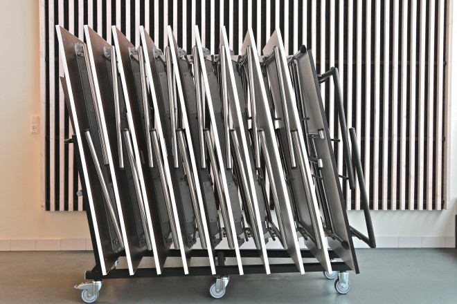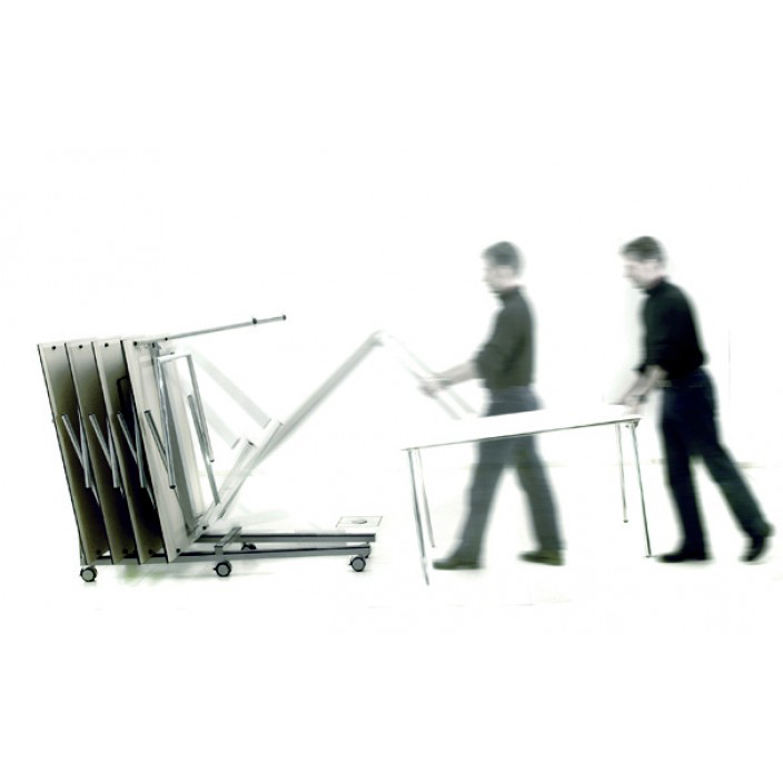 Four Design bordene er et åpenbart valg hvis man ønsker et sammenleggbare bord med et funksjonelt og estetisk design. Bordet kan lett legges sammen av en person, og to integrerte trinser lar deg håndtere bordet uten anstrengelse. Bordet fås i mange størrelser og utførelser. Four-bordene er designet av de prisbelønte designere Christina Strand & Niels Hvass. Kan også leveres iht. NORSOK-standard. Ta kontakt for mer informasjon.