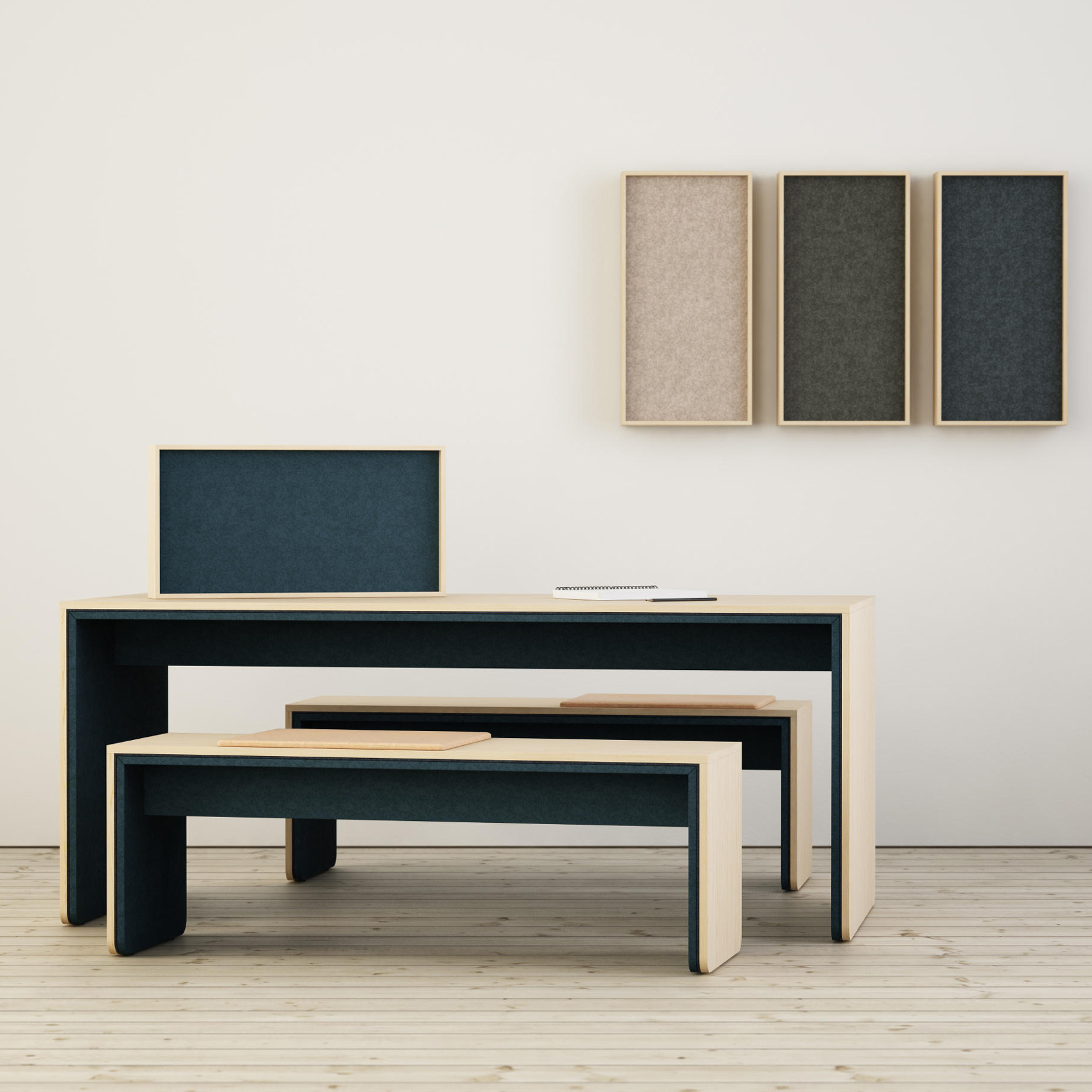 Limbus Campus OnTable frittstående bordskjerm kan stillas fritt på et bord. Rammen i massiv hvitbeist ask og gir en fin kvalitetsfølelse samtidig som skjermen ikke krever noen ytterligere støtte. Bordskjermen forvandles til en veggabsorbent da den oppbevares hengende på veggen. Med ulike tekstilvalg får man et kunstverk som kan endres hele tiden.