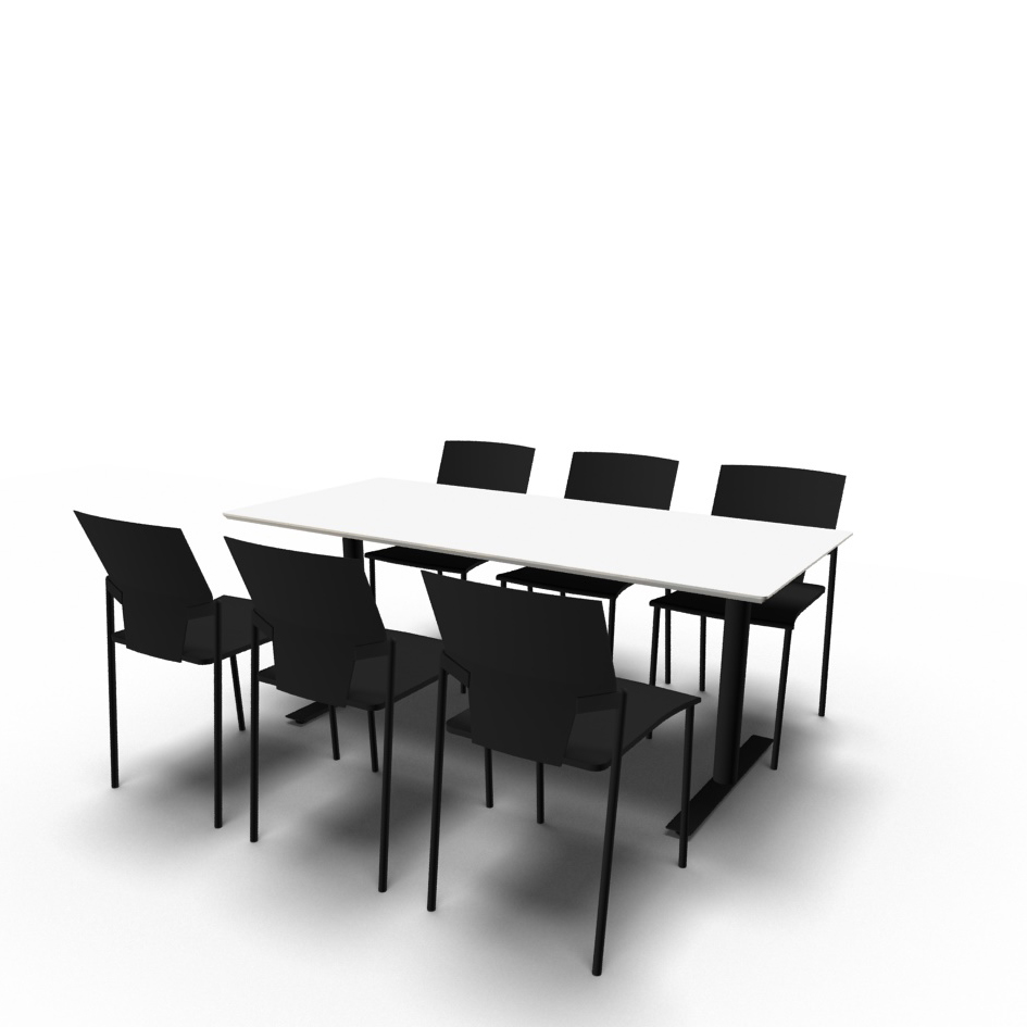 InLine kantinebord fra Fumac finnes i en rekke størrelser og former som standard. Bordet kjennetegnes av runde søyler og en slank, rektangulær fot som kompletterer et stilrene og elegante designet. InLine har fast høyde 72 cm inkludert bordplate, men kan også leveres med elektrisk hev/senk understell om ønskelig. Velg mellom bordplater i 22 mm finér, direktelaminat, laminat, linoleum og nanolaminat. Understellet leveres standard i hvit, sort, krom, alu eller mix utførelse.