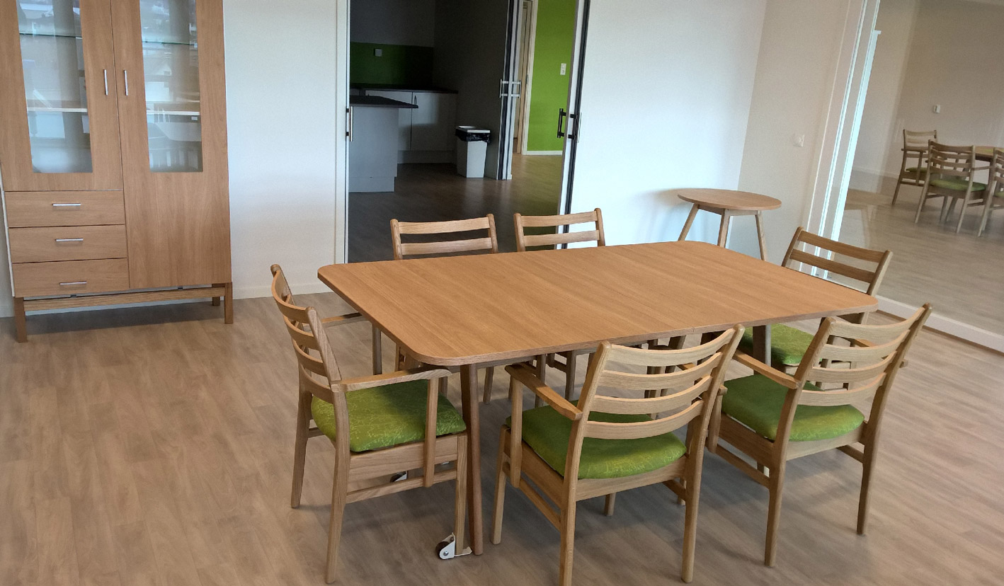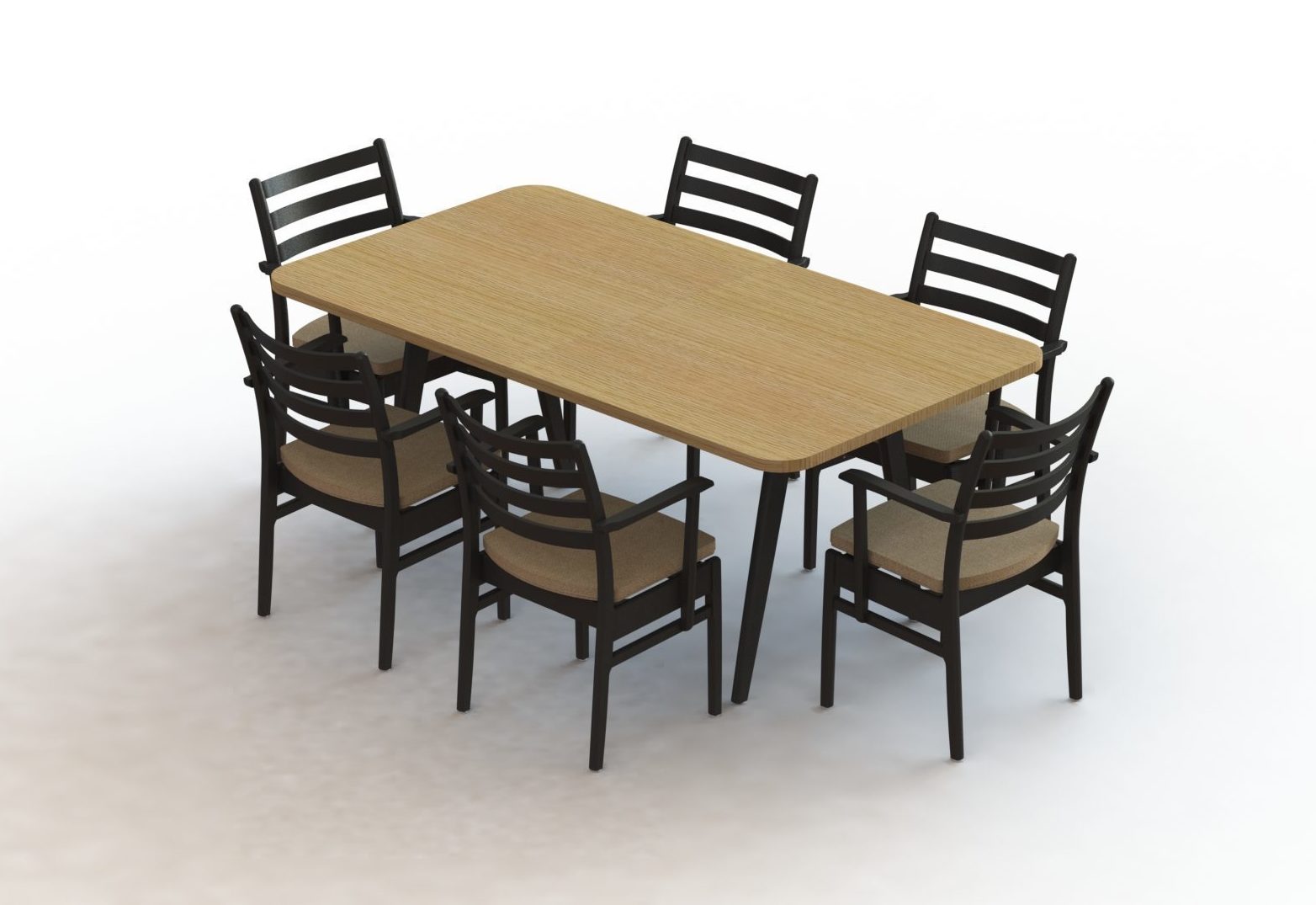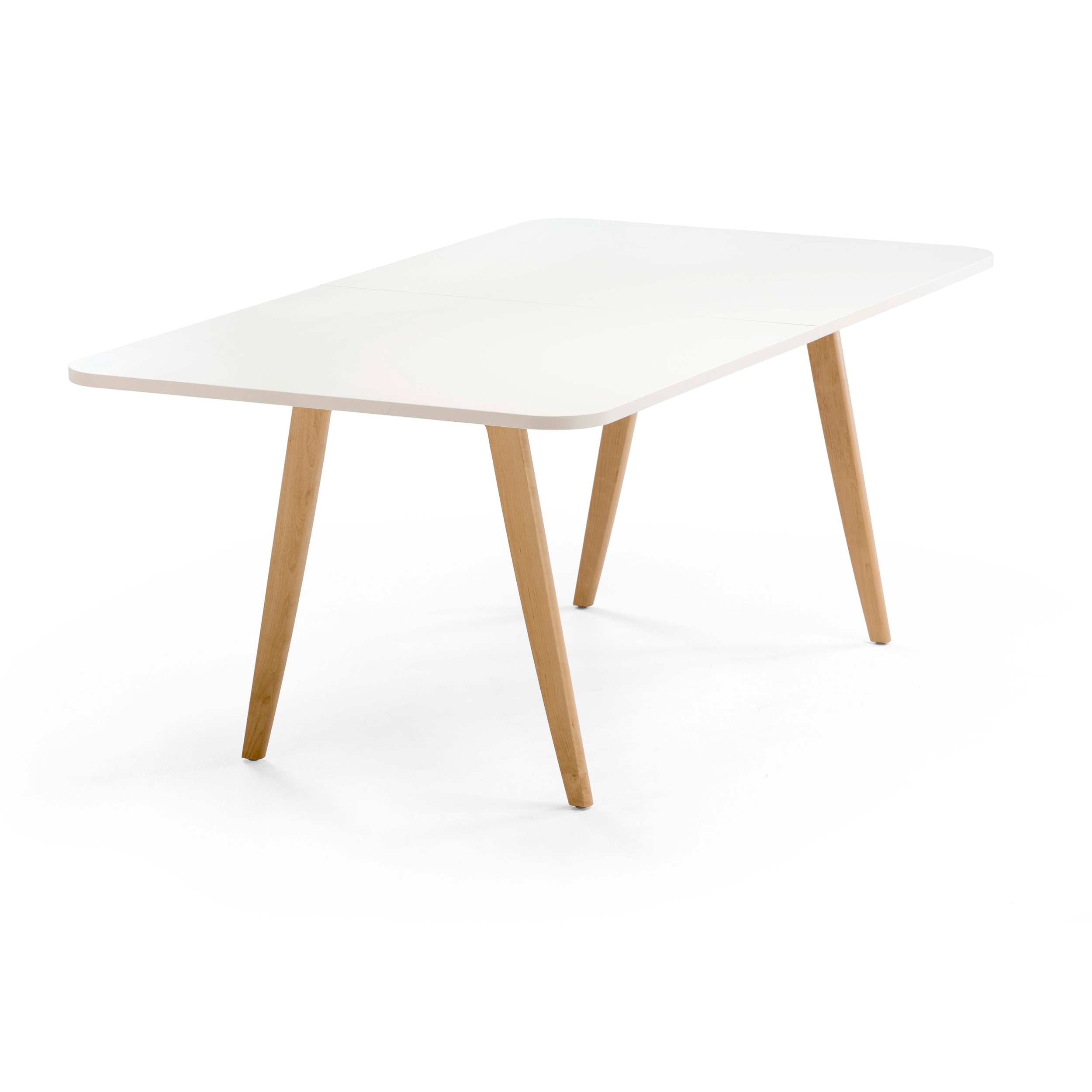 Pan spisebord leveres i bjørk og eik i Hellands standard høytrykkslaminater med tilpasset kantlist. Andre laminater på forespørsel. 180x100cm tilbys også i heltre bjørk.