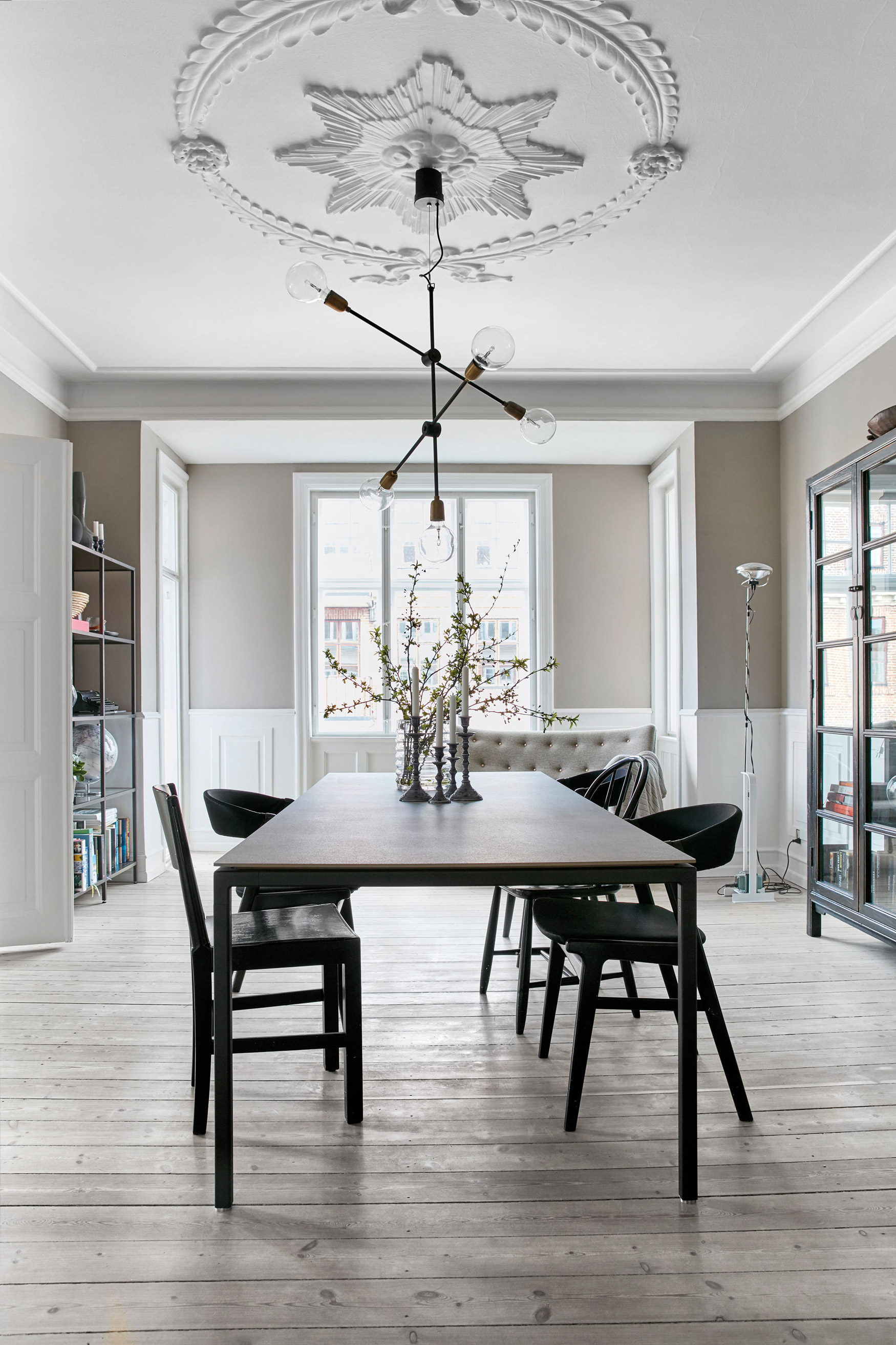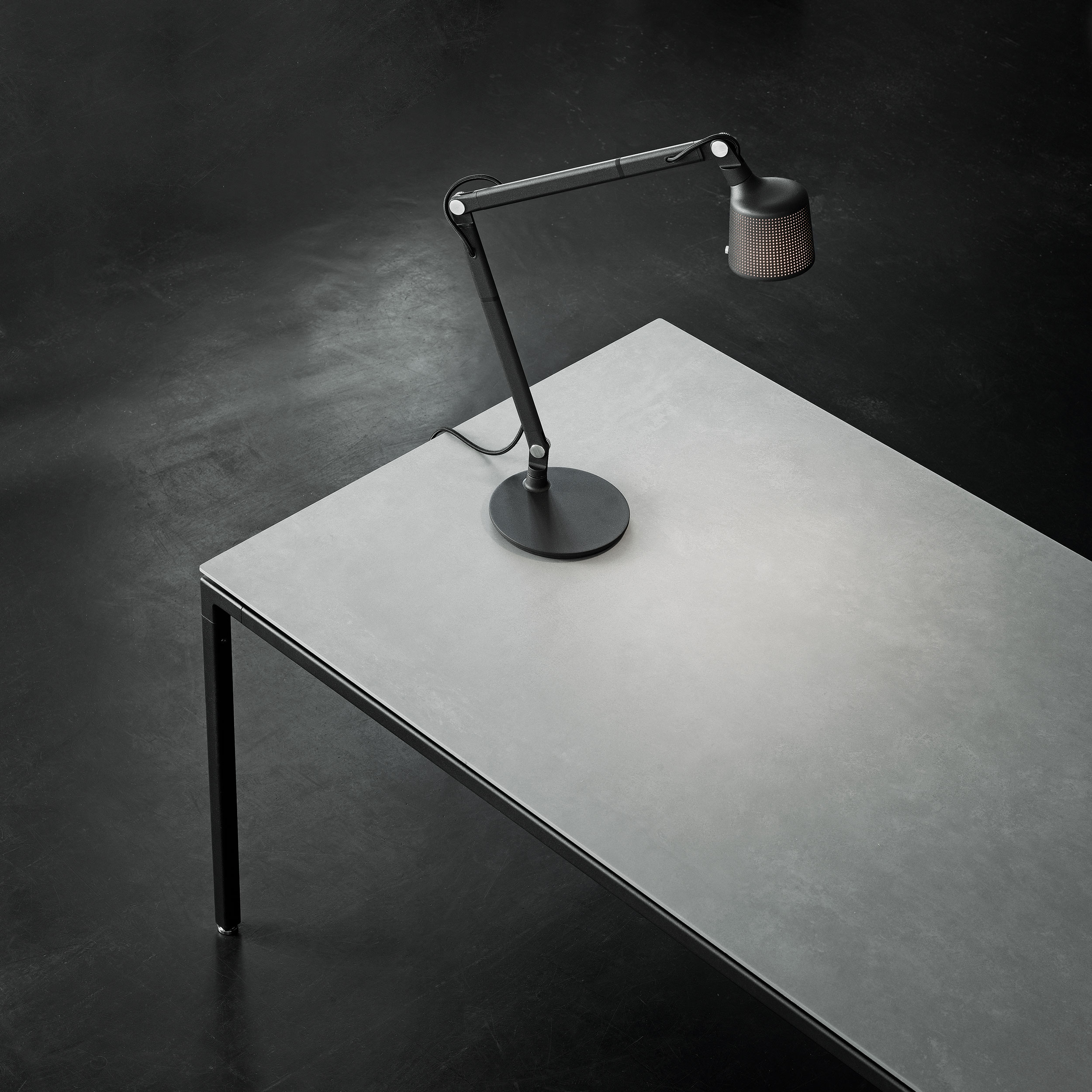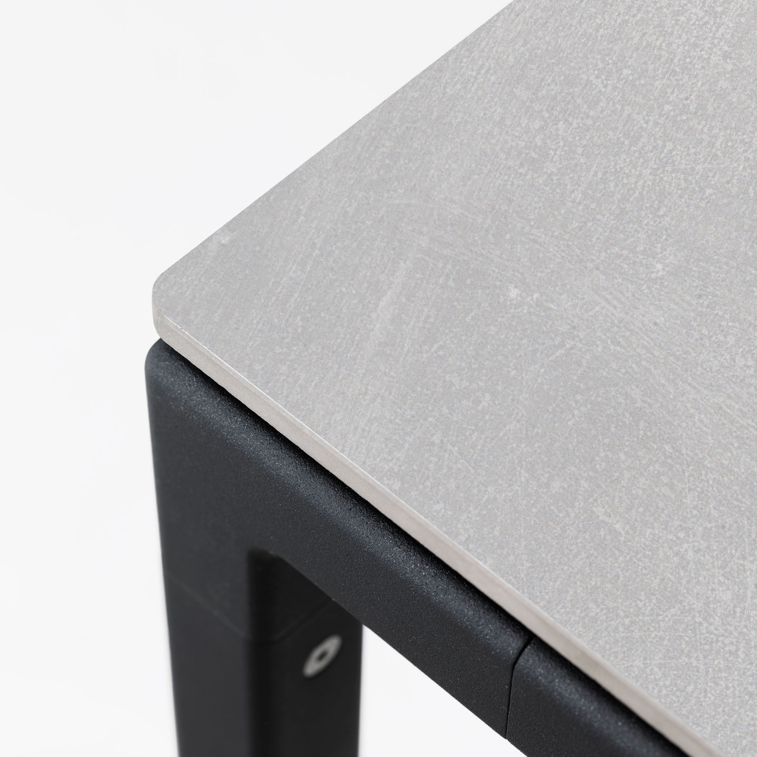 Vipp spisebord er et stort bord for spisestuen eller kjøkkenet. Bordet er tilgjengelig i 2 ulike lengder og er svært bestandig. Det er utstyrt med en keramisk bordplate som motvirker flekker og slitasje fra hverdagsbruk. Rammen på stålbordet henter inspirasjon fra Vipp-kjøkkenet og bærer bordplaten på en elegant måte, og sammen med de myke, avrundede hjørnene skapes det et lett uttrykk til de robuste komponentene. Ramme med hjørner i støpt aluminium og stålprofiler. Et sett skruer i rustfritt stål gjør det mulig å justere høyden på bordet med 2 cm.