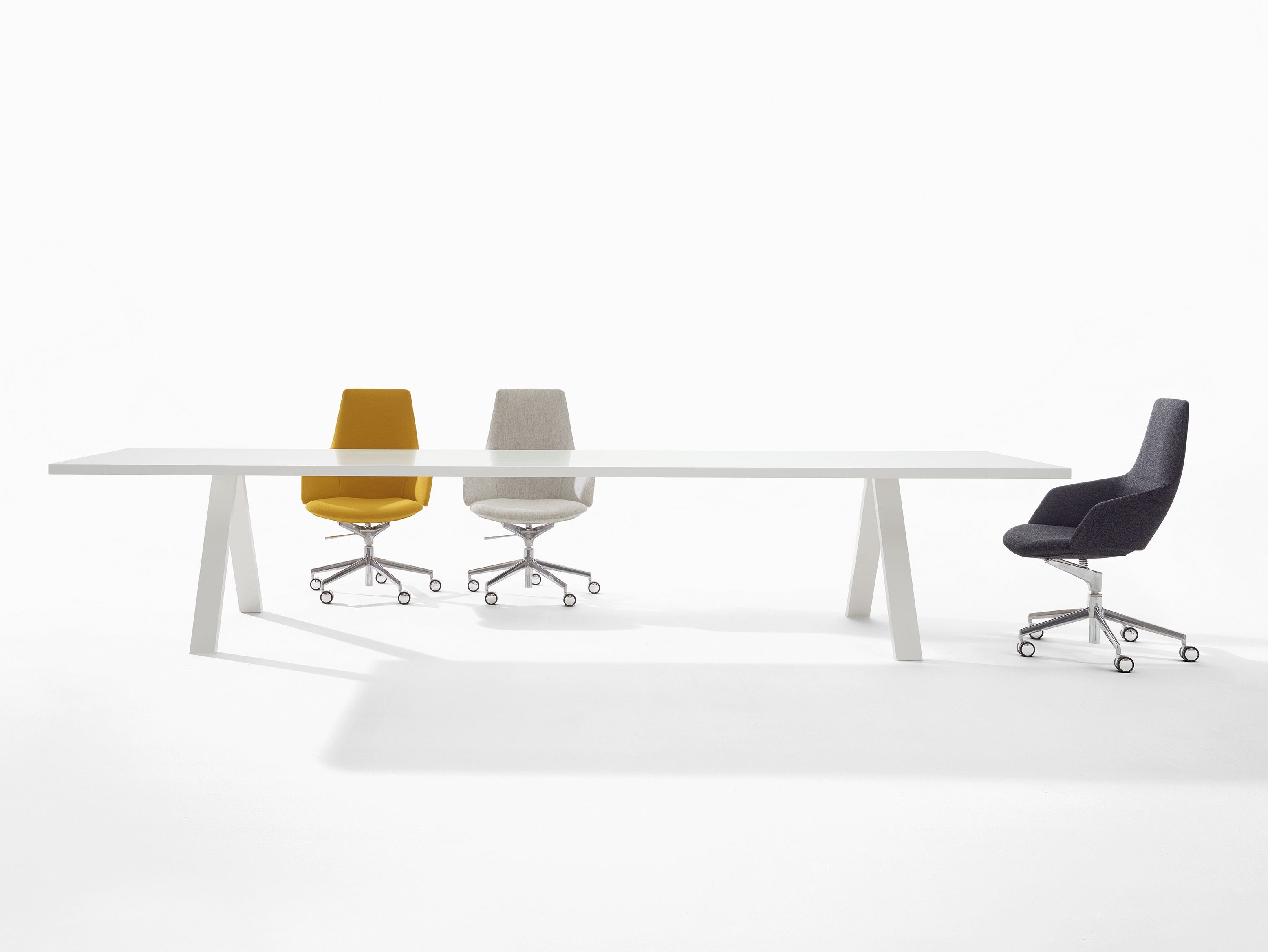 Tilpasningsdyktig, åpen og sjenerøs, er Cross serien like egnet for styrerommene , boligarealer eller for samarbeidsmiljøer. Takket være valgfrie konfigurasjons ordninger kan det tjene som en midlertidig møteplass for gruppesamlinger eller en felles arbeidsplass med plass nok til å dele. Seriens betydelige lengde, både minimal og arkitektonisk, har en solid struktur med god plass. Et sentralt utløp lar datamaskiner og annen elektronikk enkelt koble til strøm. Cross tilbyr en fleksibel og støttende arbeidsplass med slank, fullbyrde stil. Cross bordene er tilgjengelig i mange forskjellige konfigurasjoner for hjemmet eller kontoret. Cross har utvidet sin serie til å omfatte tre utførelser, finert eik, finert wenge og hvit lakkert stål og aluminium. Designet av Fattorini+Rizzini+Partners, 2014.