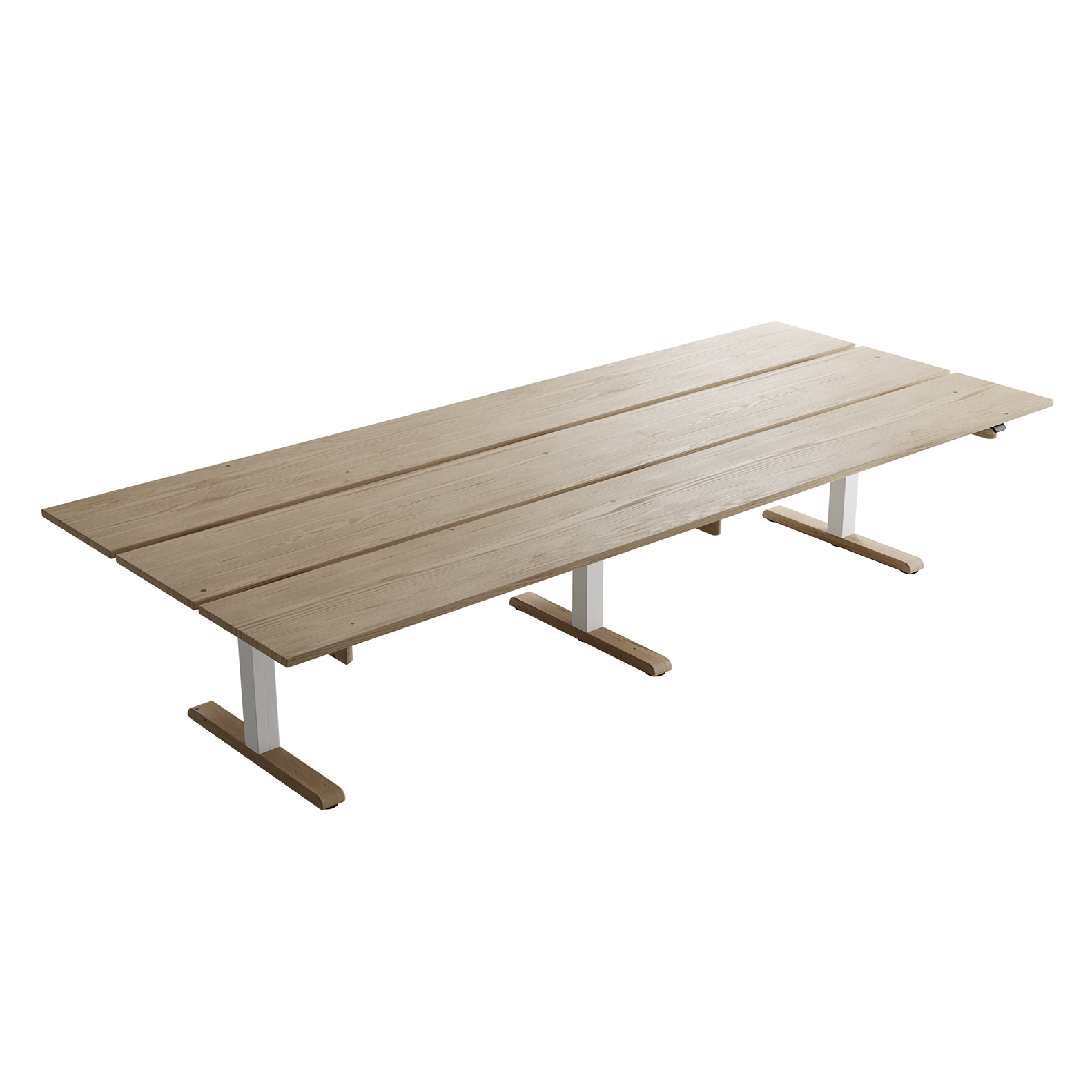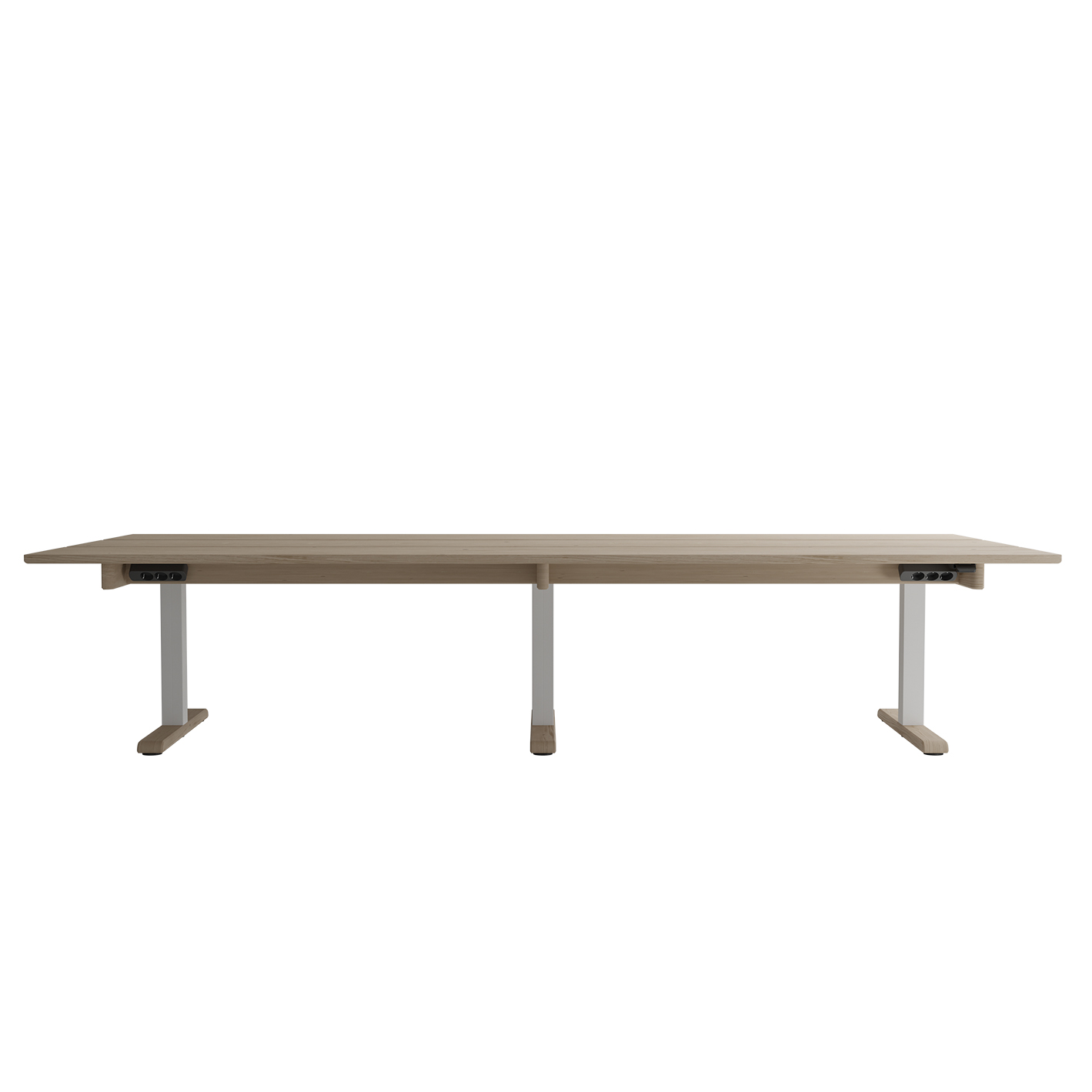 Skaper et harmonisk og enhetlig miljø hvor arbeidsstasjoner og møtebord forenes i samme formspråk.