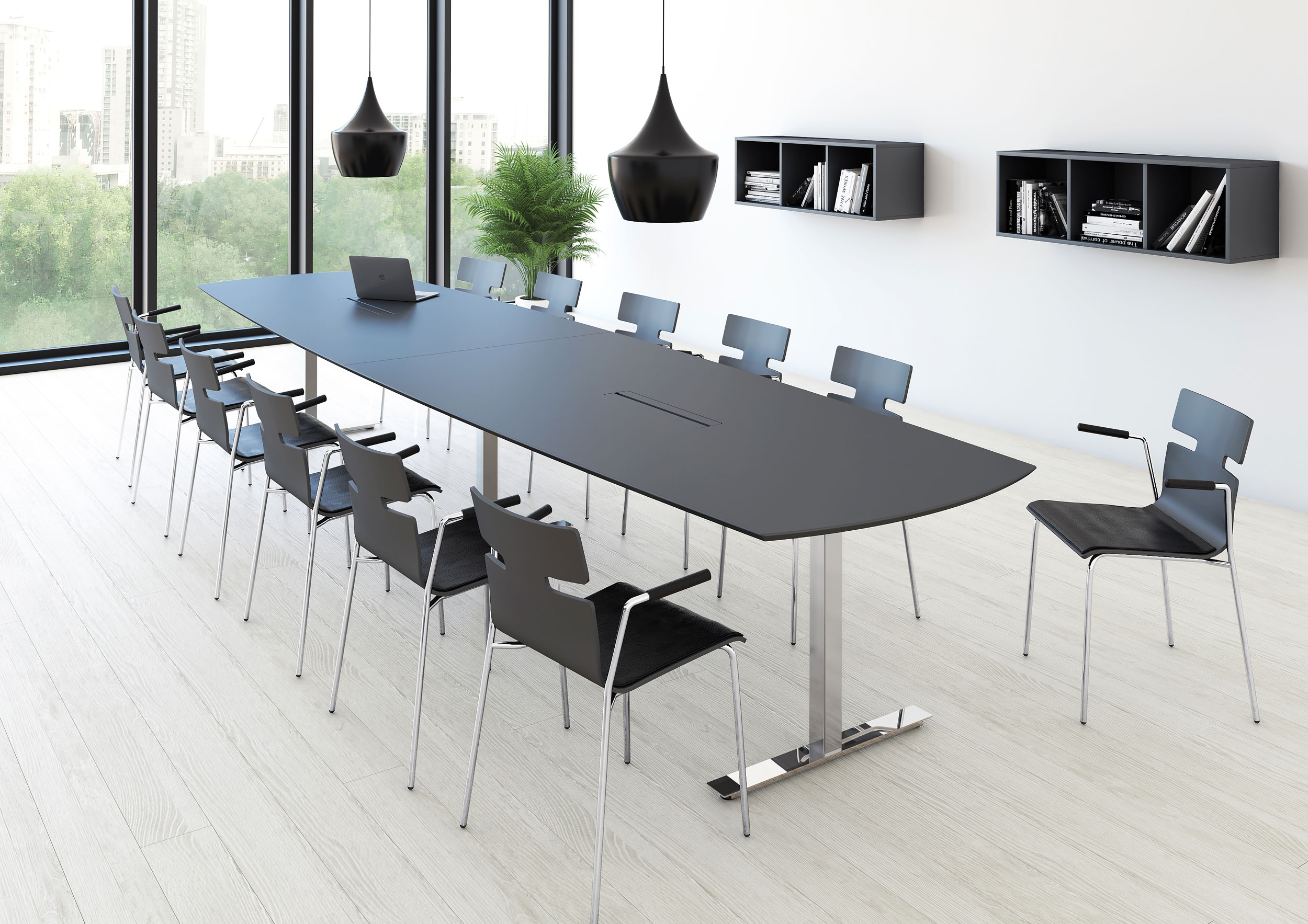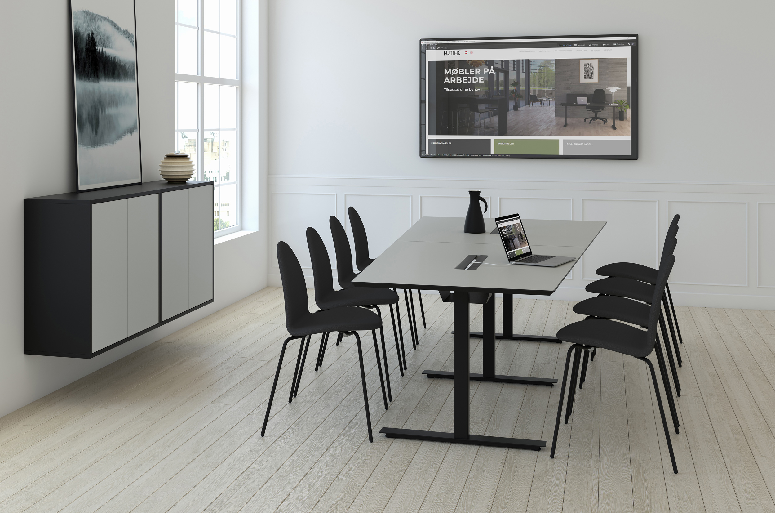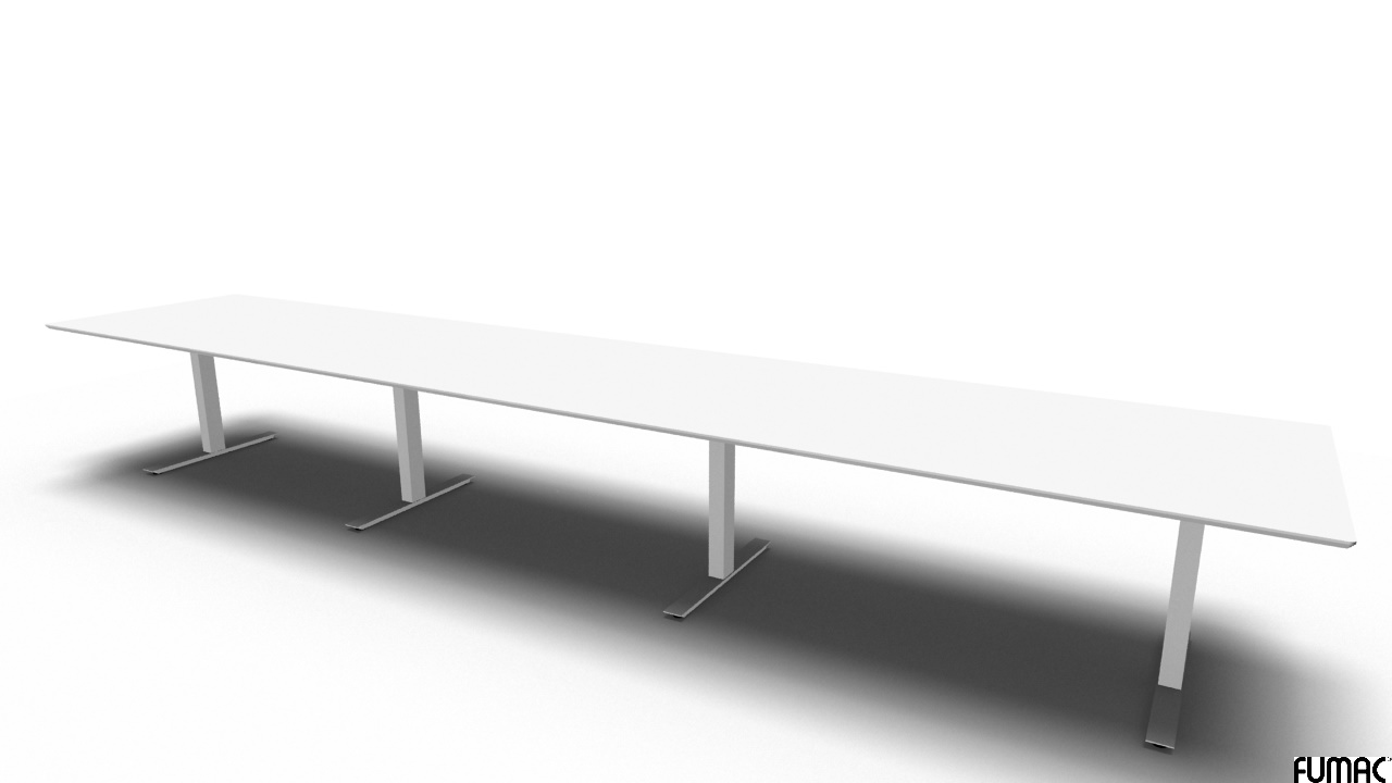 Square møte- og konferansebord fra Fumac finnes i en rekke størrelser og former som standard. Bordet kjennetegnes av kvadratiske søyler og en slank, rektangulær fot som kompletterer et stilrene og elegante designet. Square har fast høyde 72 cm inkludert bordplate, men kan også leveres med elektrisk hev/senk understell om ønskelig. Velg mellom bordplater i 22 mm finér, direktelaminat, laminat, linoleum og nanolaminat. Understellet leveres standard i hvit, sort, krom, alu eller mix utførelse. Kan fås med tilbehør som dobbeltsidig kabelluke og kabelluke og kabelrenne.