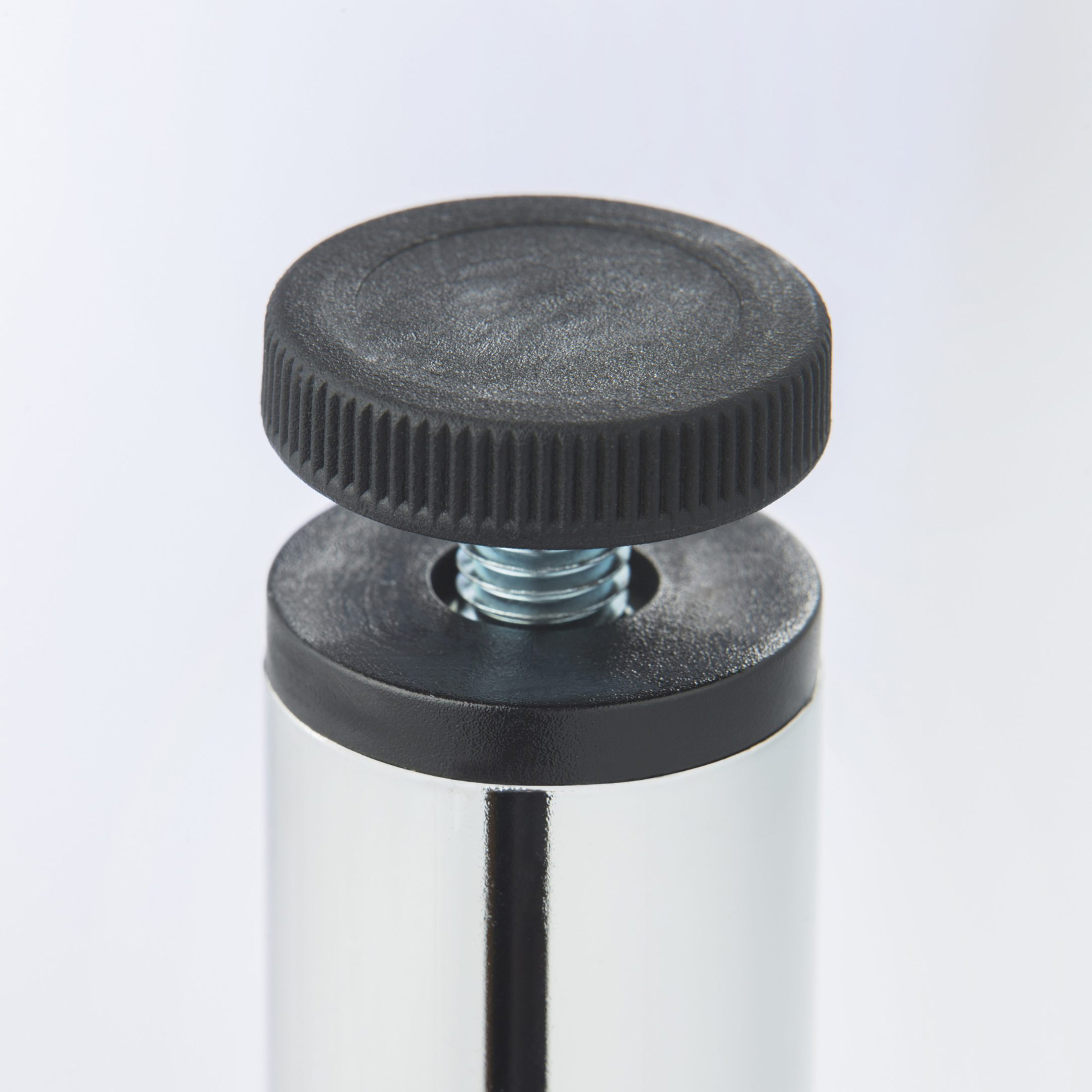 – Integrerte hjul på 2 av bena og justerbare stilleknotter på de andre to bena med tilpassede glideknotter.