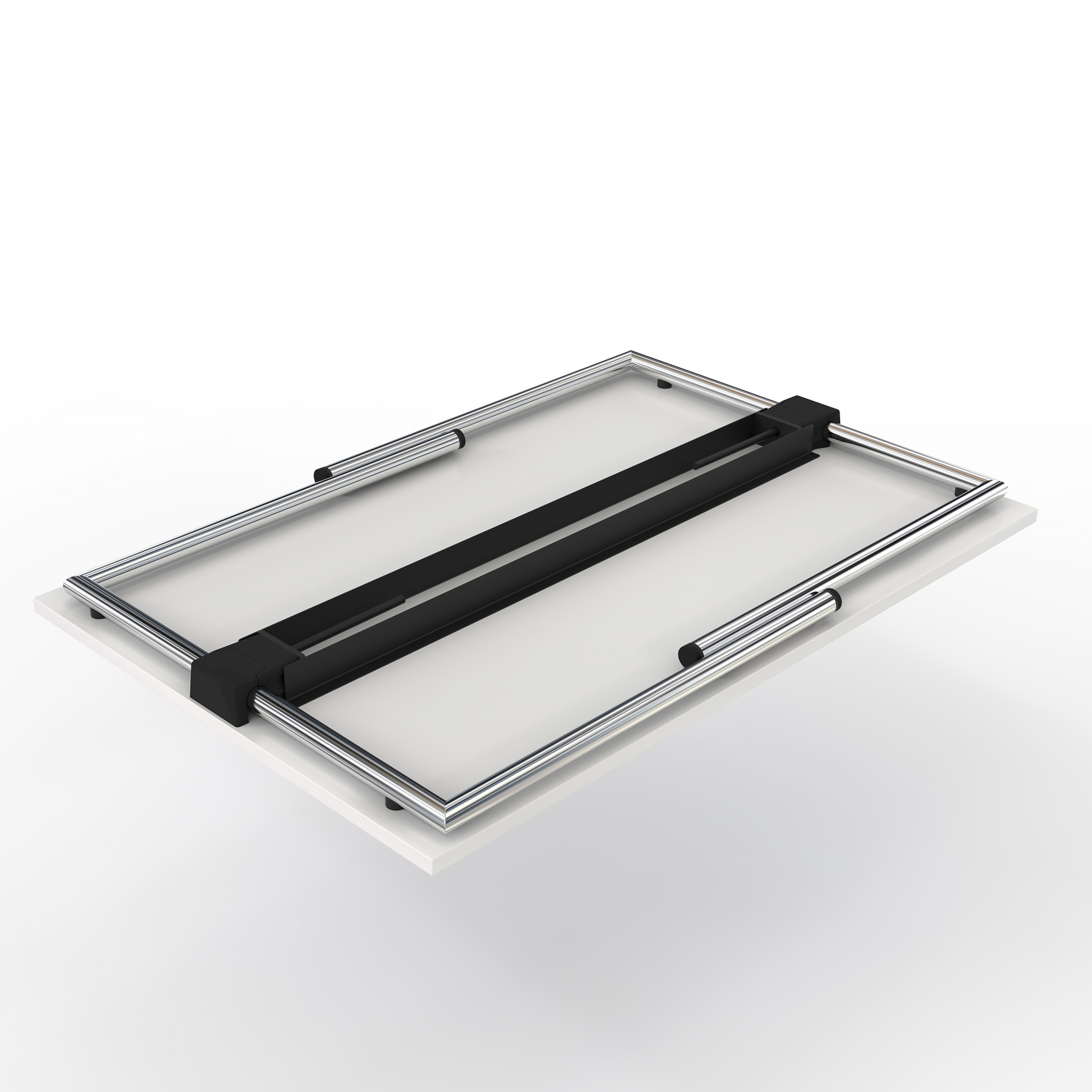 – Ben i hvert hjørne med aluminiumsarg og utløserstang for enkel sammenlegging uten å måtte løfte bordet.