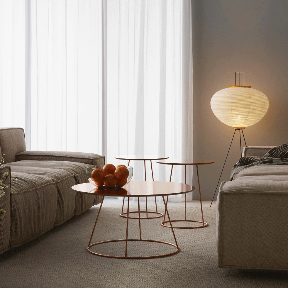 Bordet finnes i to forskjellige størrelser der det minste fungerer som sidebord og det større som sofabord.