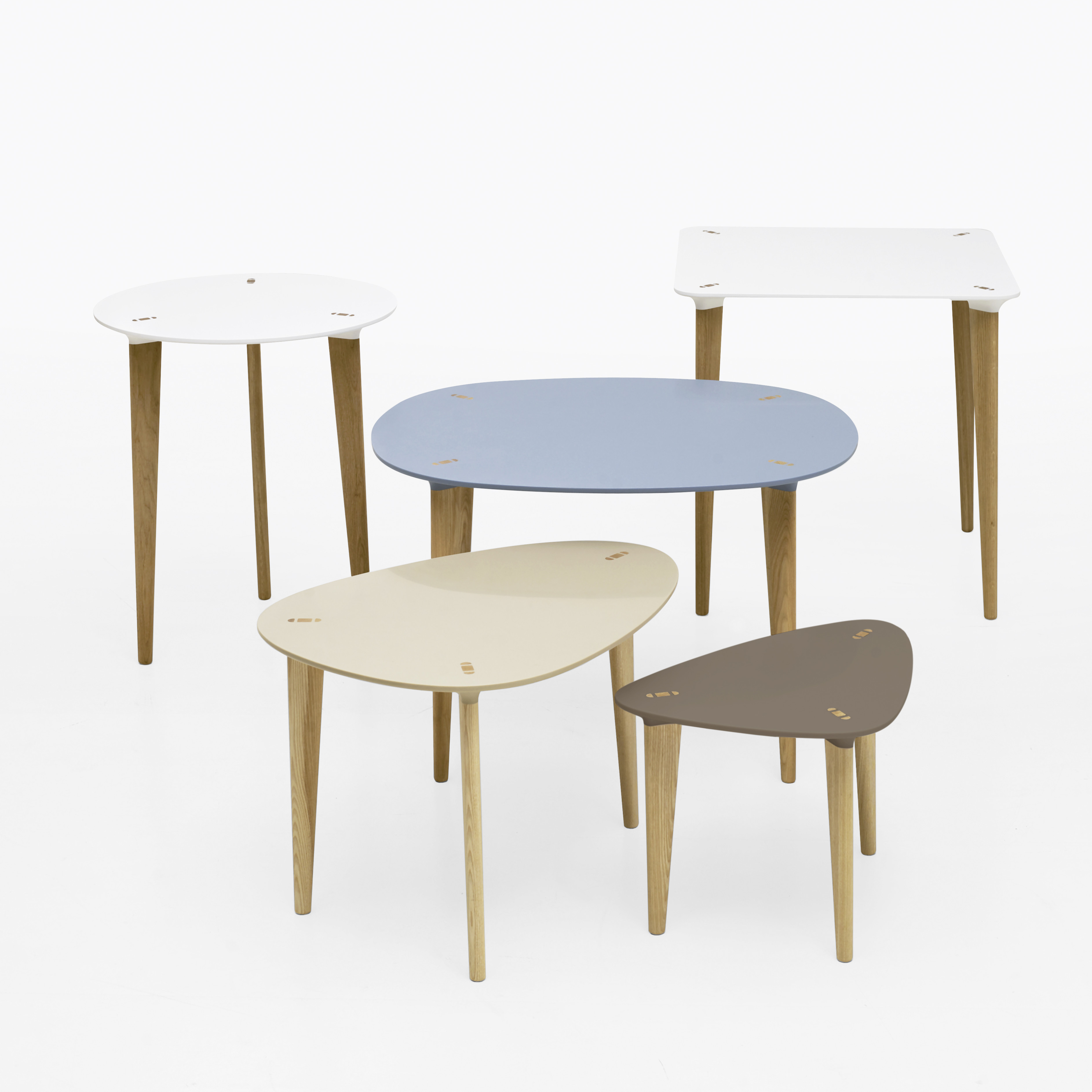 Buff (2012) plate i HIMACS® og ben i massivt tre. HIMACS er et holdbart steinaktig materiale. For riper kan man polere overflaten med polerende rengjøringsmidler eller ved å gni en Scotch Brite i sirkulære bevegelser over hele området. Plater på Buff er tilgjengelig i Alpine White, Nougat Cream, Babylon Beige, Toffee Brown og Sky Blue og ben i solid oljet ask, bjørk, eik eller valnøtt. Høyder på 400, 500, 600 og 720 mm og i en rekke panelstørrelser. Møblere med Buff hvor møblene skal tåle slitasje, men samtidig få en følelse av tre.