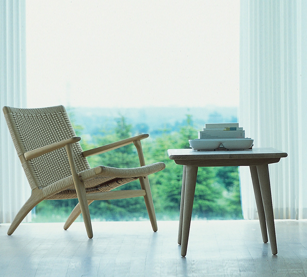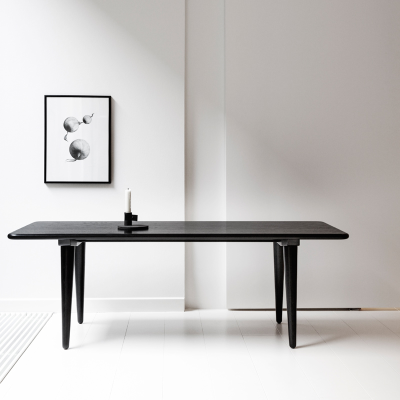 Stilrent, pent og stabilt bord, som uttrykker letthet. Bordet er av massiv eik. Designet av Hans J. Wegner i 1954. Bordet passer utmerket til lenestoler som CH07, CH445 og CH468.