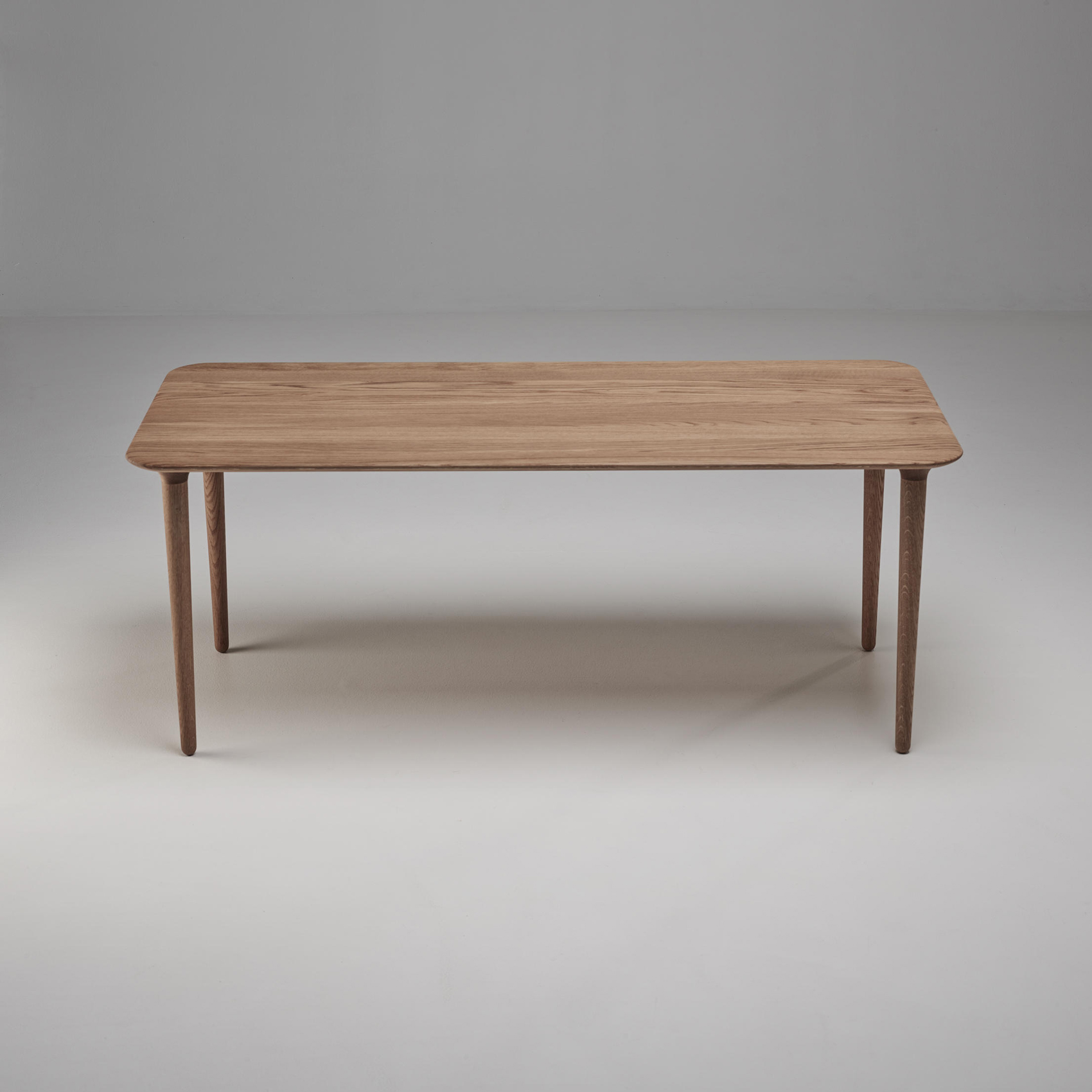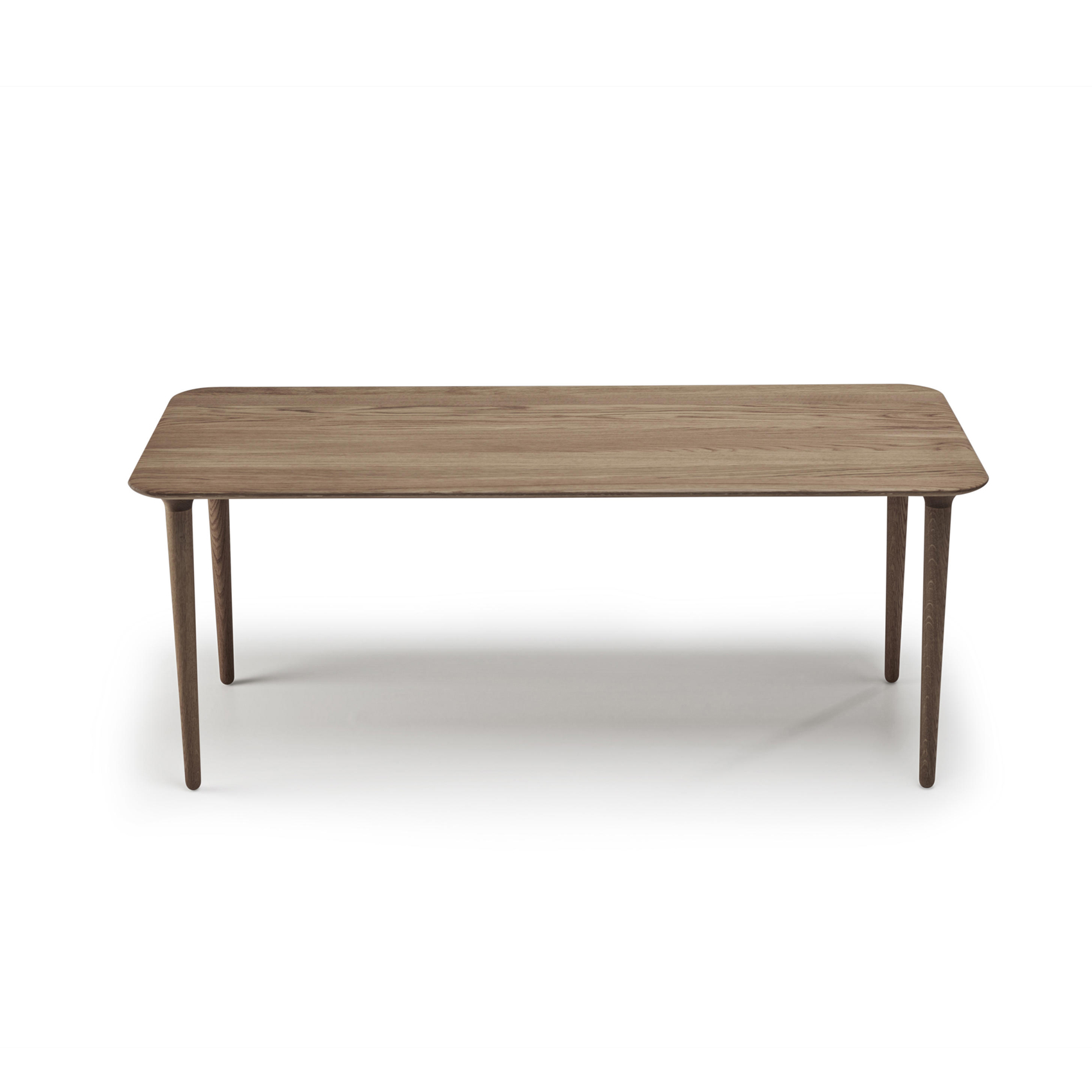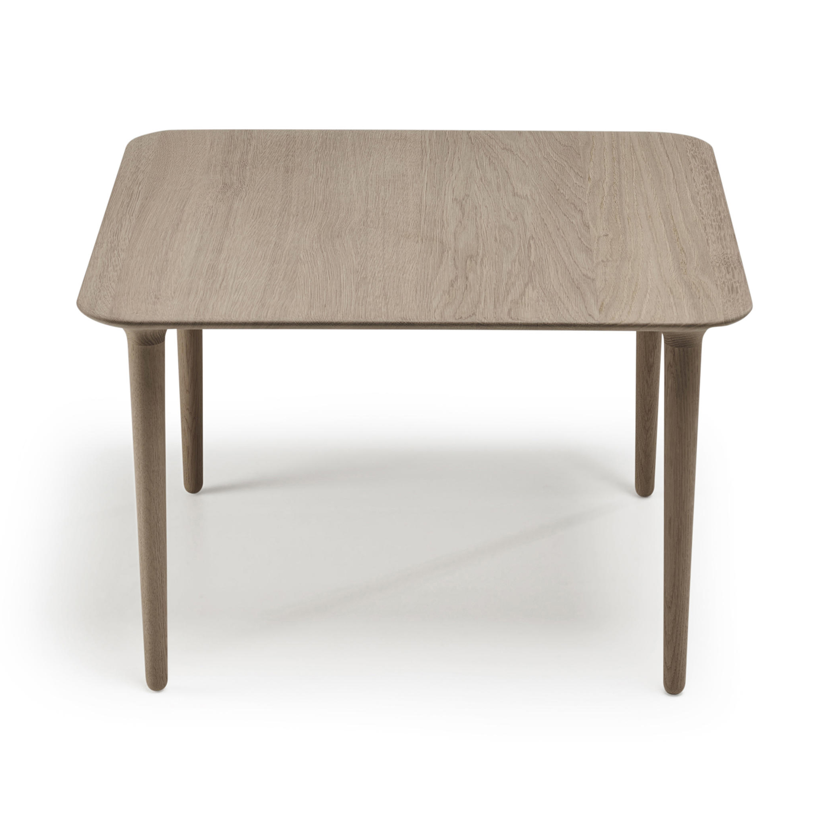 Evja loungebord kommer i eik og valnøtt og kan overflatebehandles: såpebehandlet, hvitoljet eik, oljet eik og oljet valnøtt.