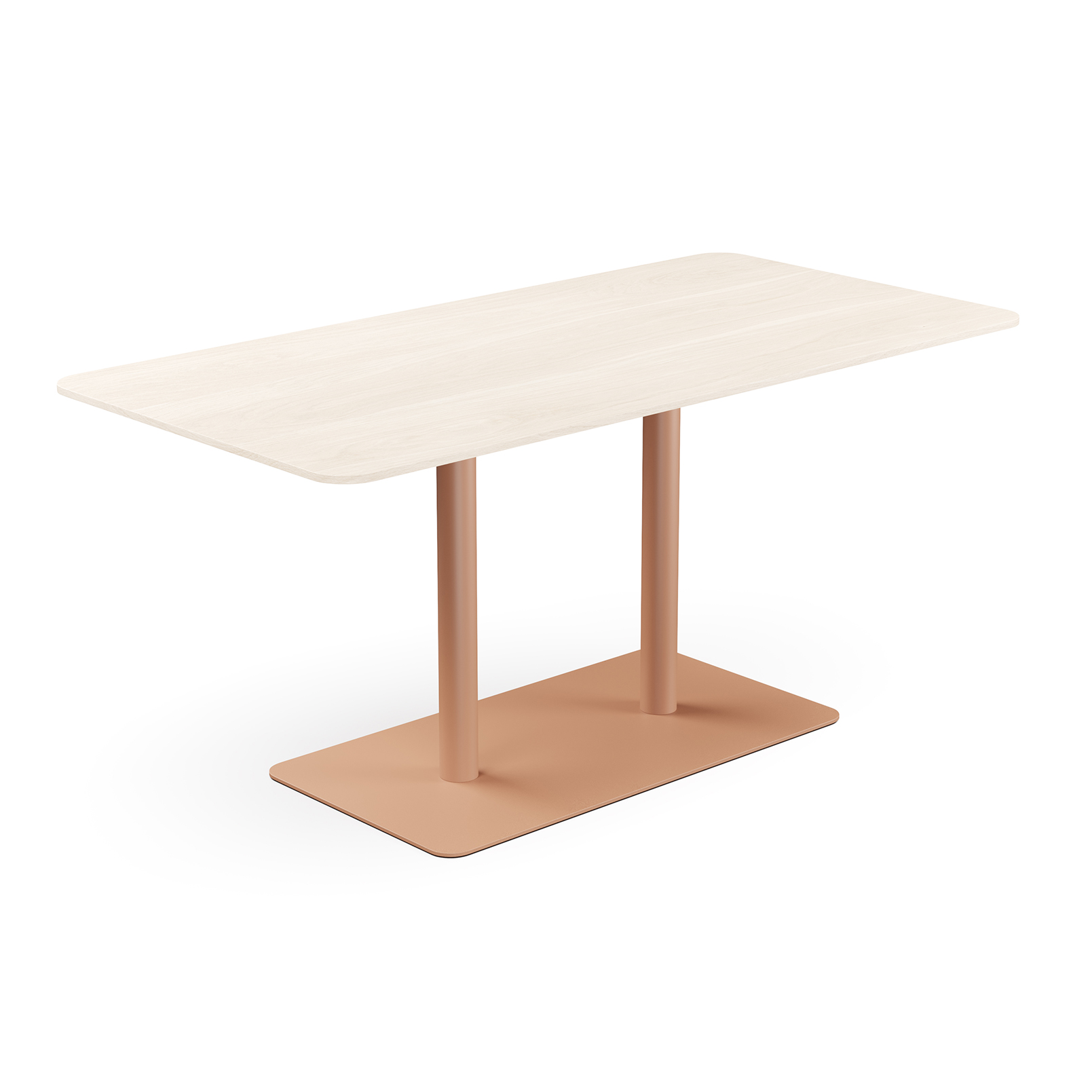 Bordene finnes i flere farger med en 13mm platetopp med naturfinèr (4 farger), naturfarget finèr (5 farger) eller høytrykkslaminat (4 farger) – Understellet fås i 11 lakkfarger.