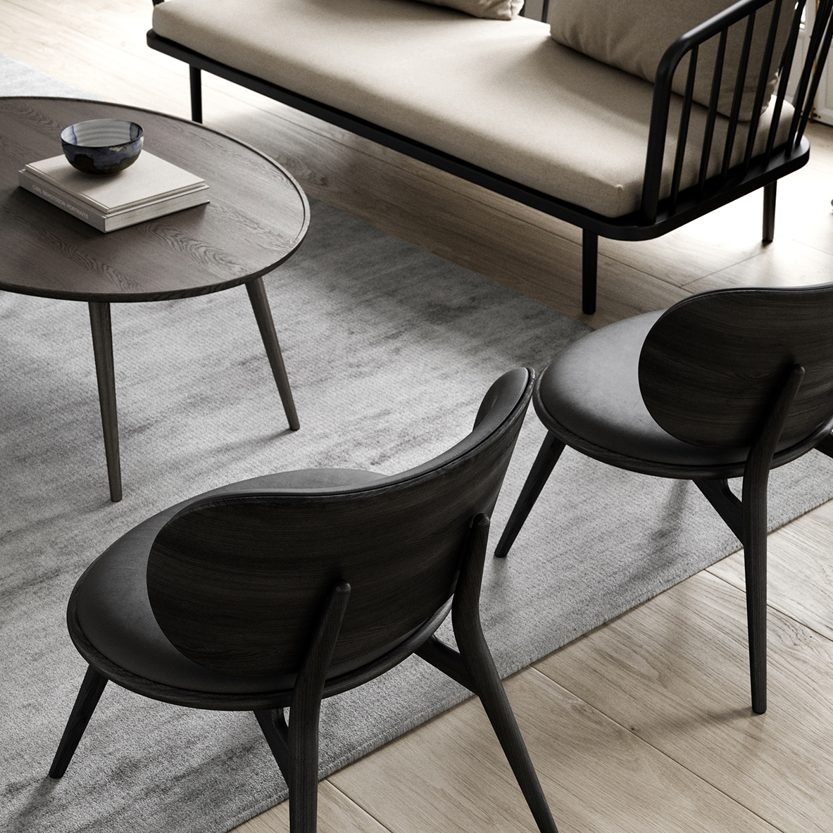 Accent Lounge (ovalt) – 120×80 cm H:42 cm (4 ben) – Matt Laquer / Sirka Grey Stain