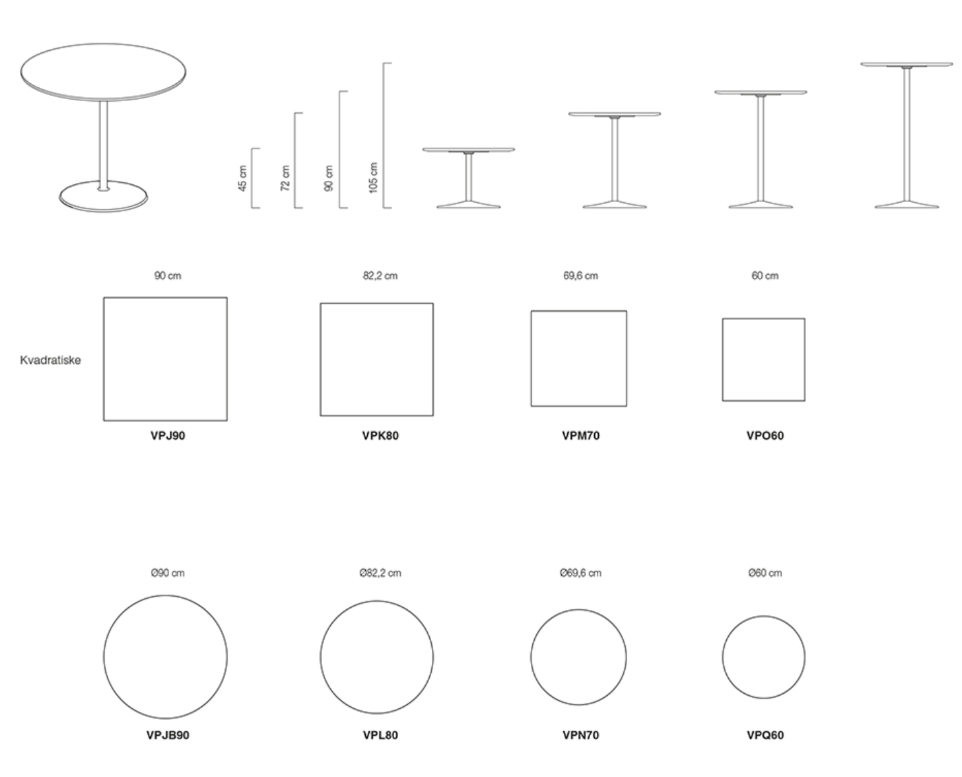 Panton Table, designet av Verner Panton, finnes i 4 høyder og 8 bordstørrelser med et stort utvalg av overflater og farger. Panton Table kan anvendes til mange formål; som spisebord, sofabord, sidebord eller utendørs med overflate i kompaktlaminat. Understellet er i slipt rustfritt stål og fås dessuten pulverlakkert i 3 forskjellige farger: Black, Snow og Moulin Rouge. Bordplate i laminat, silk laminat, kompaktlaminat med sort kjerne, nano laminat, linoleum og finér. Bordplatene fås som standard med lakkerte kanter, som matcher overflaten. Bord i finér har kant beiset i matchende farge.