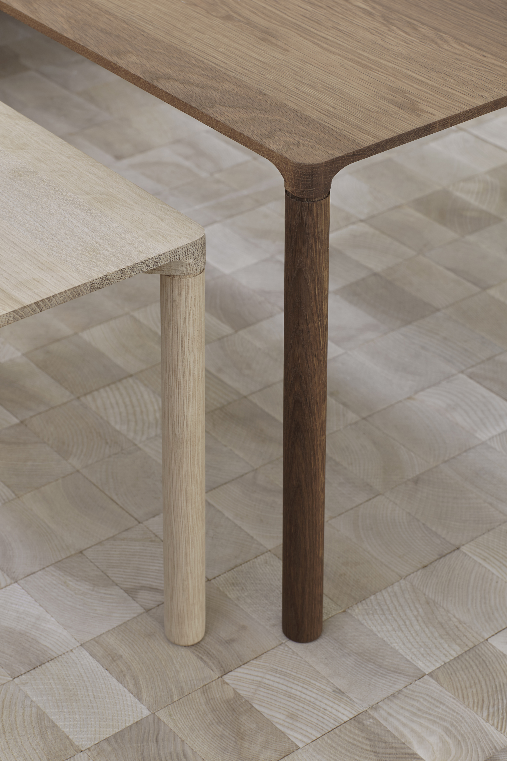 Piloti er en serie av sofabord i massiv eik. En subtil profilering av bordplatens kant gir et uttrykk, som minner om en enkelt strek i rommet, som svever fra fire spinkle ben. Bordene fås i to høyder og kan kombineres som settebord.