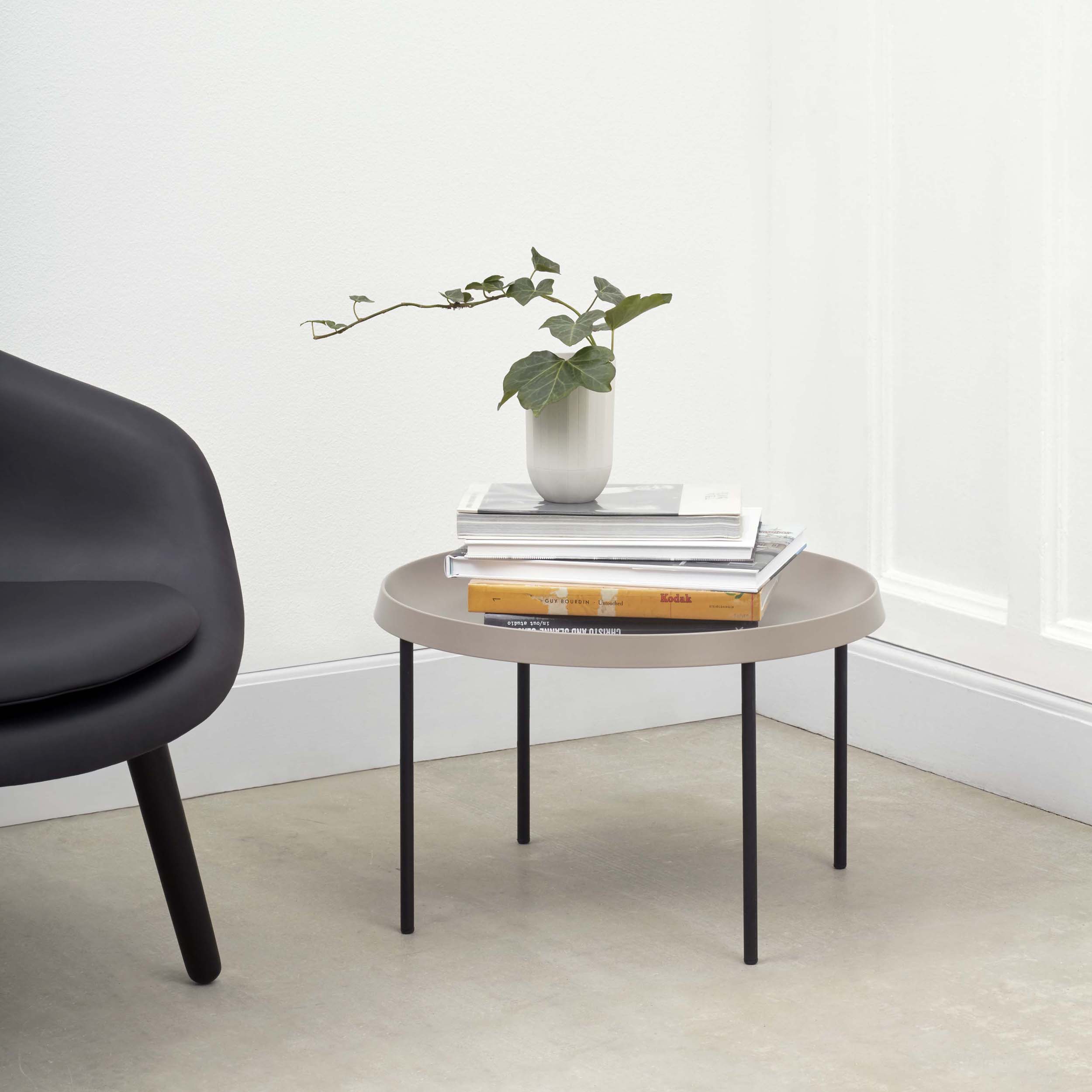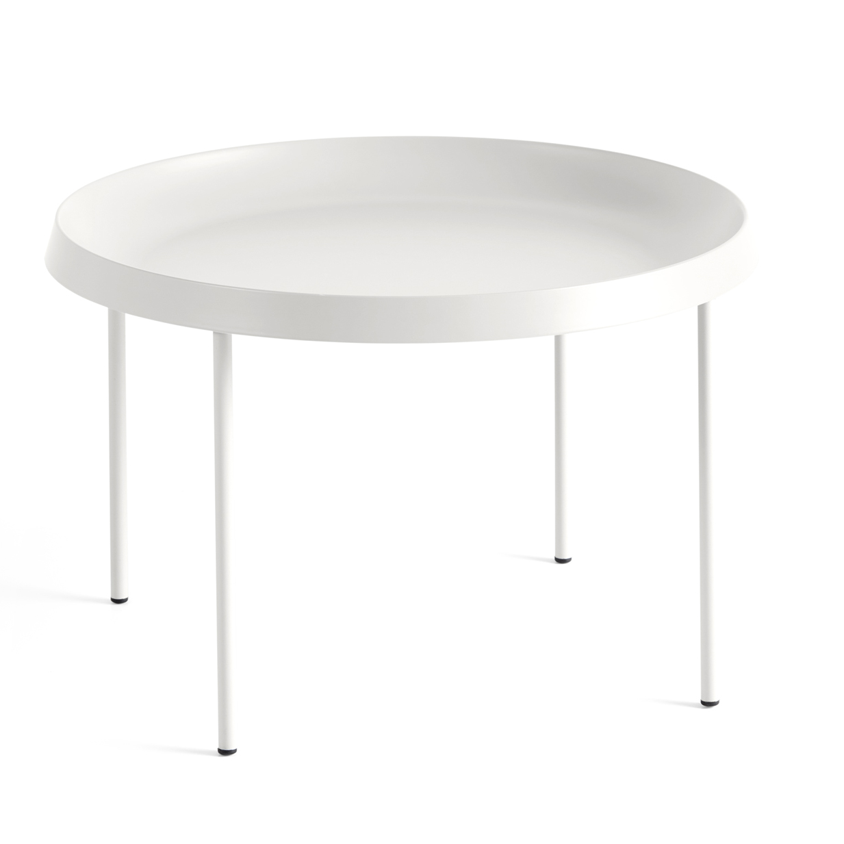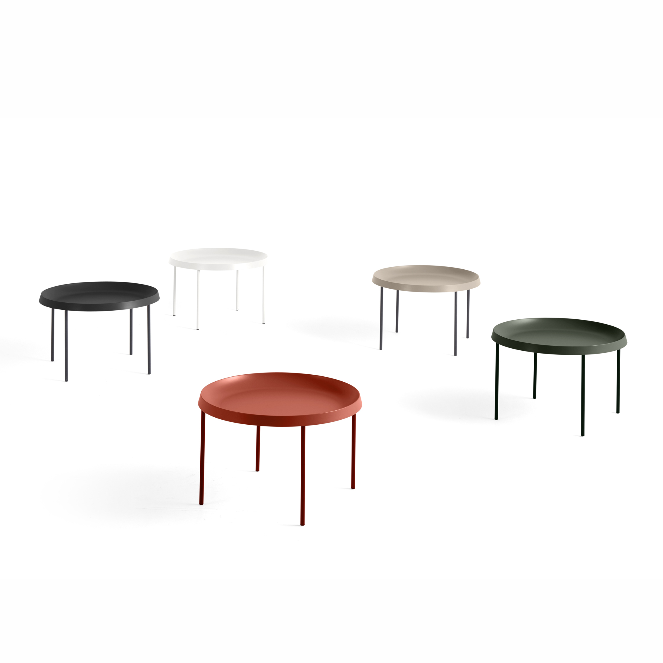 Tulou fra HAY er et lekkert runt brettbord av GamFratesi, perfekt både som sofabord og sidebord. Sargen på brettbordets skive er faset på både innside og utside, noe som gir et utrolig stilig uttrykk. Ved å gi Tulou fire rette og slanke tubeformede ben tar sofabordet ikke mye plass hverken fysisk eller visuelt.
