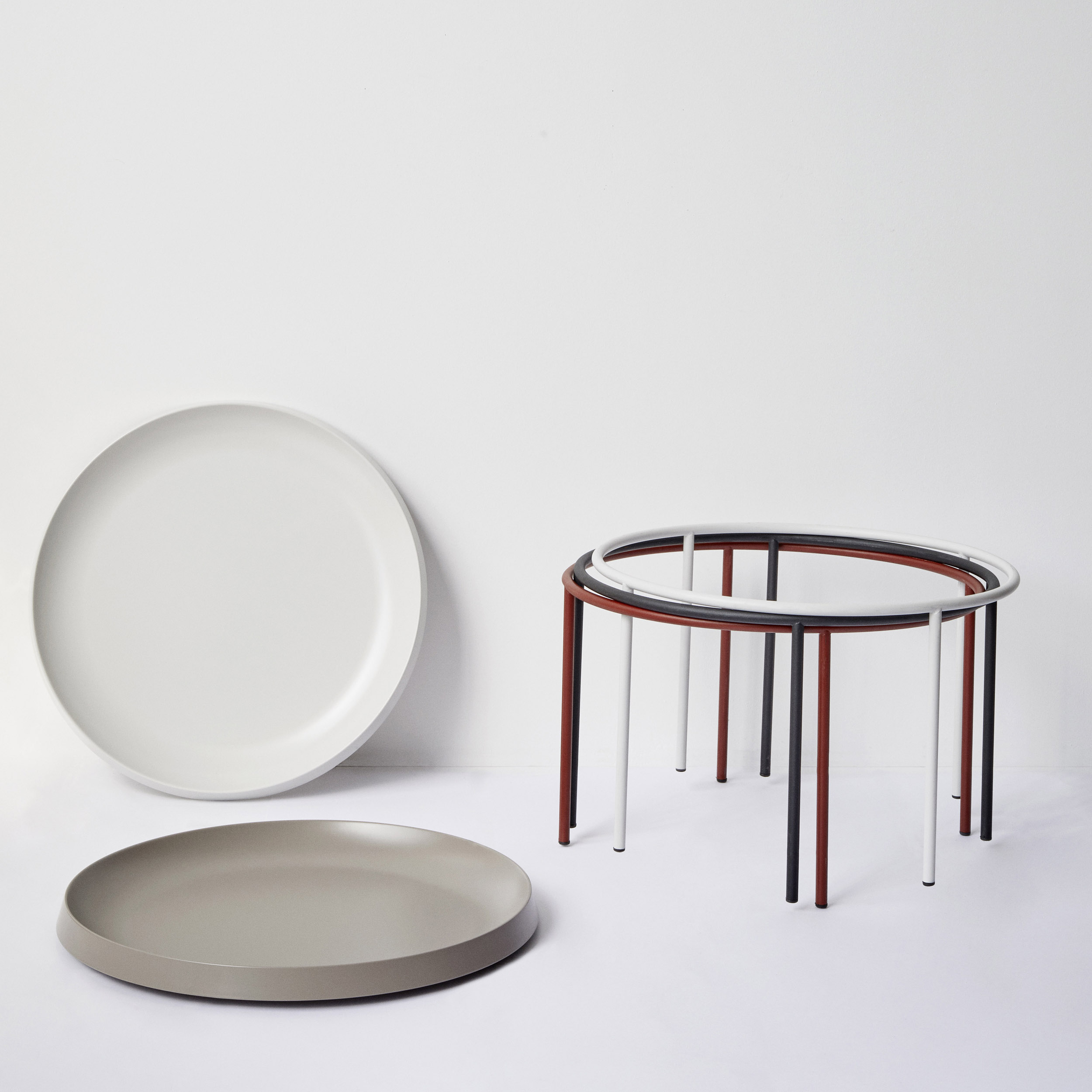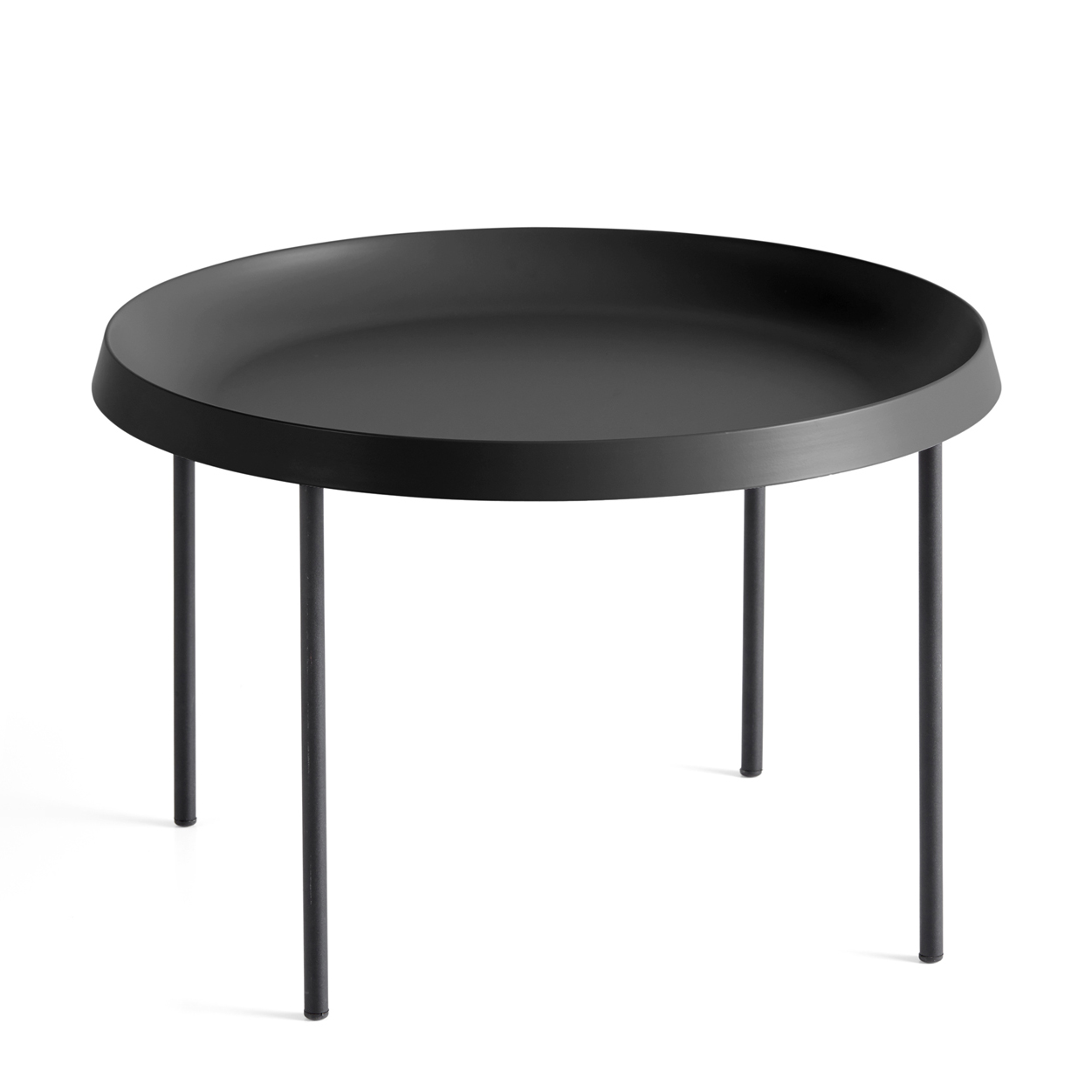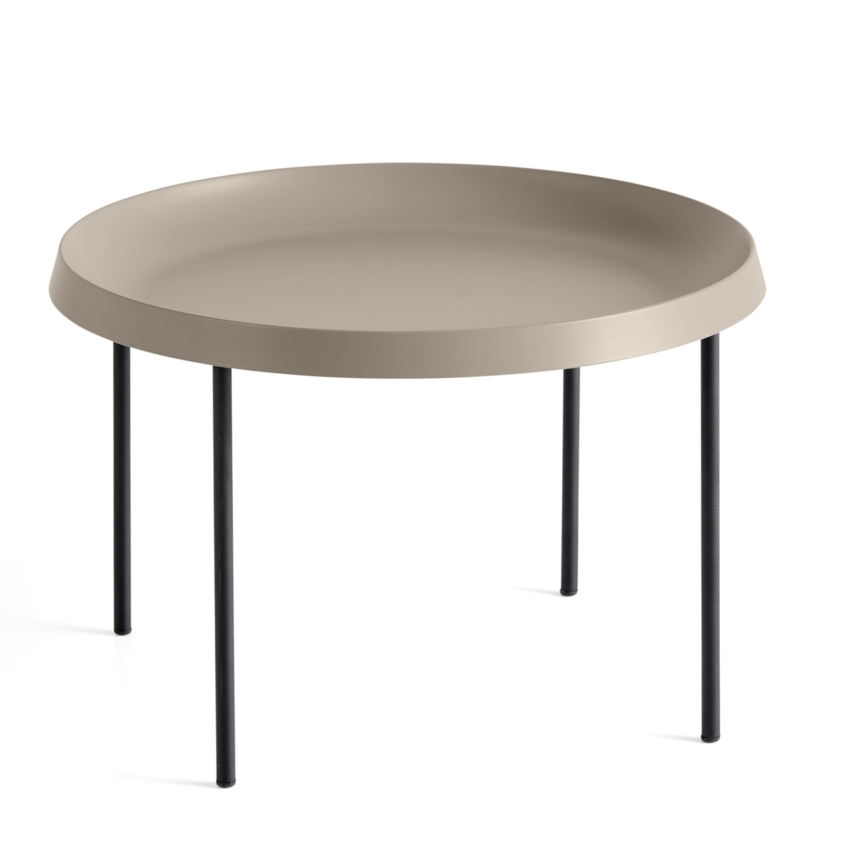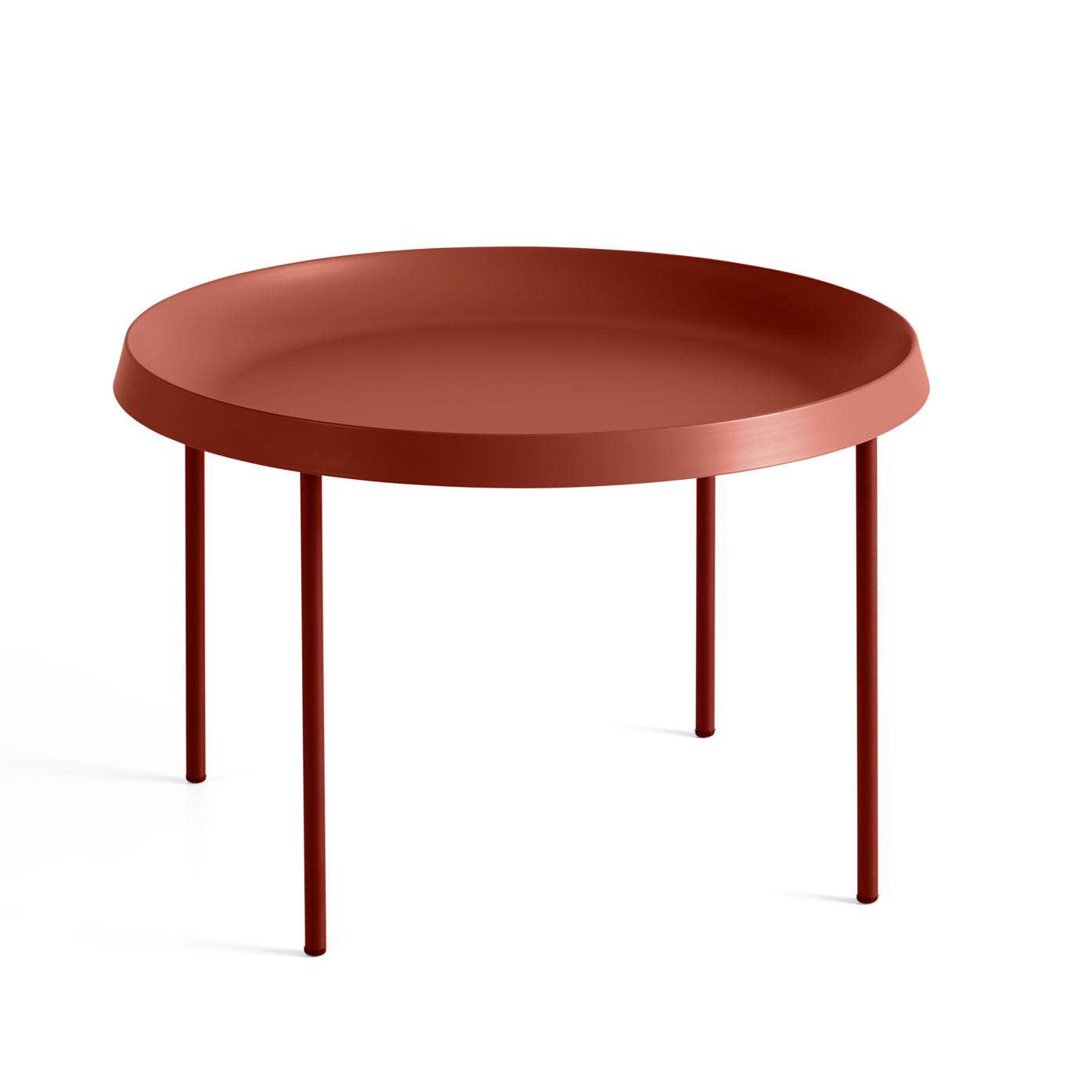 Tulou fra HAY er et lekkert runt brettbord av GamFratesi, perfekt både som sofabord og sidebord. Sargen på brettbordets skive er faset på både innside og utside, noe som gir et utrolig stilig uttrykk. Ved å gi Tulou fire rette og slanke tubeformede ben tar sofabordet ikke mye plass hverken fysisk eller visuelt.